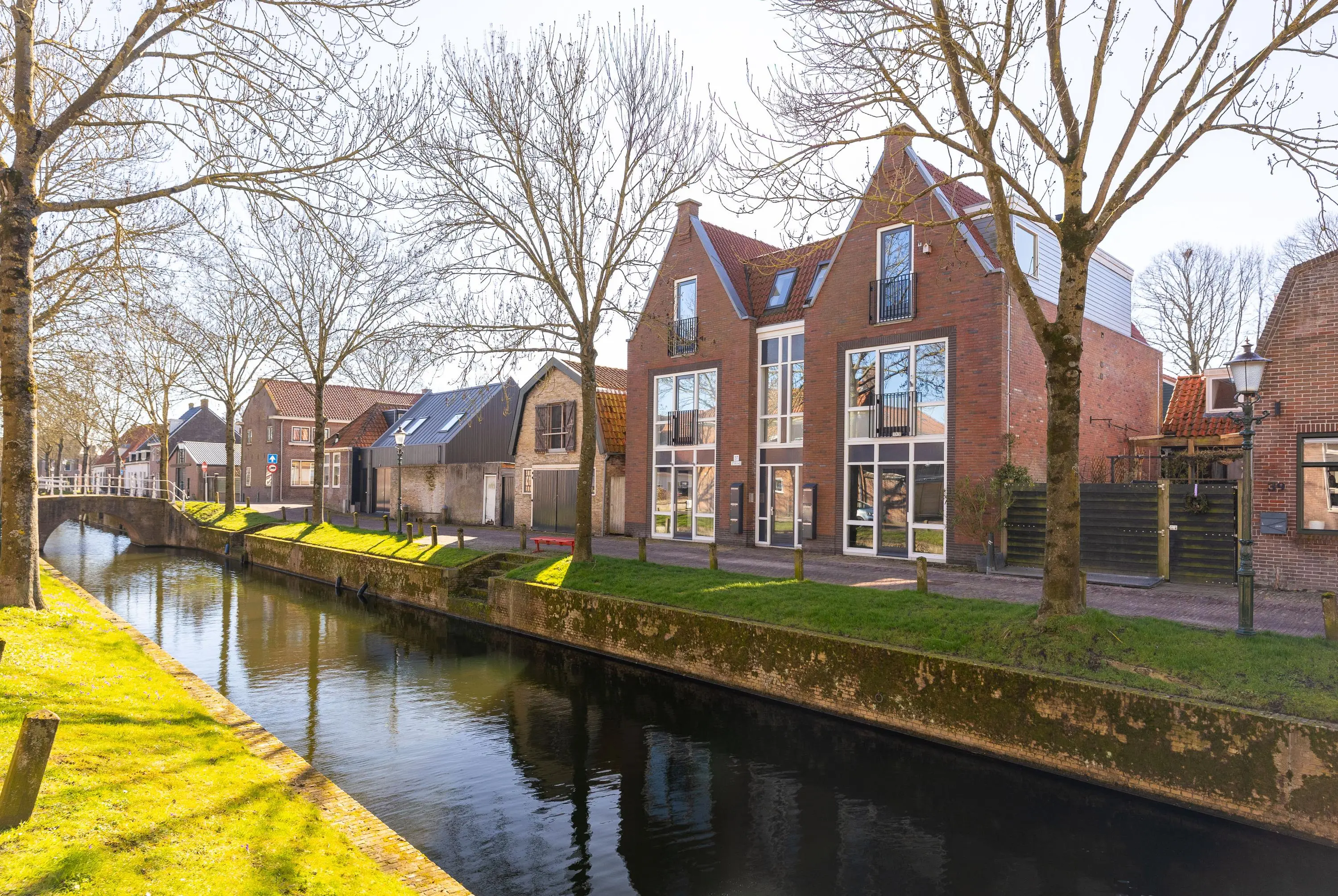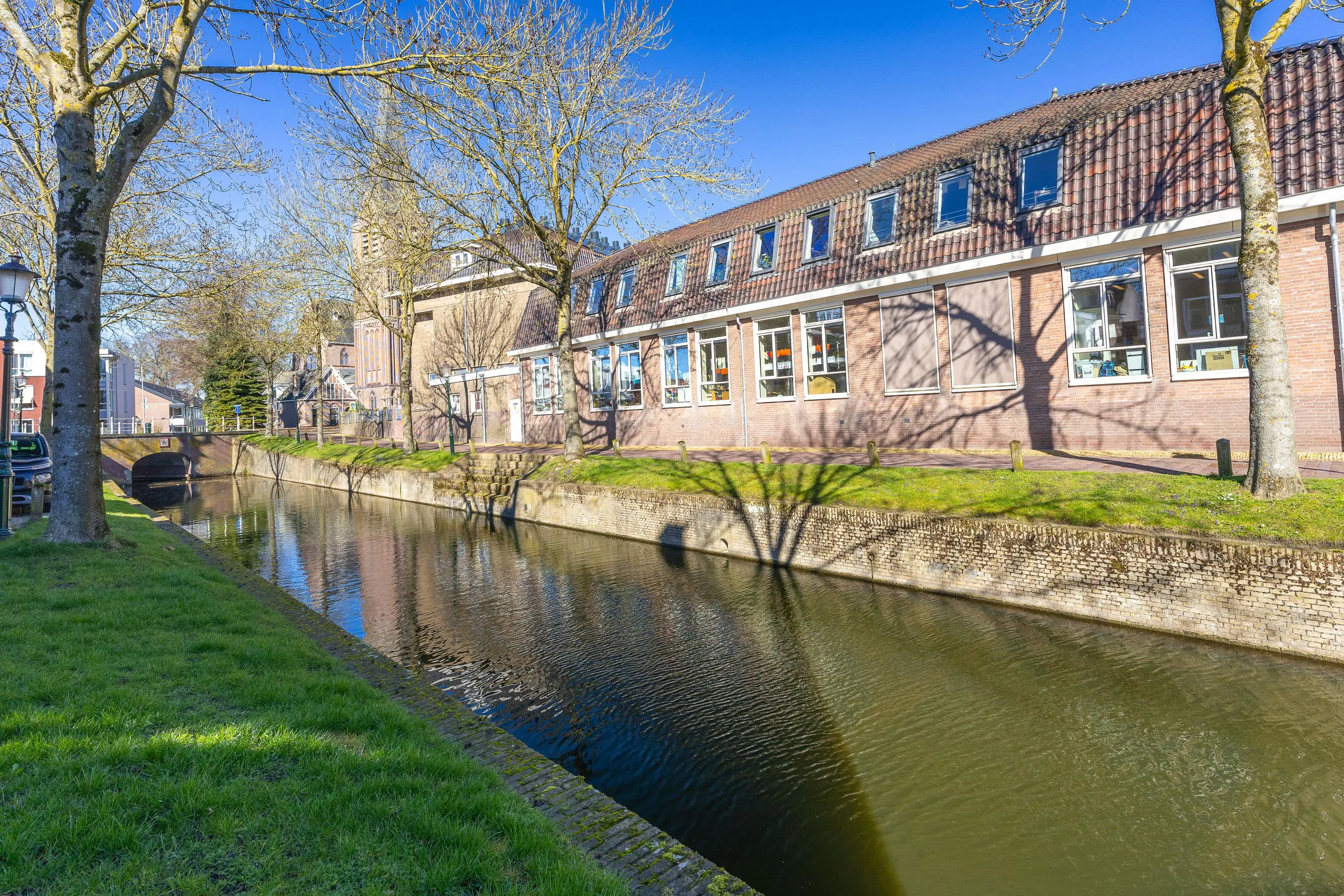Vanuit de hal loop je door naar de sfeervolle woonkamer met open keuken. De woonkamer is voorzien van een gezellige sfeerhaard en biedt middels openslaande deuren een fraai uitzicht op de gracht. Hier geniet je op zonnige dagen van het buitenleven – en beschik je over een bootje, dan kun je deze zelfs voor de deur aanmeren.