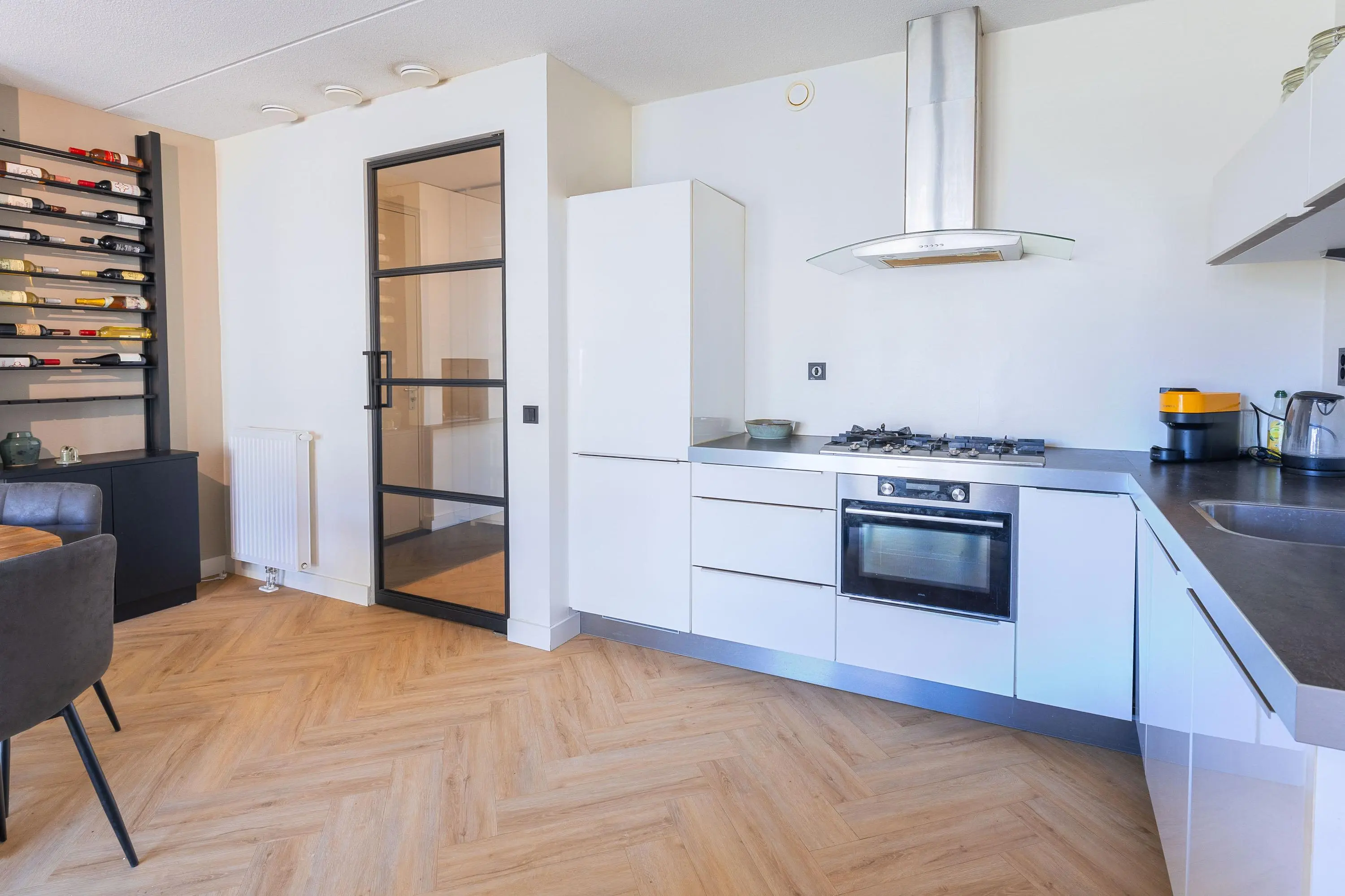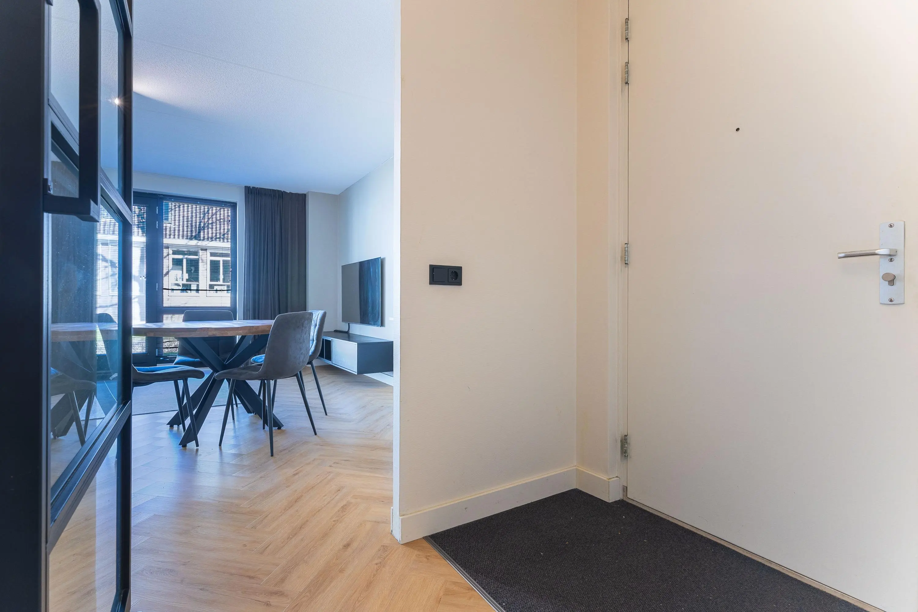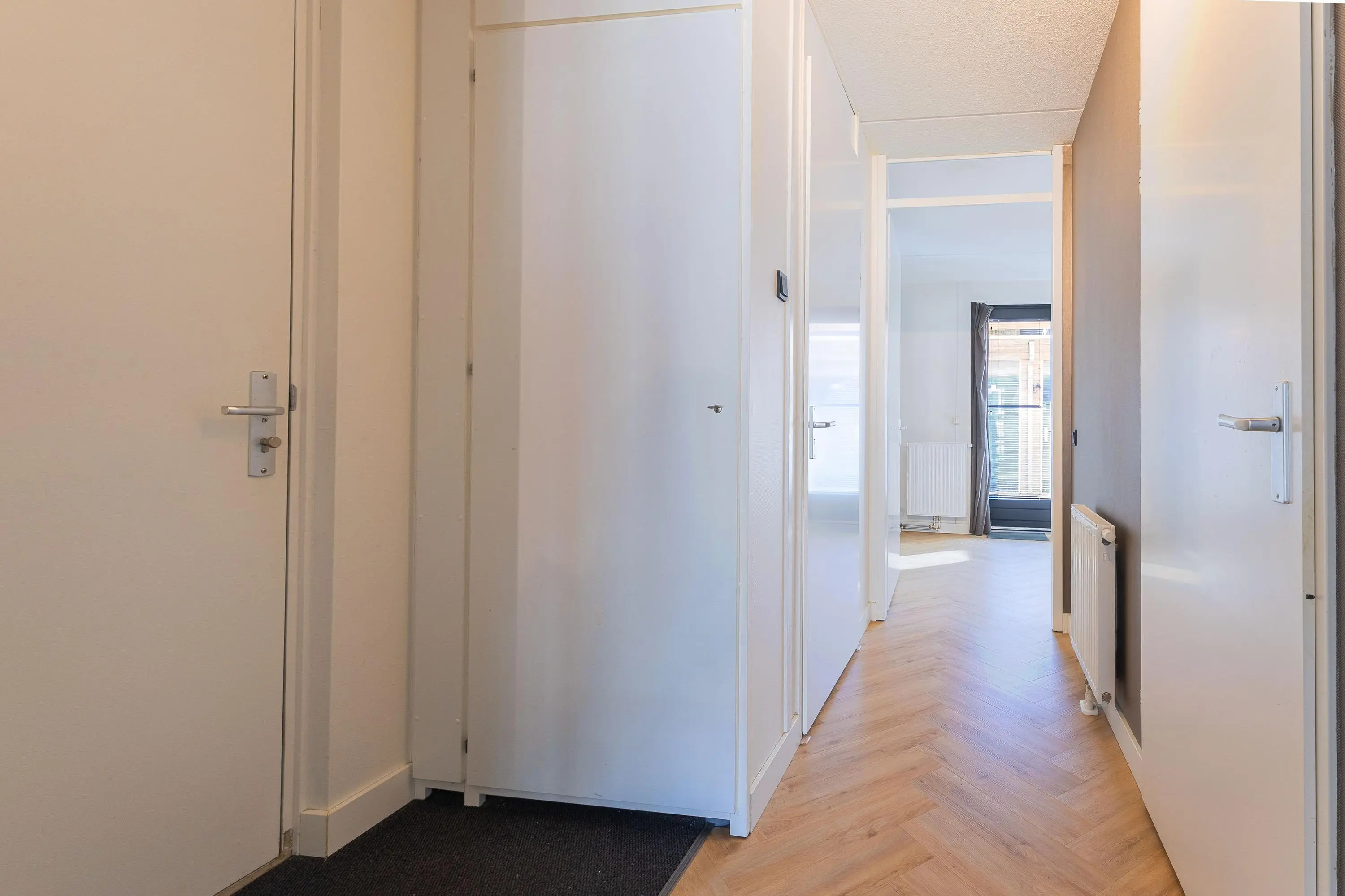 Via de centrale entree bereik je het appartement. Bij binnenkomst valt direct de hoogwaardige afwerking op, met als absolute blikvanger de stijlvolle pvc visgraatvloer die door de gehele woning is doorgelegd.