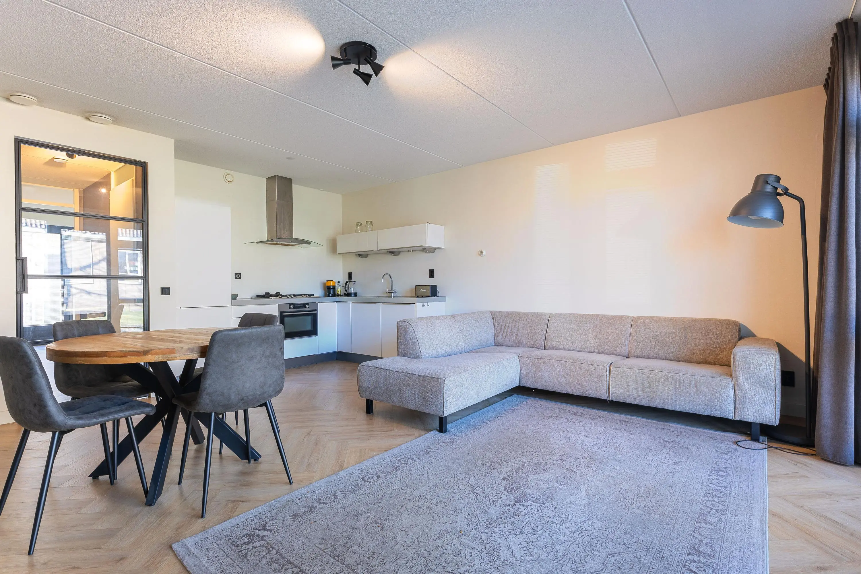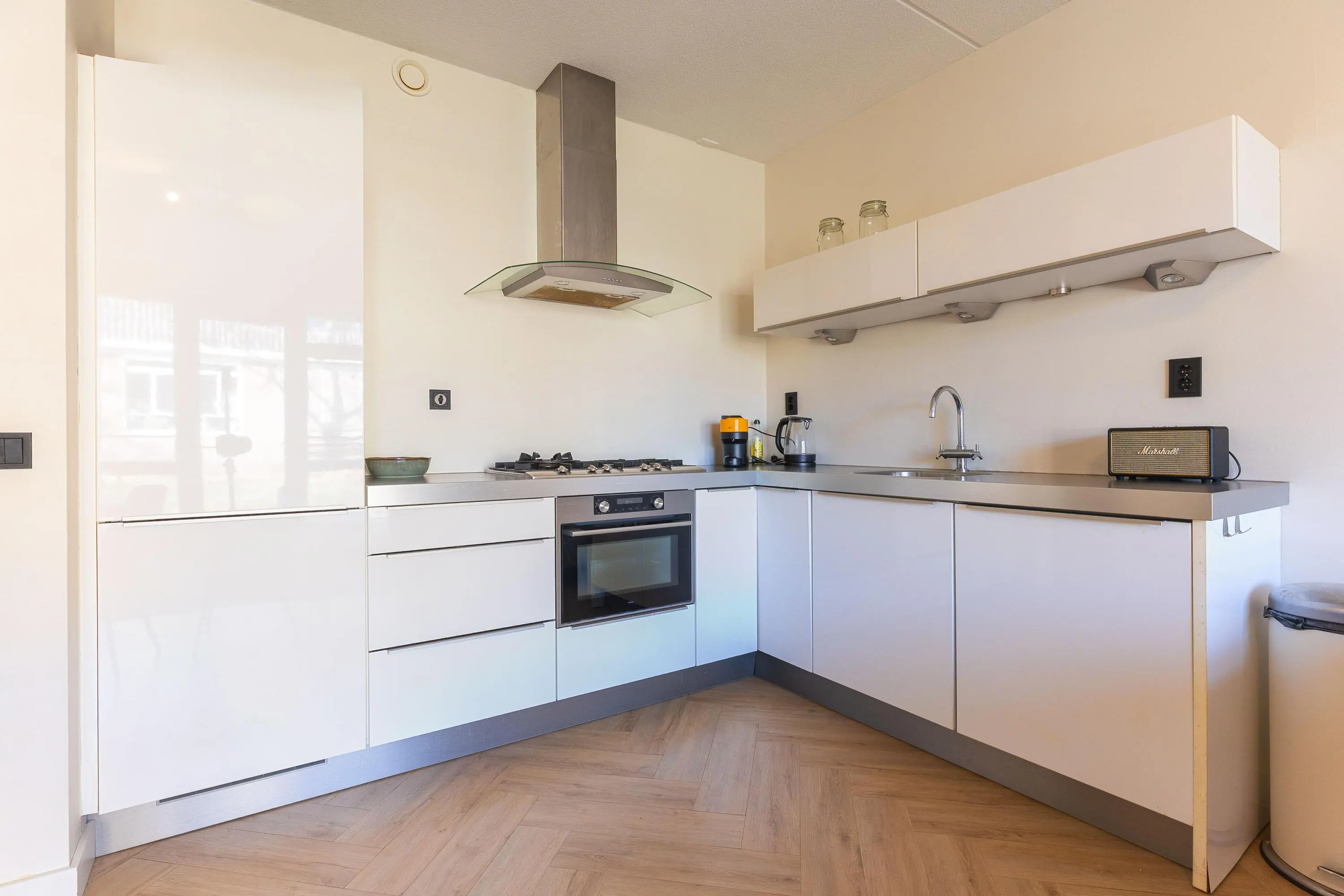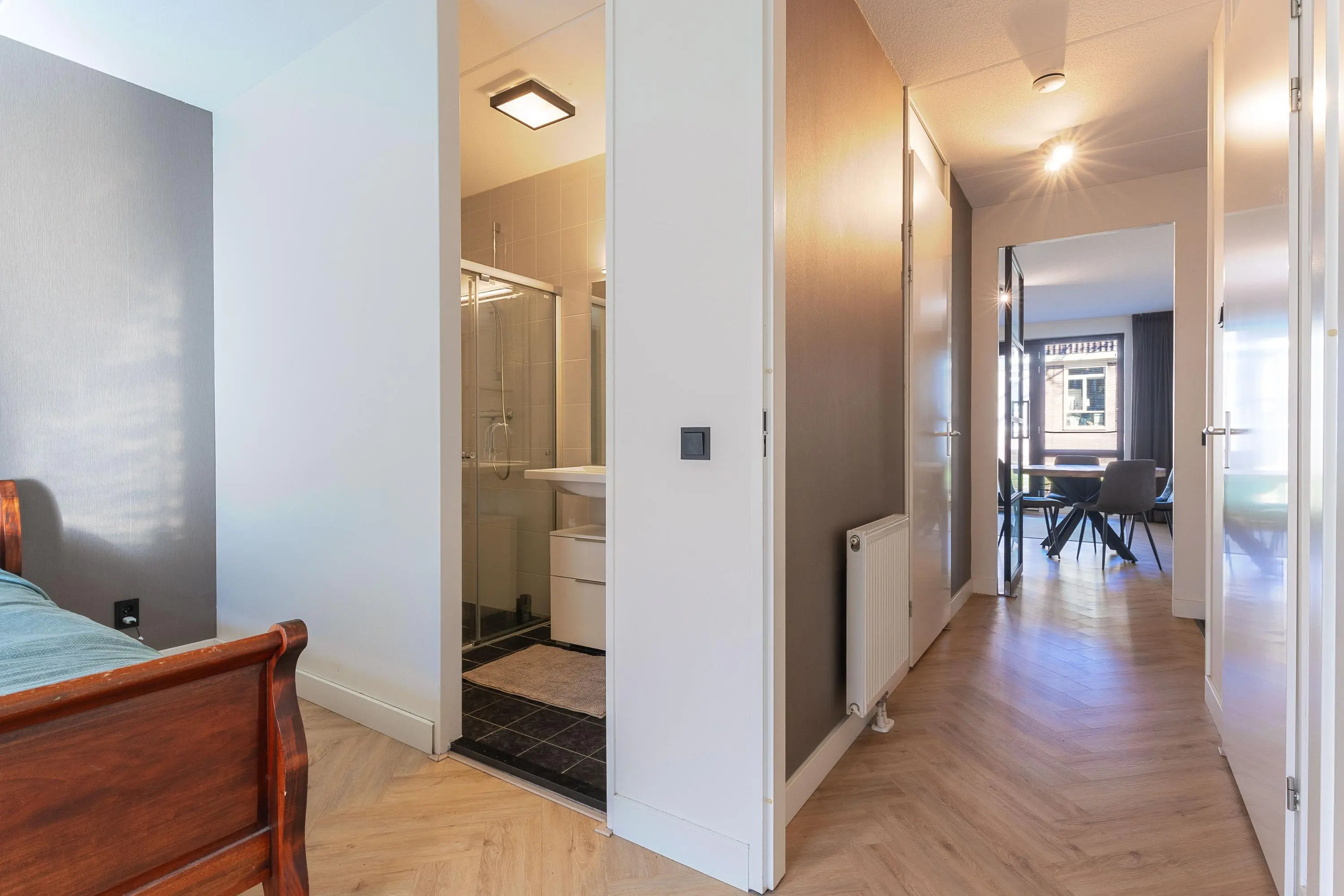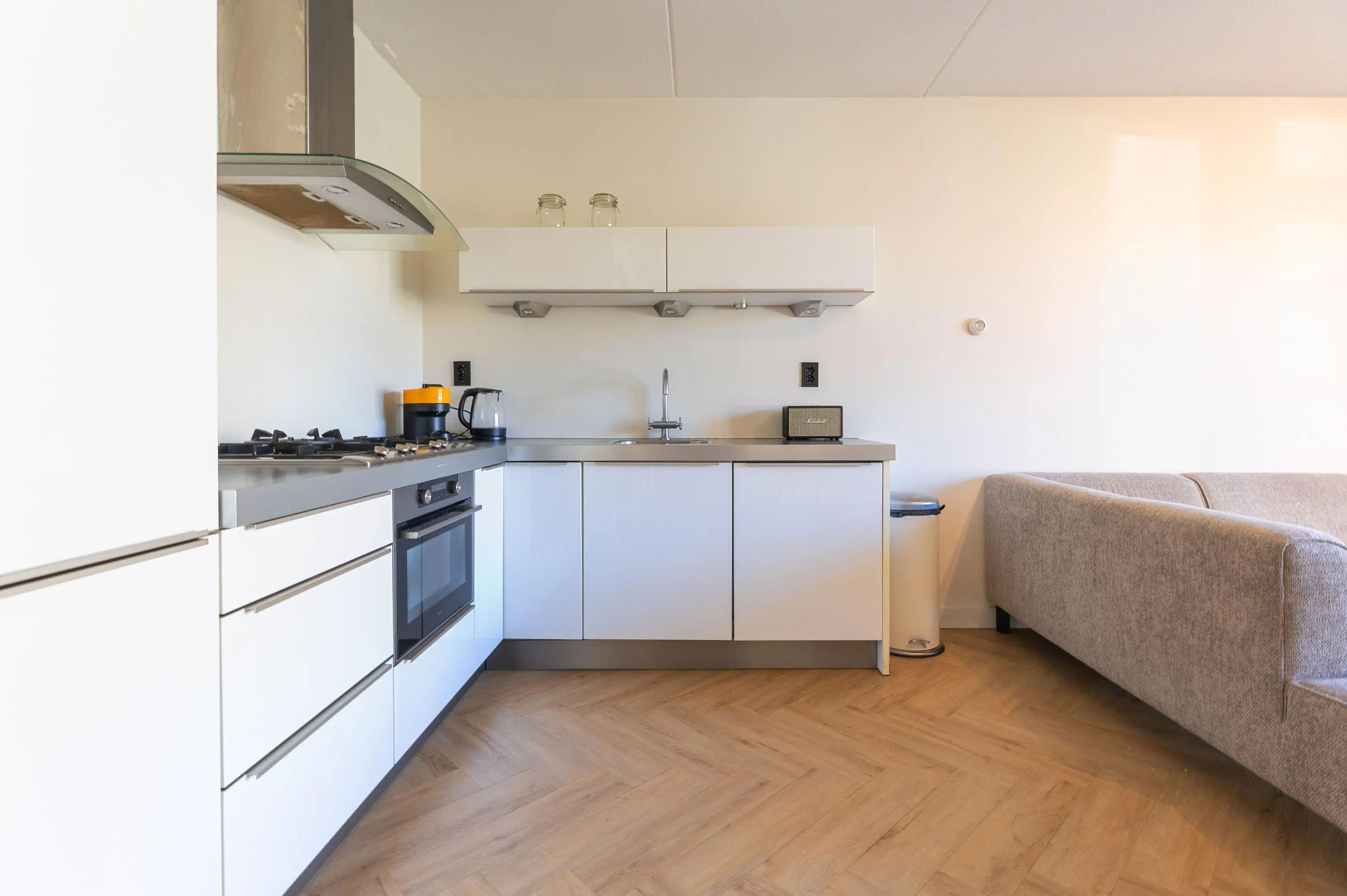 Via de centrale entree bereik je het appartement. Bij binnenkomst valt direct de hoogwaardige afwerking op, met als absolute blikvanger de stijlvolle pvc visgraatvloer die door de gehele woning is doorgelegd.