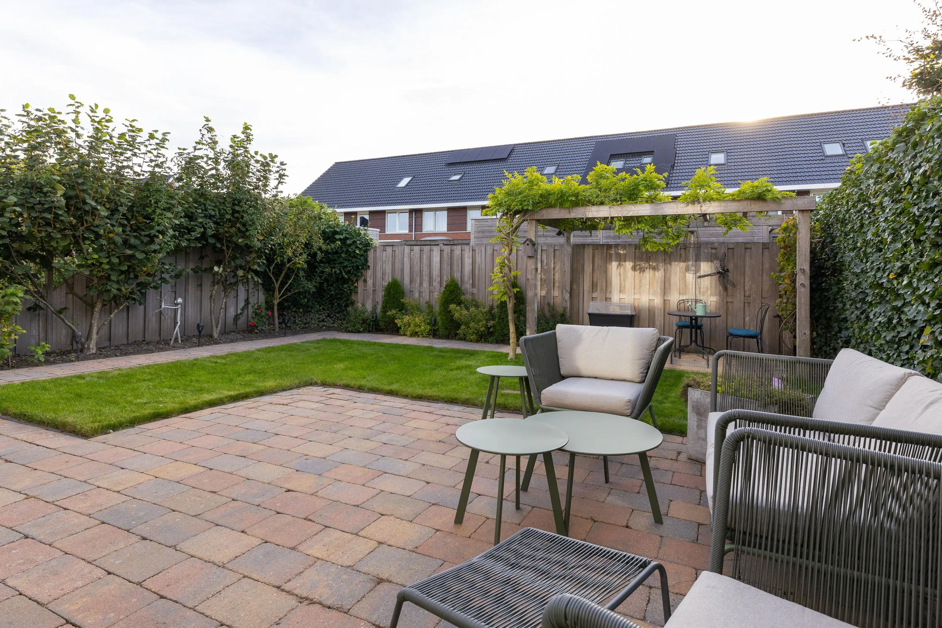 De achtertuin, gelegen op het zuidwesten, is een heerlijke plek om te ontspannen en te genieten van de zon. Via zowel de woonkamer als de poort naast de garage is de tuin eenvoudig bereikbaar. Ook de voortuin en oprit zijn netjes aangelegd, waardoor het geheel direct een verzorgde indruk maakt.