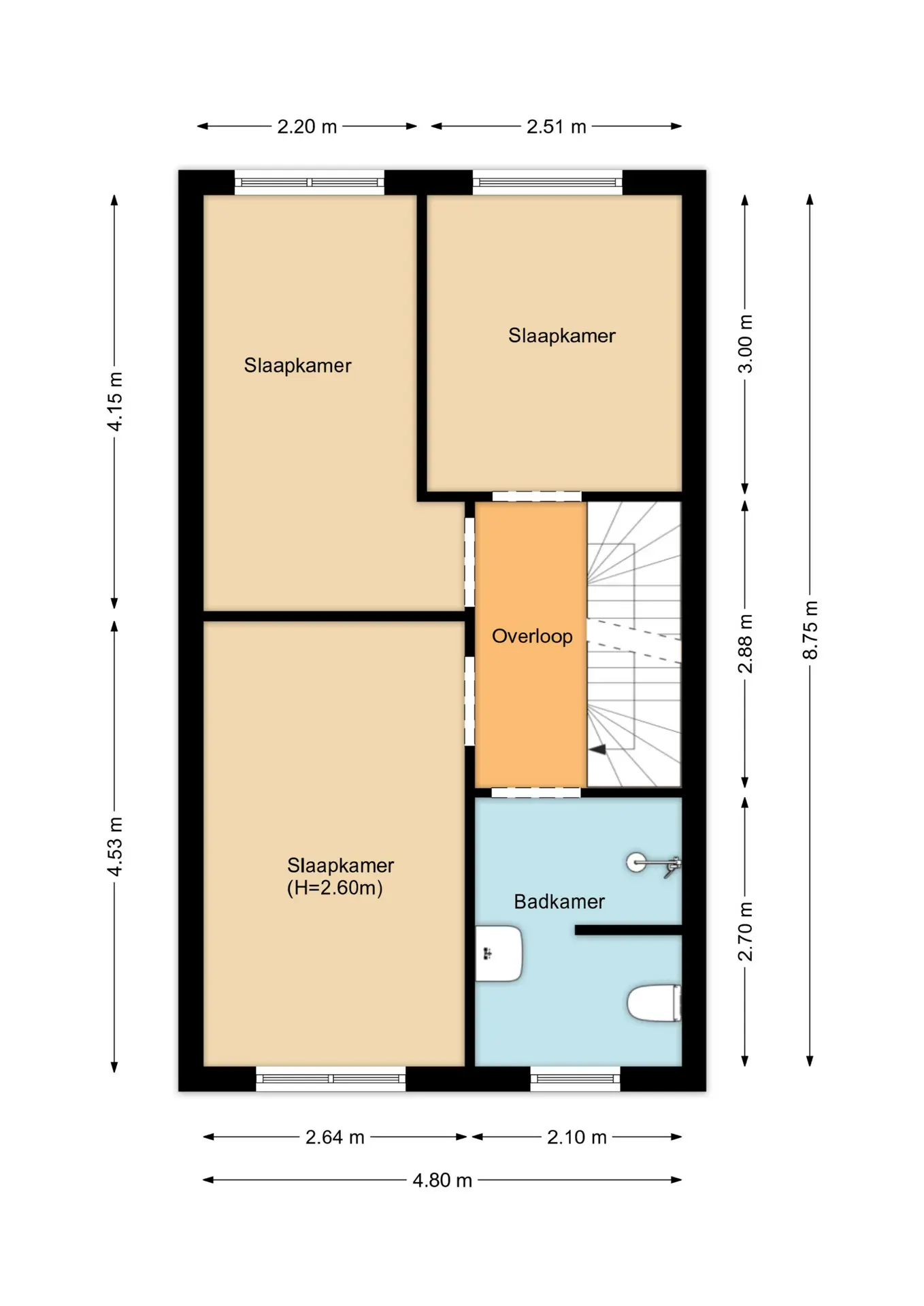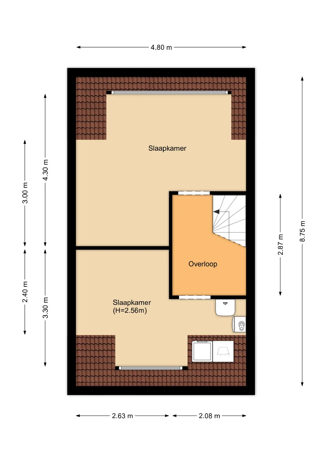 Twee dakkapellen waardoor de tweede verdieping extra ruim is