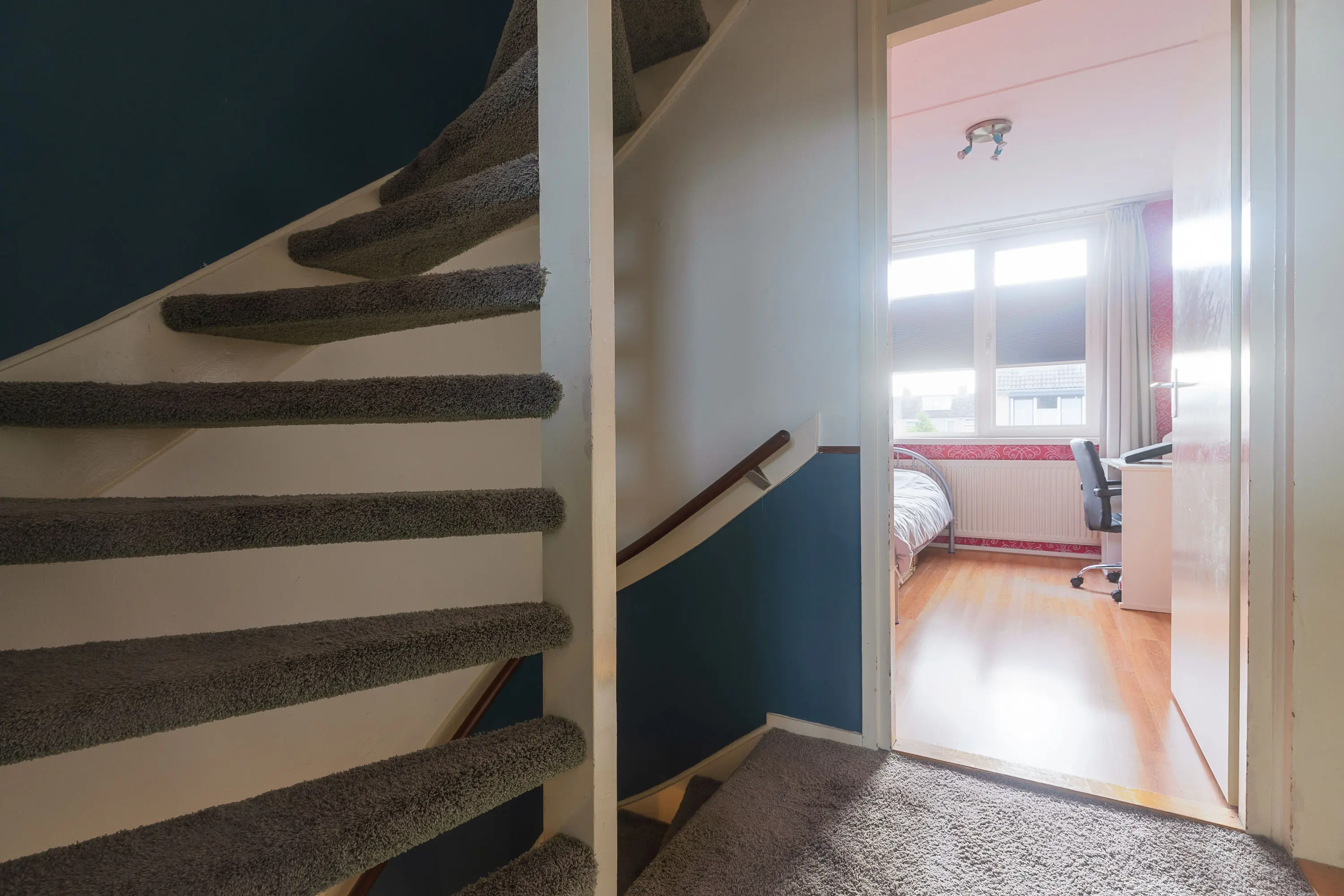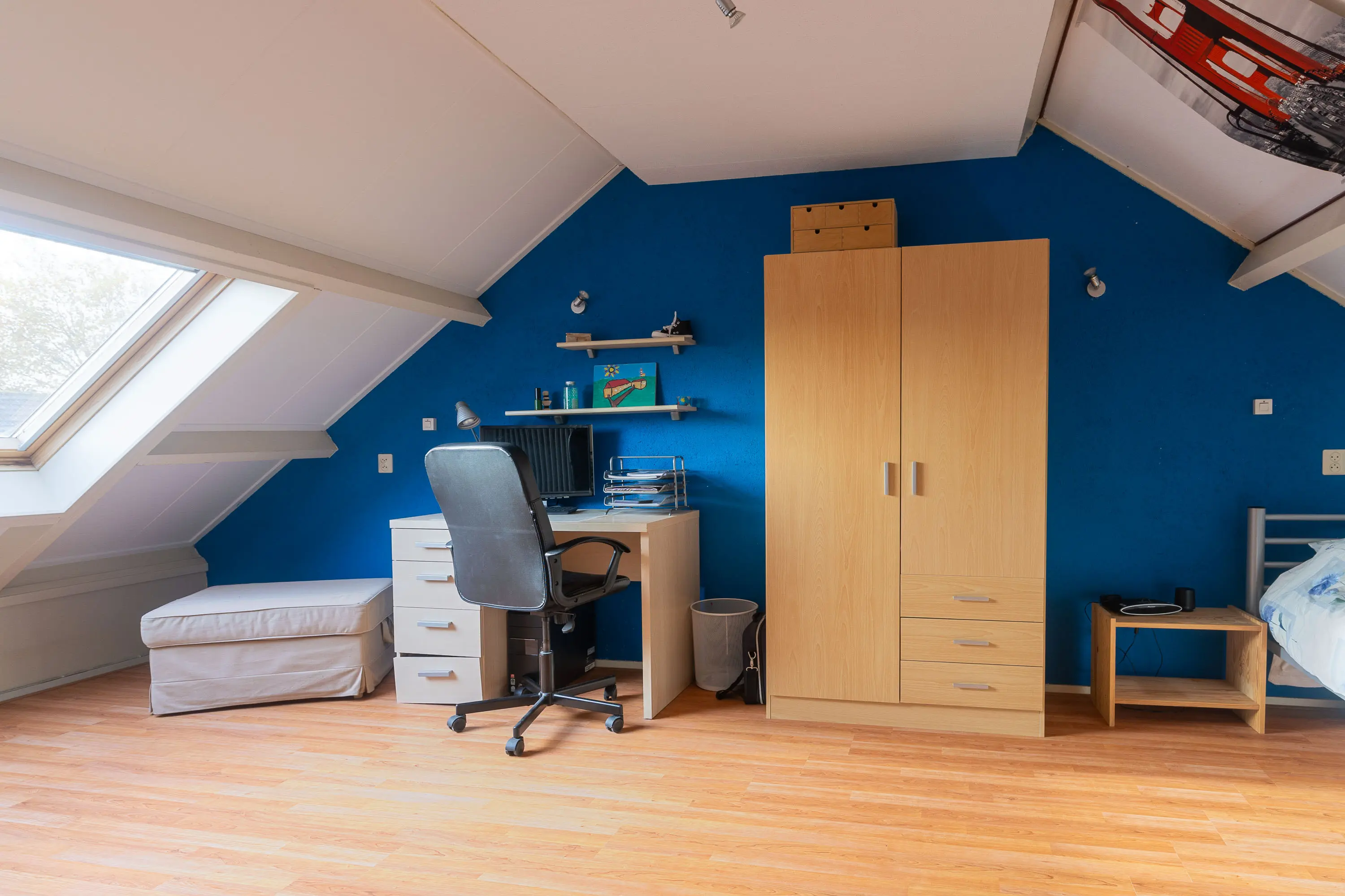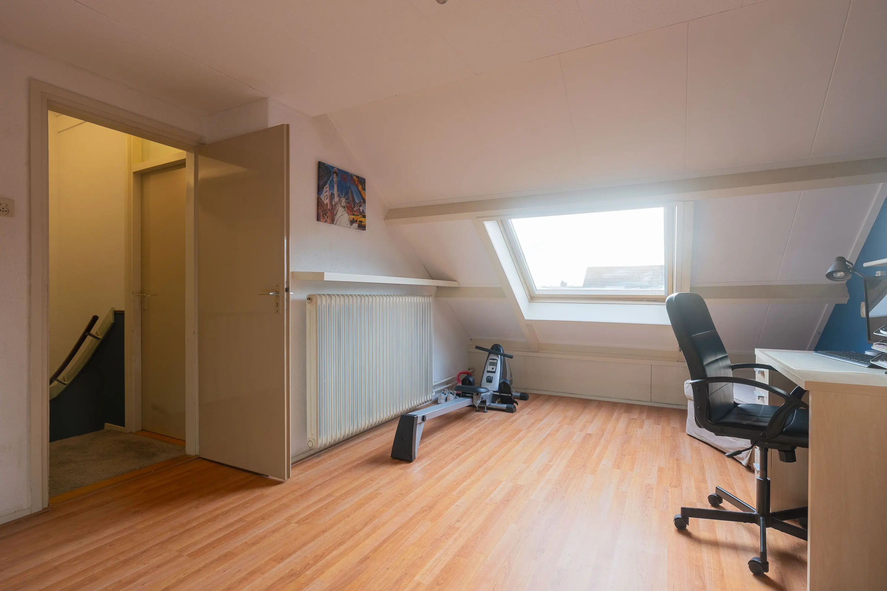 De tweede verdieping biedt ruimte aan een vierde slaapkamer met dakraam en extra bergruimte, ideaal als werk- of hobbykamer. Op de voorzolder is ruimte voor de wasmachine en droger.