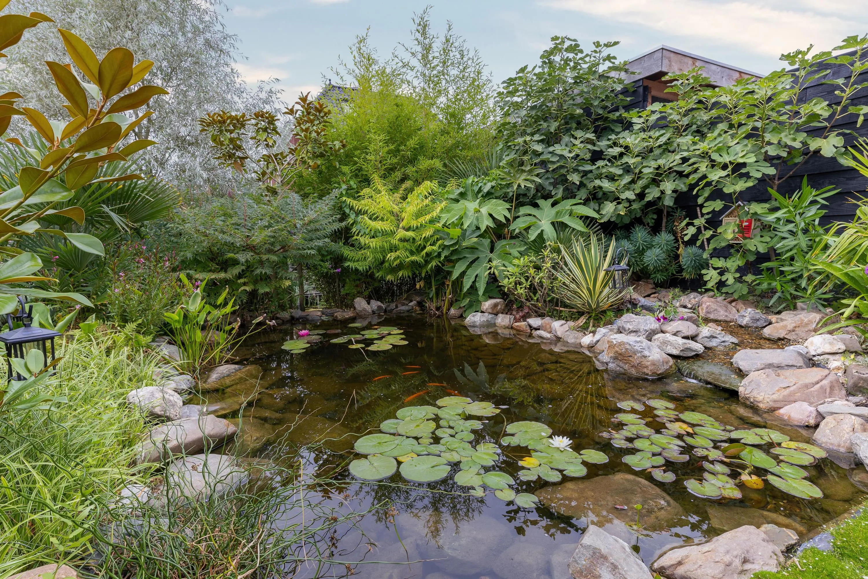 • Fraai aangelegde tuin met vijver, bereikbaar via openslaande tuindeuren of zijkant van de woning
