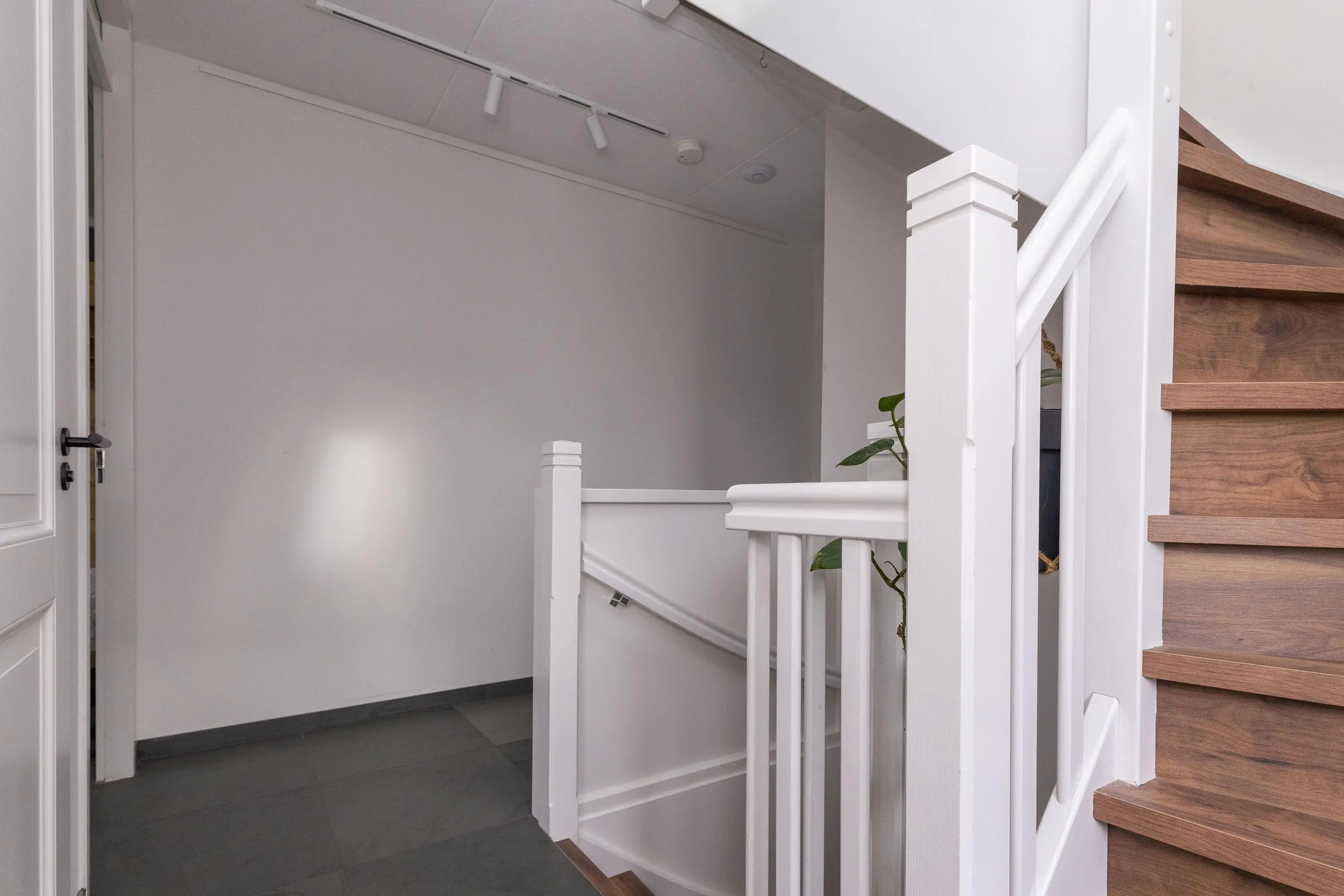 De eerste verdieping beschikt over drie fijne slaapkamers, elk met grote raampartijen die zorgen voor een prachtige lichtinval en een luchtige sfeer. De ruime lichte overloop verbindt de kamers op een prettige manier.