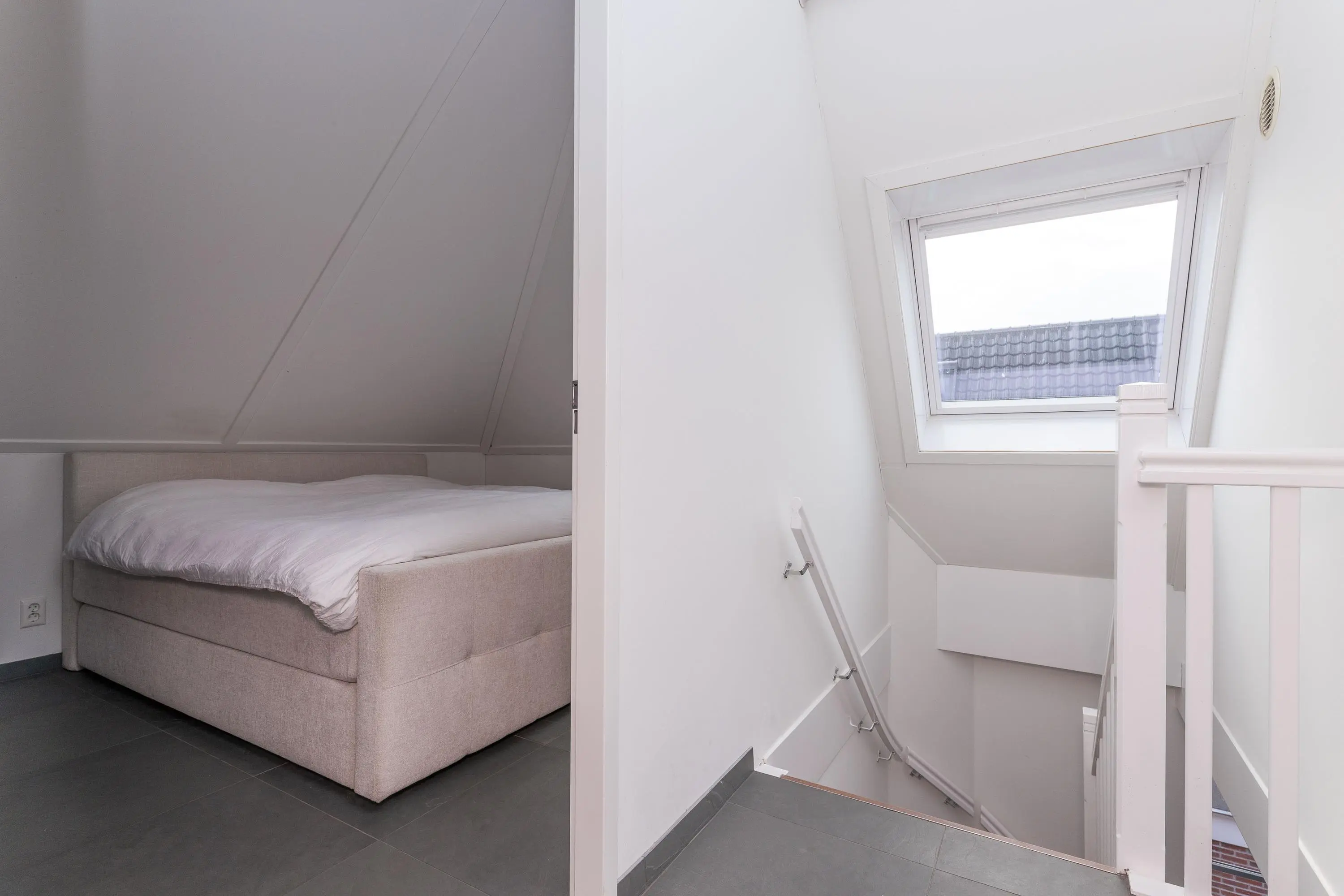 Op de tweede verdieping vind je een royale vierde slaapkamer, de gehele verdieping is voorzien van maar liefst vier Velux dakramen die zorgen voor een mooie natuurlijke lichtinval. Deze verdieping biedt daarmee volop privacy en comfort.