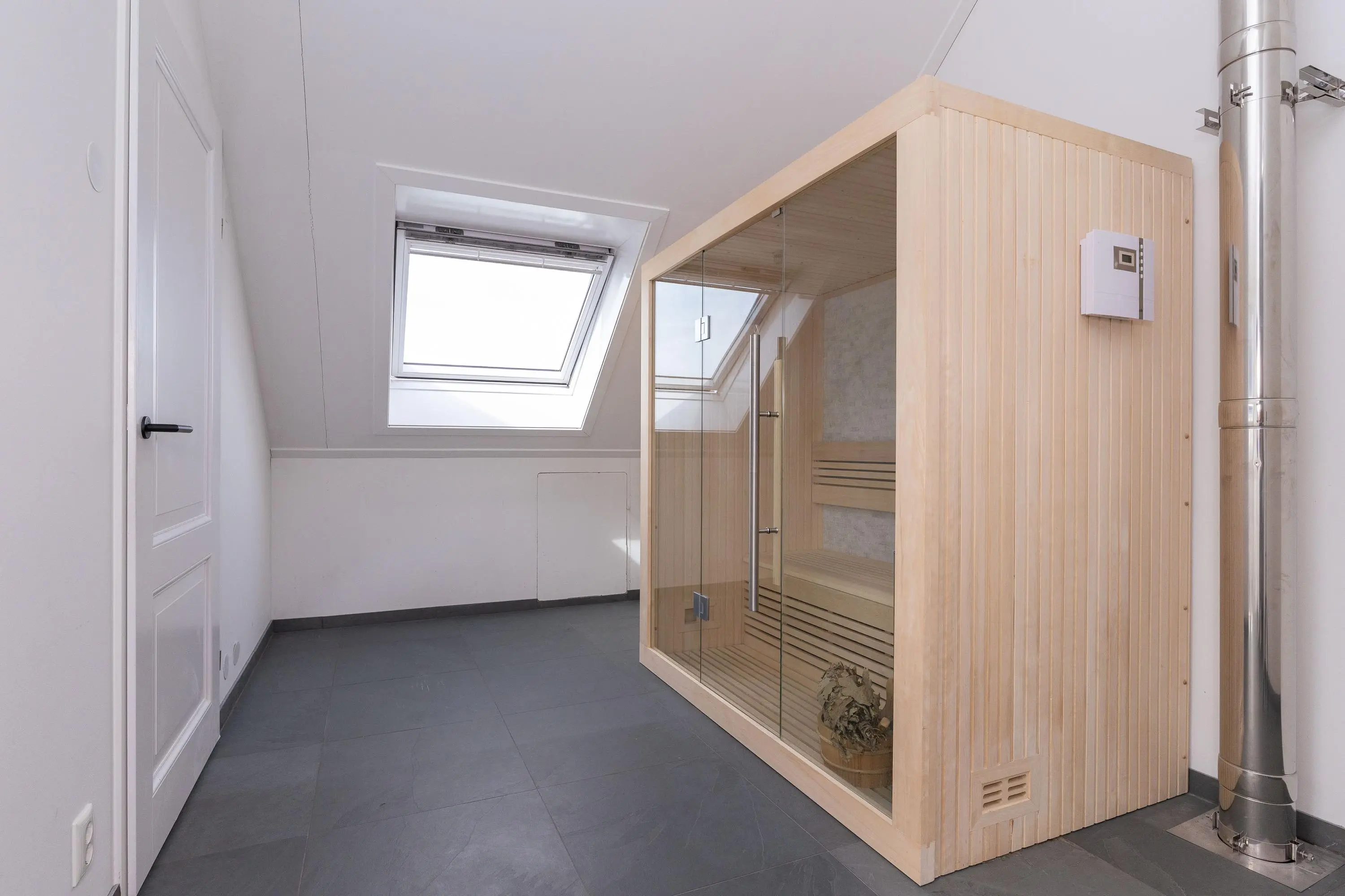 Als kers op de taart beschikt deze verdieping over een heerlijk luxe sauna, waar je na een drukke dag heerlijk kunt ontspannen en tot rust komen – jouw eigen wellnessplek aan huis.