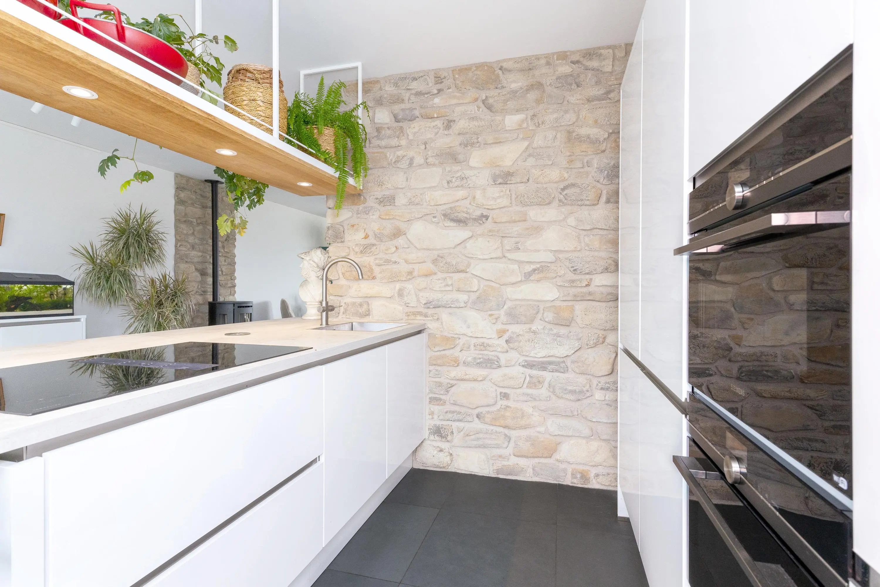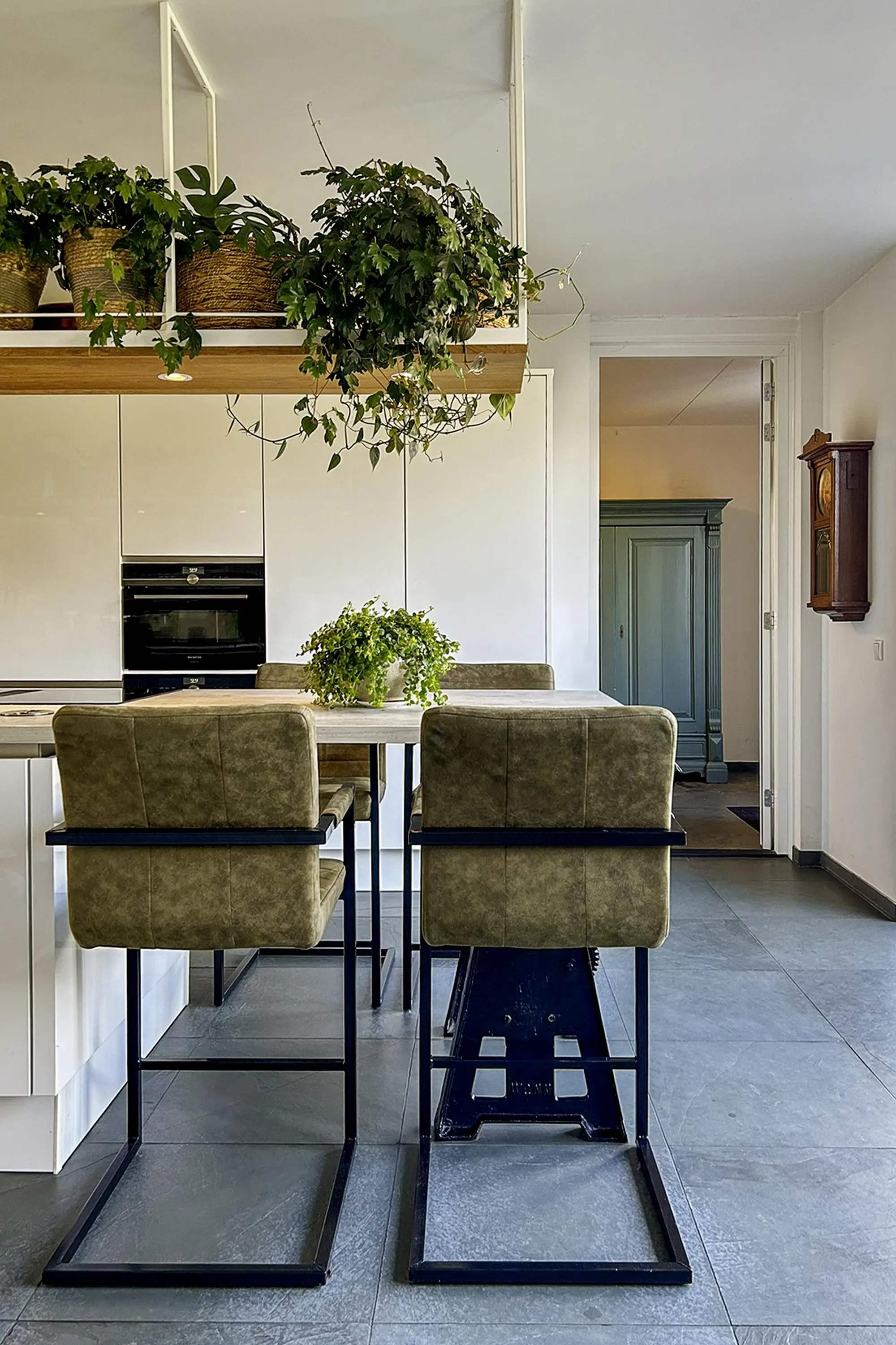 De open keuken vormt het kloppend hart van het huis. Met een groot kookeiland, hoogwaardige Siemens-apparatuur en een stijlvolle afwerking met vaste kastenwand is dit dé plek om samen te zijn. Via de openslaande deuren loop je direct de fraai aangelegde tuin in – binnen en buiten vloeien hier natuurlijk in elkaar over.
