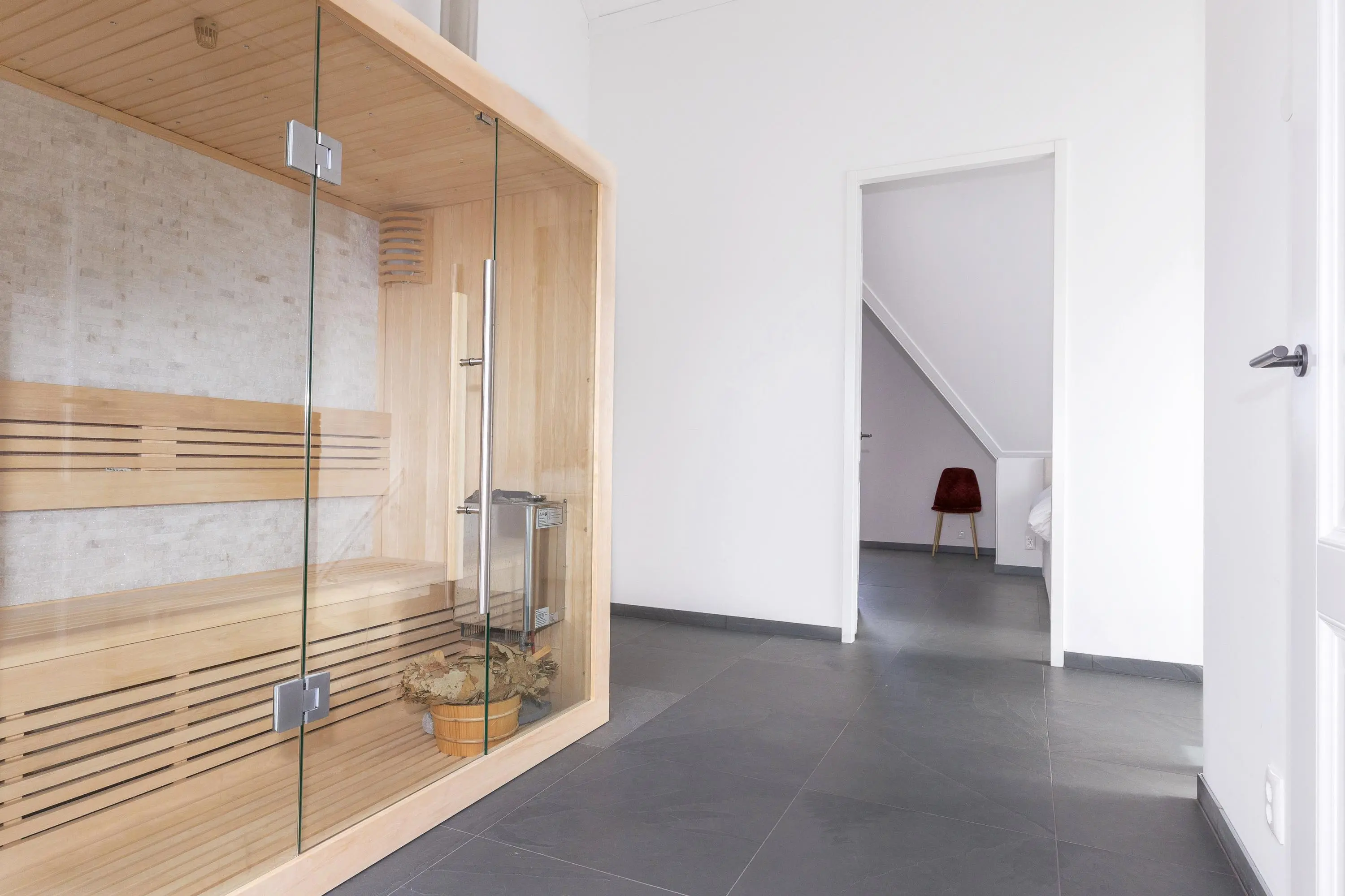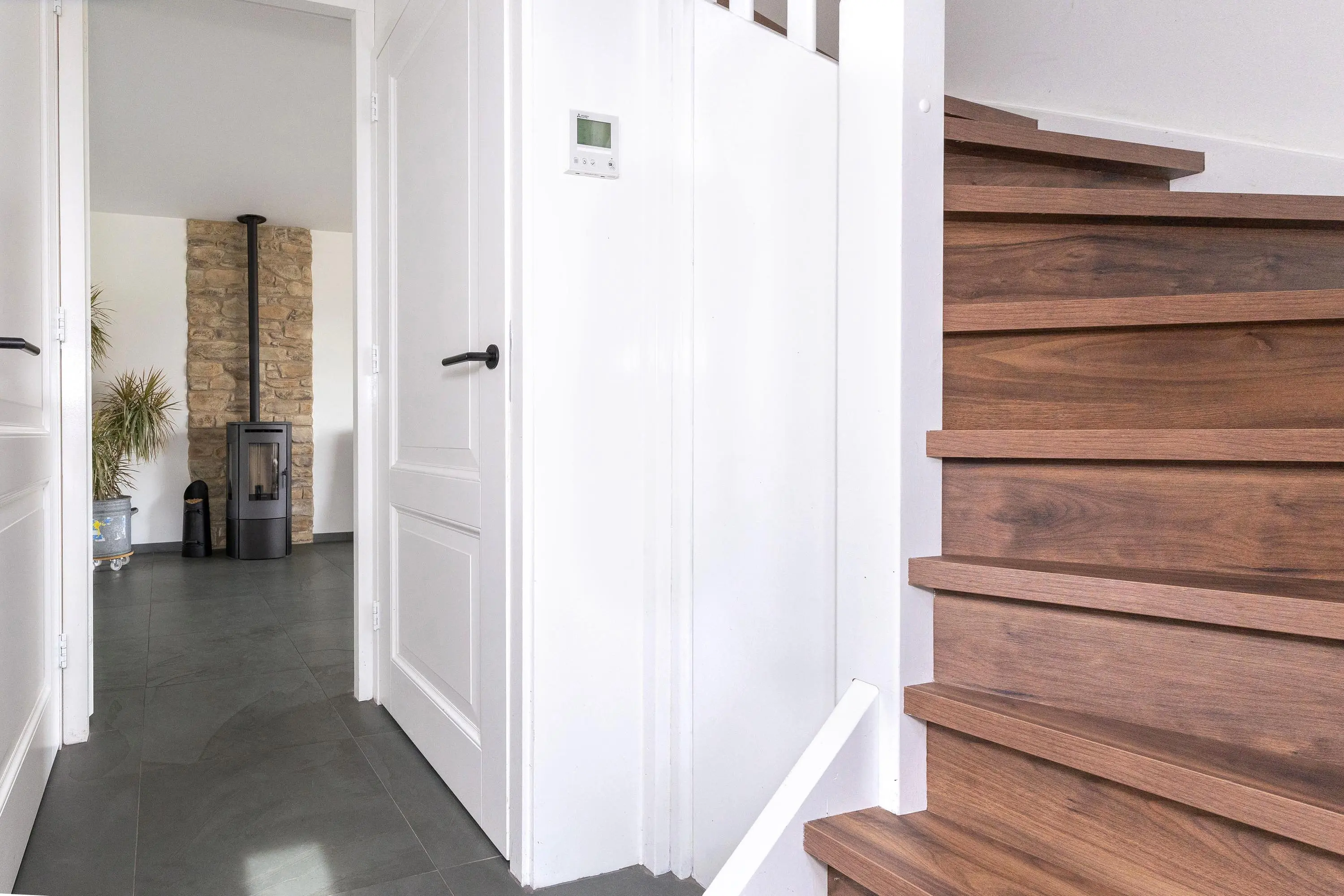 De ruime woonkamer valt direct op door de grote raampartijen en de prettige lichtinval. Vloerverwarming en een sfeervolle pelletkachel zorgen voor comfort in elk seizoen. De strakke afwerking en het doordachte lichtplan maken dit een plek waar je moeiteloos schakelt tussen ontspannen en gezellig samen zijn.