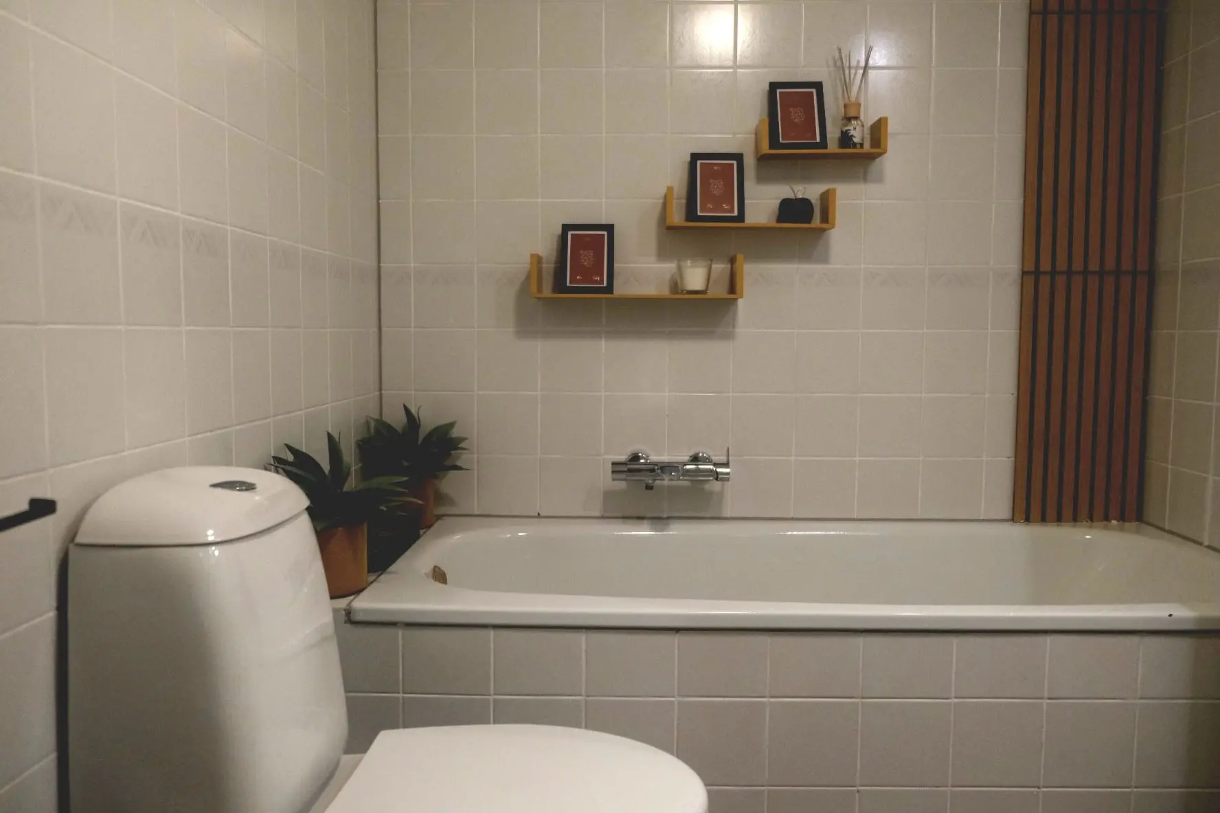 De badkamer is netjes onderhouden en voorzien van een douchehoek, ligbad, tweede toilet en wastafelmeubel.