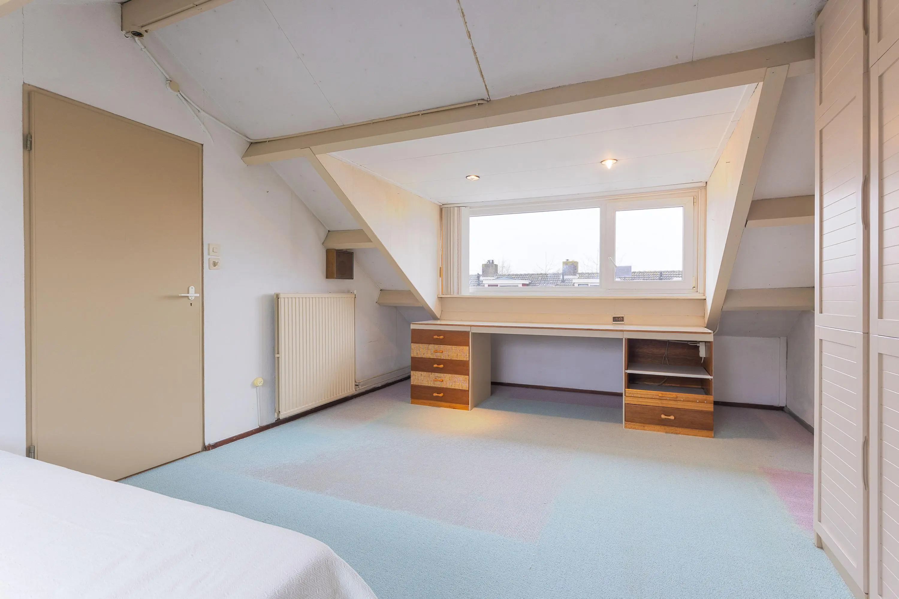 De zolderverdieping is heerlijk ruim dankzij het plaatsen van twee dakkapellen. Hierdoor is er aanzienlijk extra woonruimte en licht ontstaan, wat deze verdieping uitermate geschikt maakt als volwaardige slaapkamer, werkruimte of combinatie daarvan.