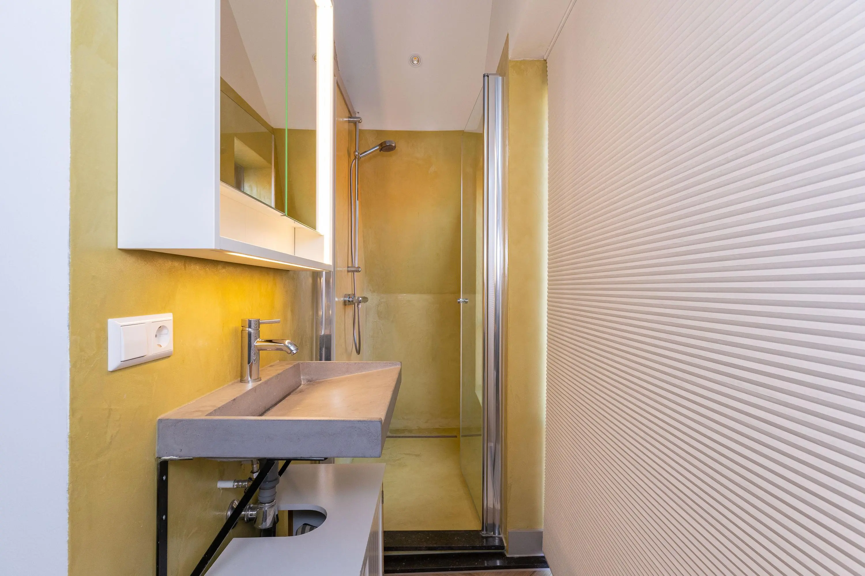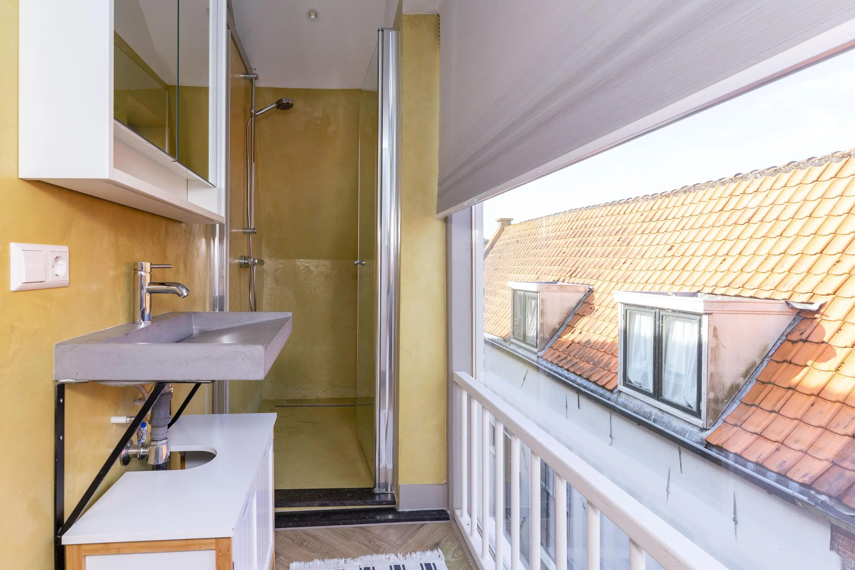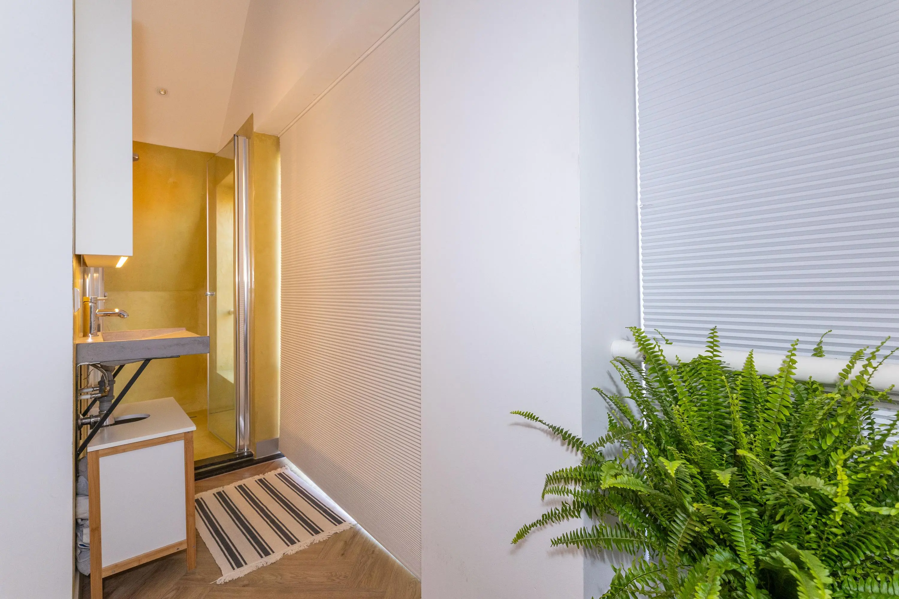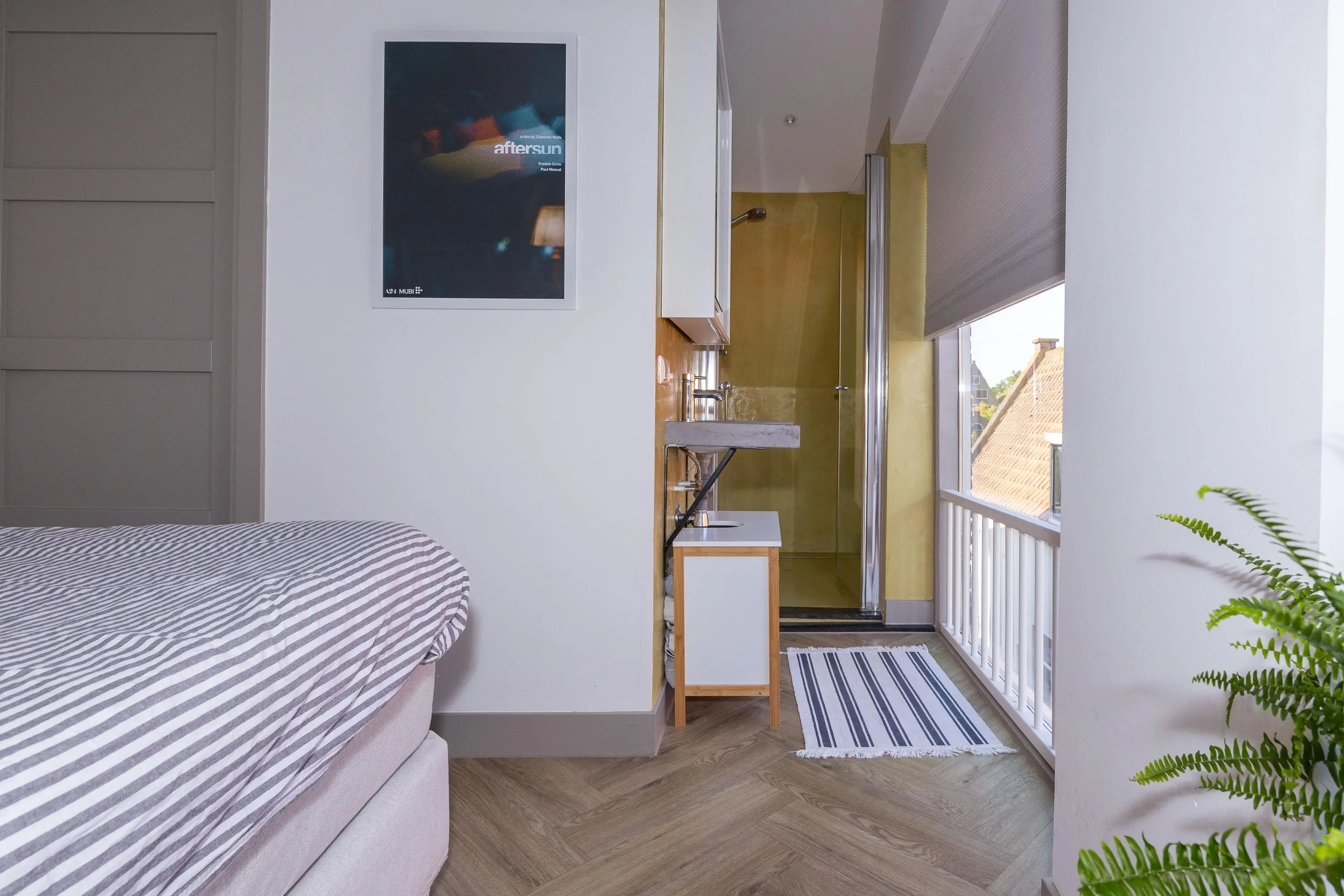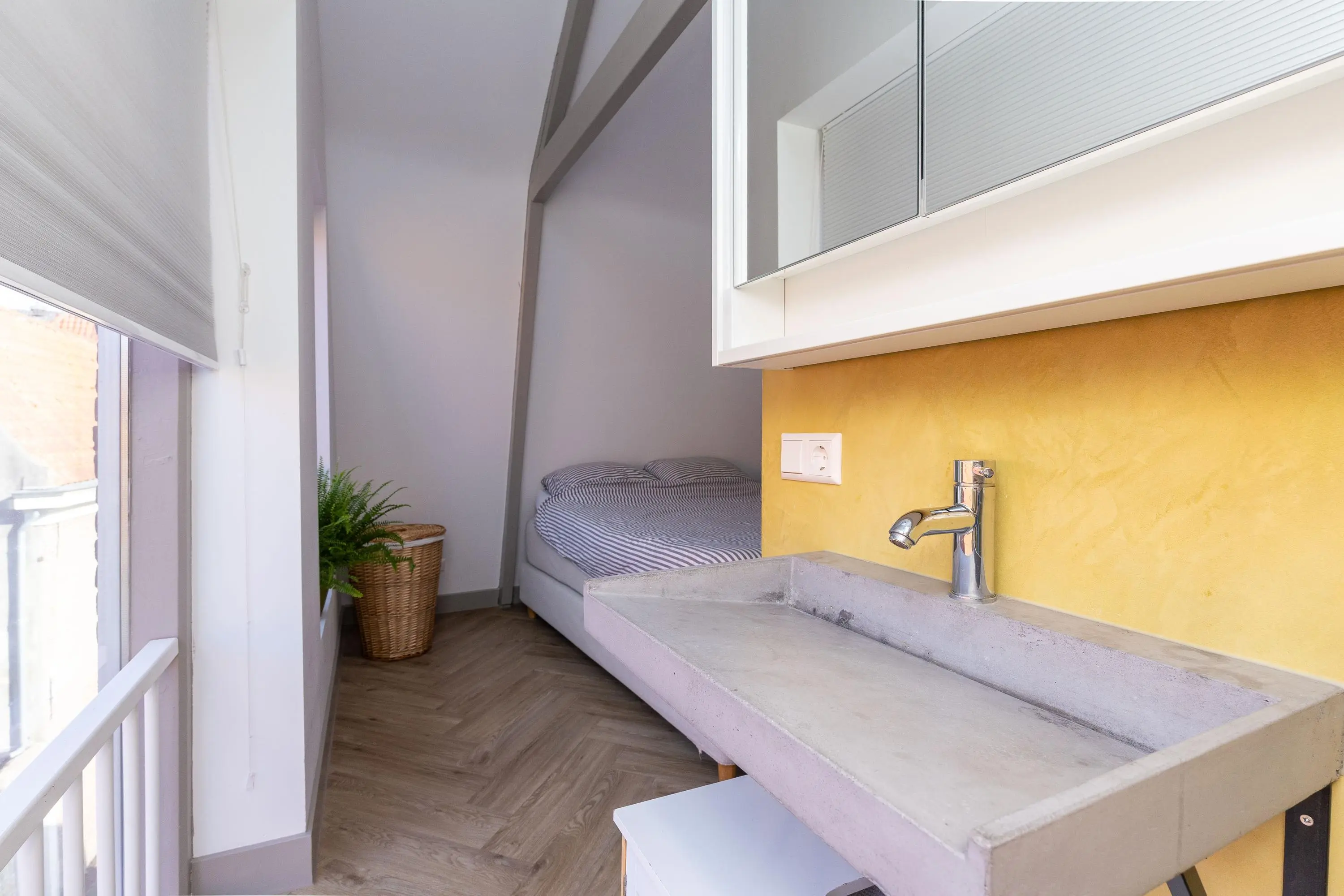• Slaapkamer met badkamer ensuite (douche en wastafel).