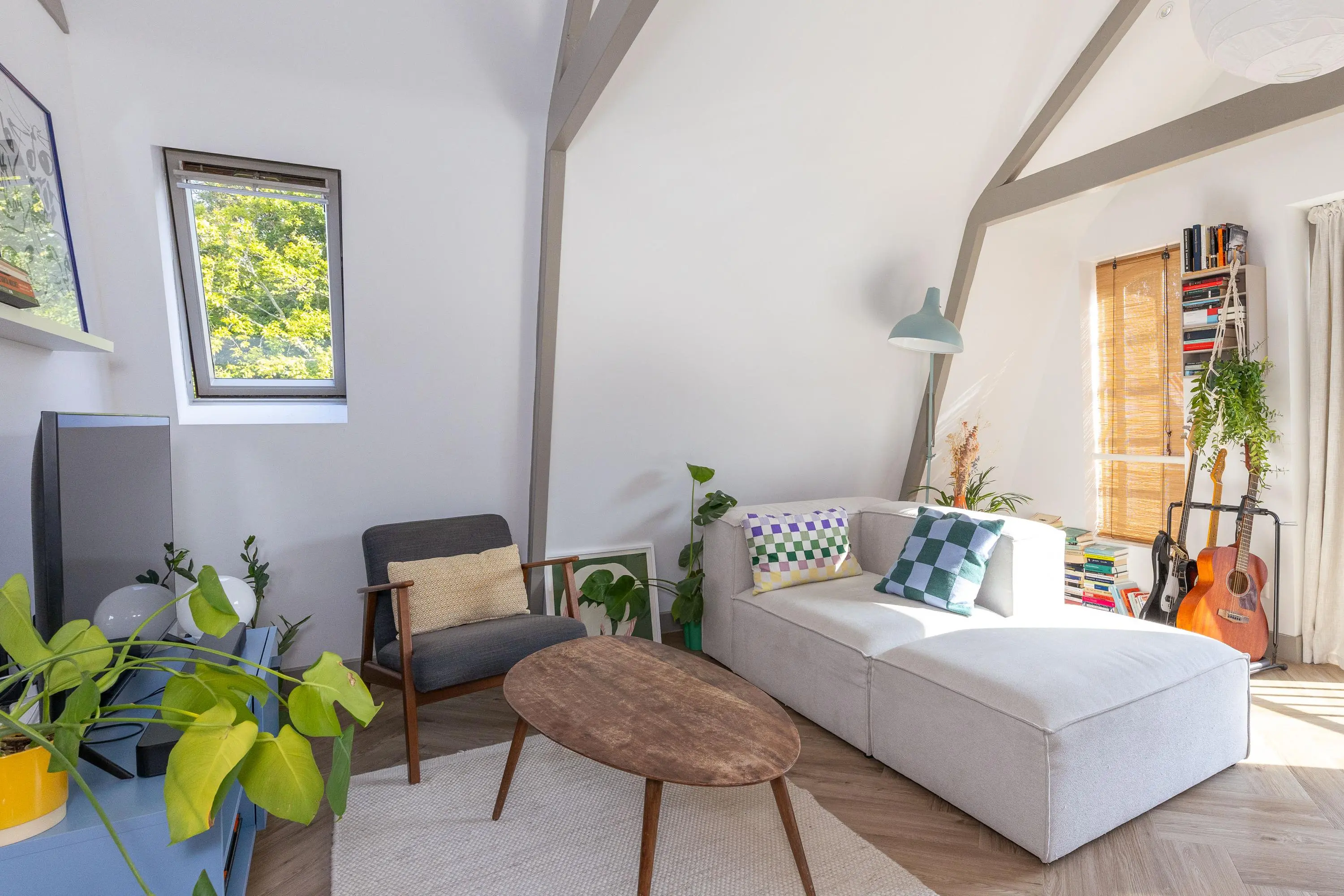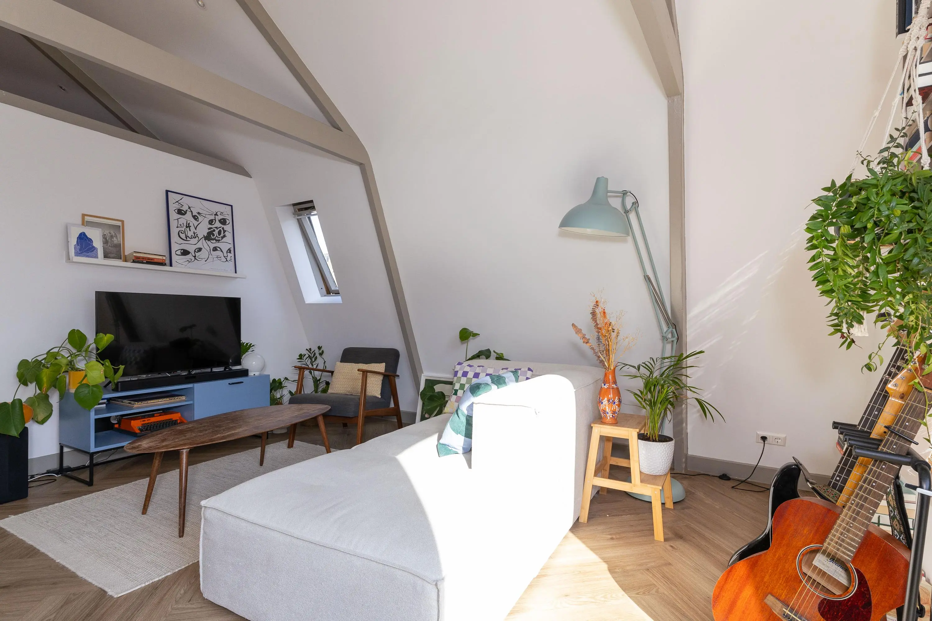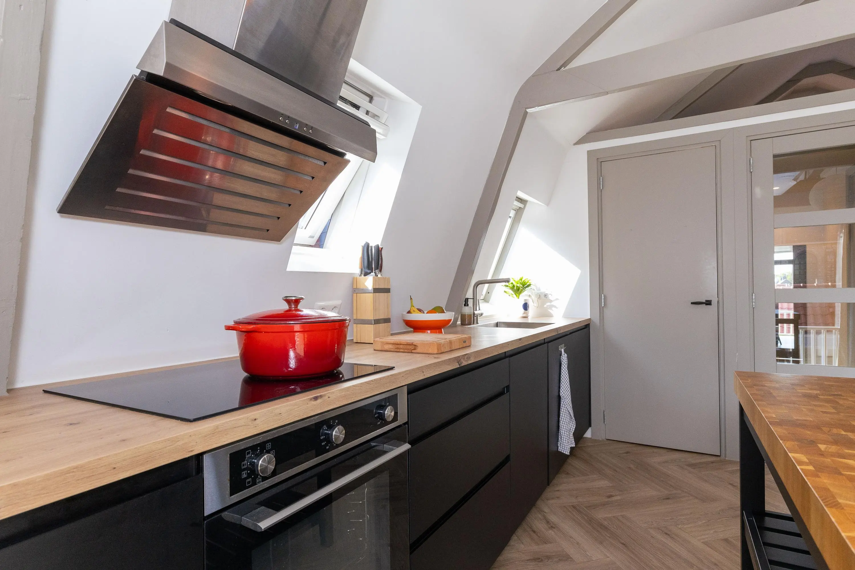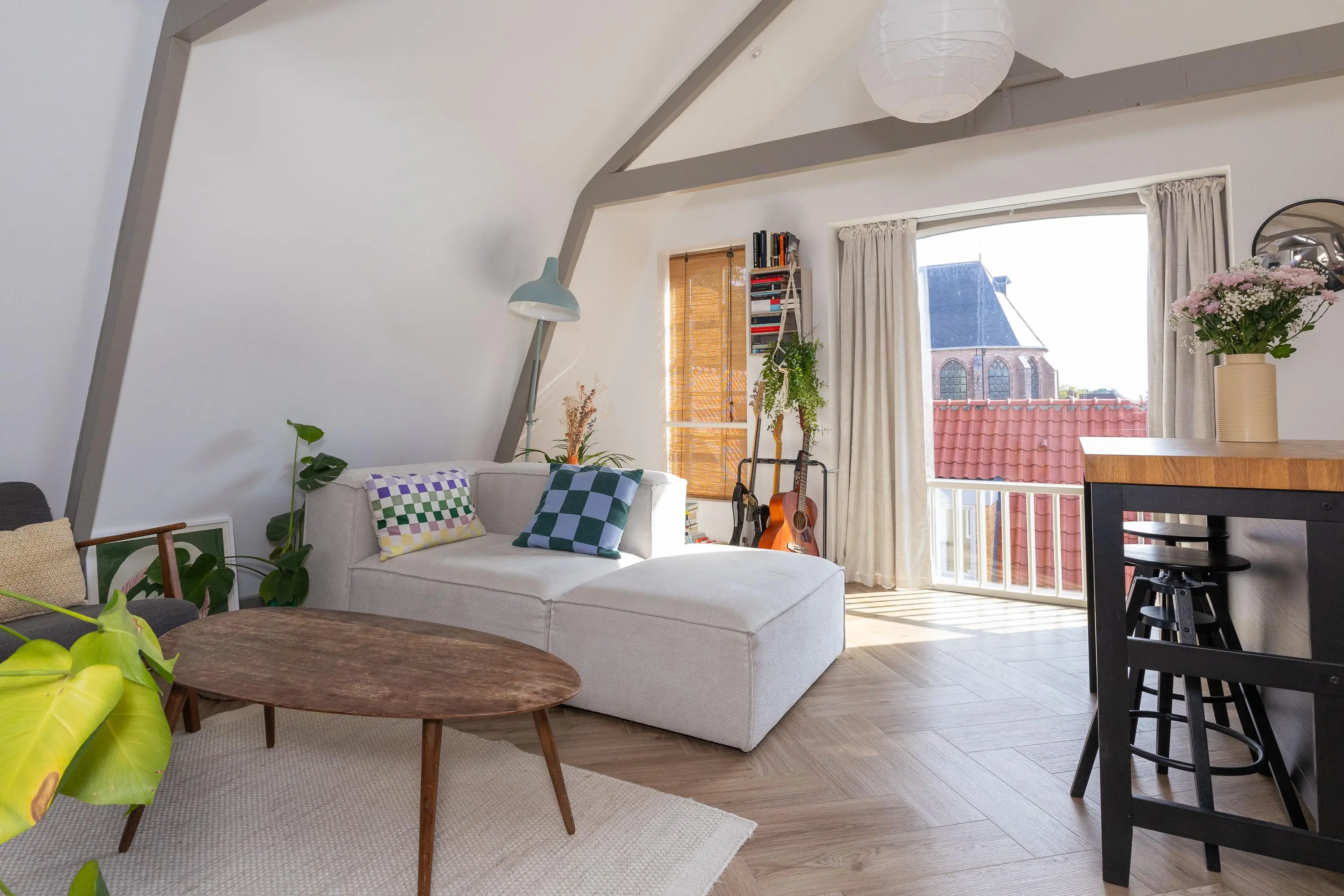 • Sfeervolle woonkamer met veel licht en moderne keuken (koelkast, vaatwasser, inductiekookplaat, oven en afzuigkap).