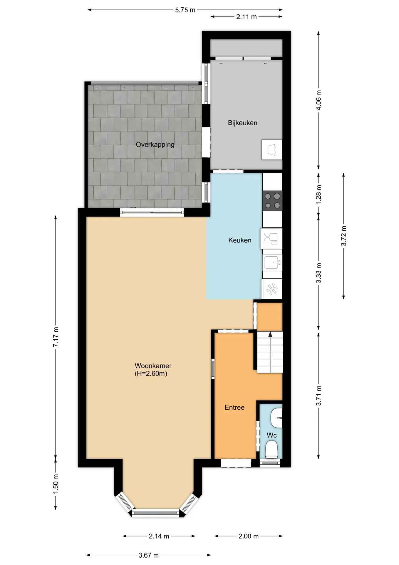 * Aangebouwde bijkeuken, erker en dakkapel;