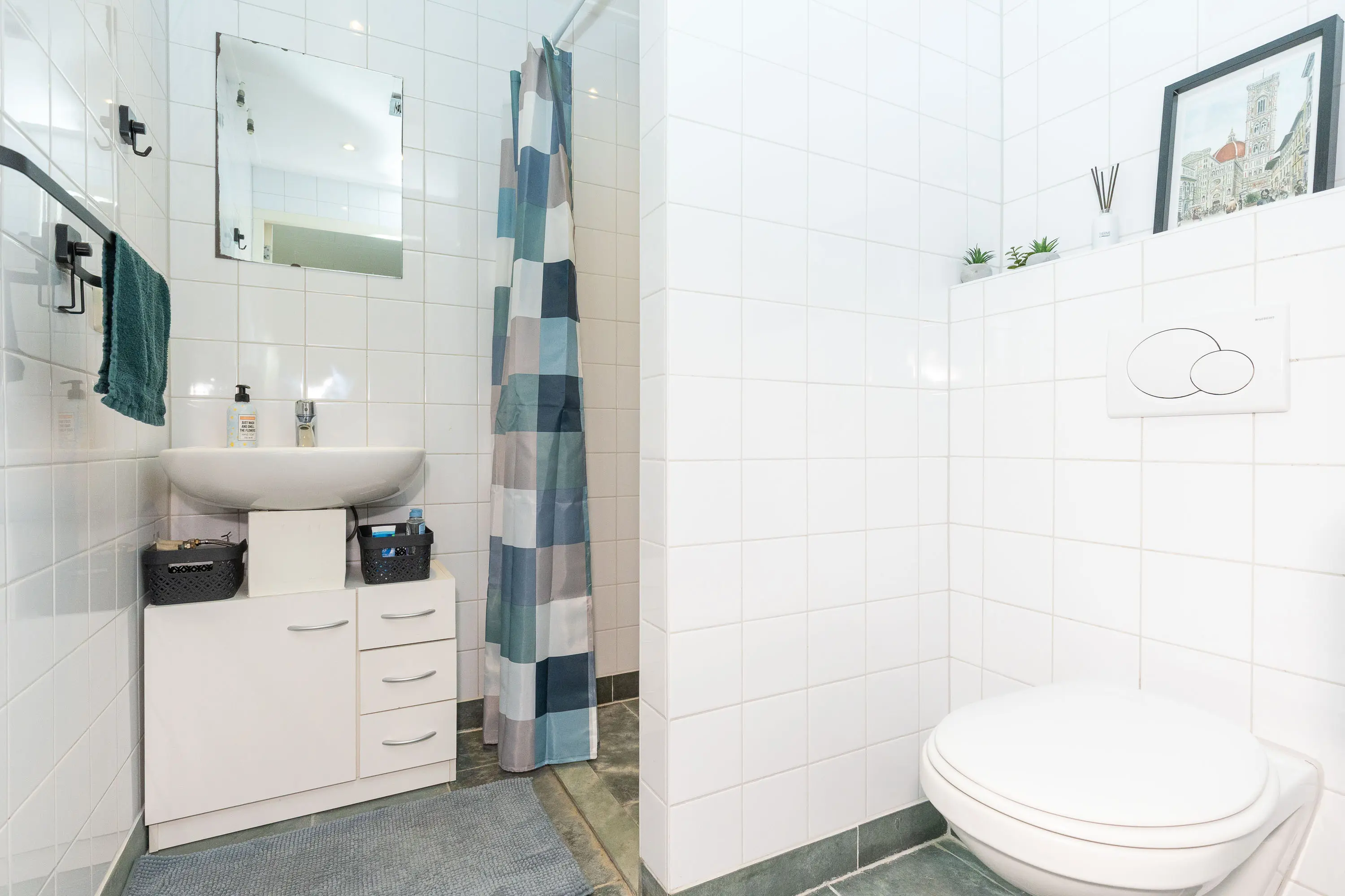 De nieuwe badkamer is voorzien van vloerverwarming, een ruime inloopdouche, een toilet en een dubbele wastafel en bevind zich tevens op de begane grond. Op de eerste verdieping van het woonhuis treft u twee slaapkamers, veel opbergruimte en een tweede toilet.
