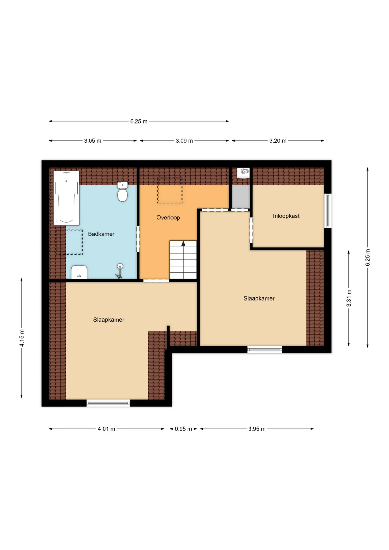 Ook bevindt zich op deze verdieping een ruime tweede badkamer met aansluitingen voor ligbad, inloopdouche, toilet en wastafel. Deze badkamer kan nog geheel naar eigen smaak worden afgewerkt.
