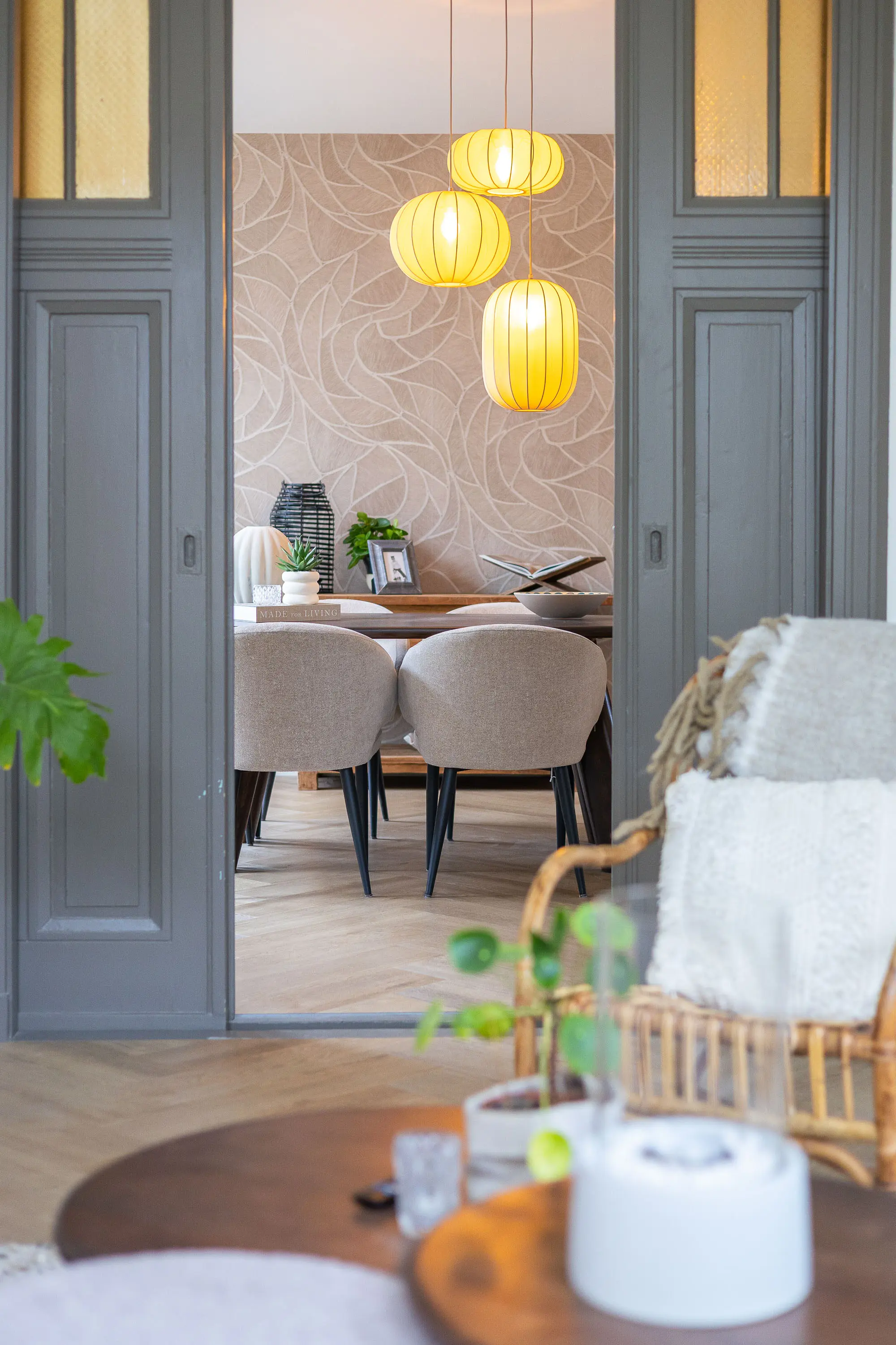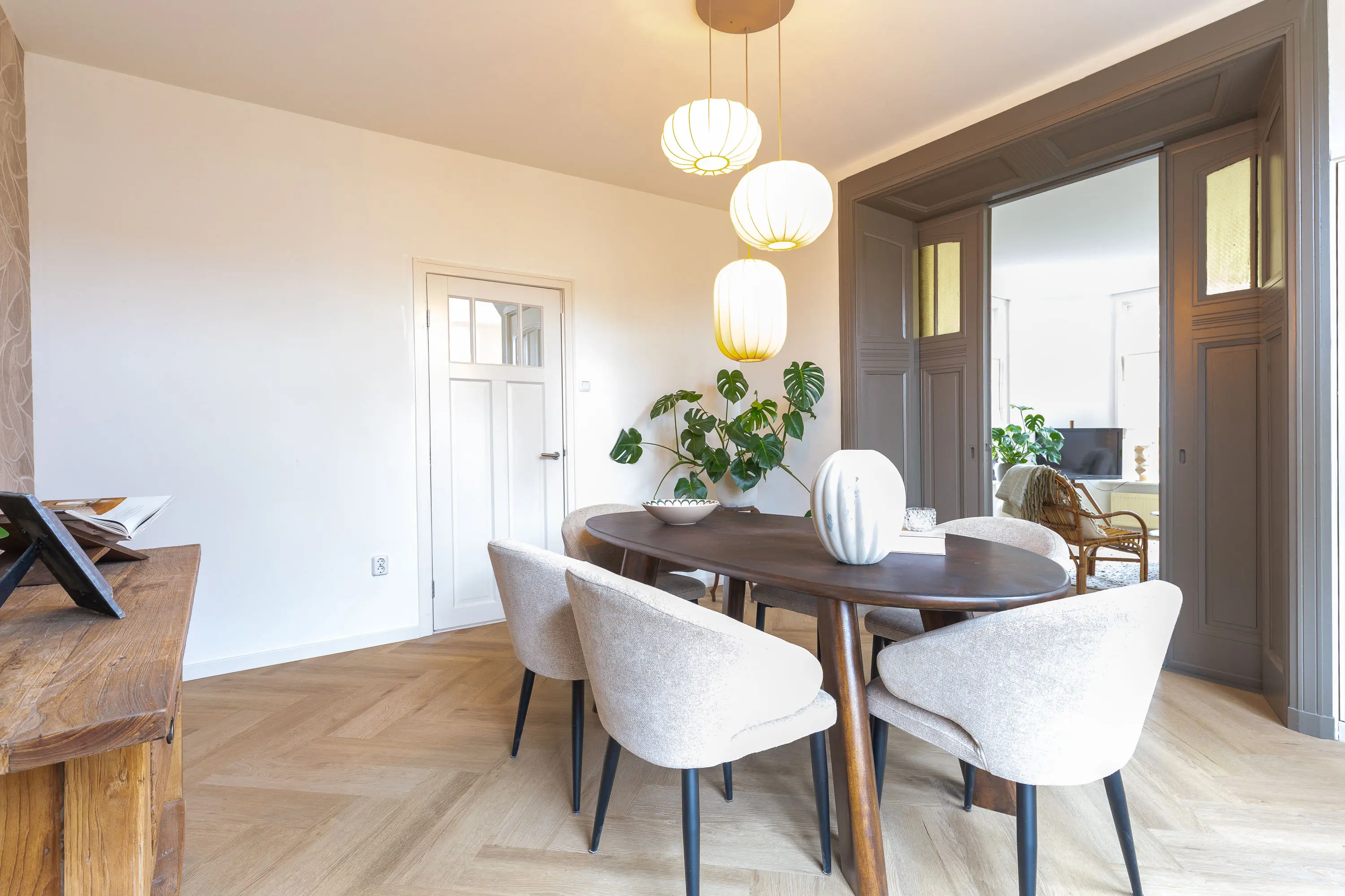 Bij binnenkomst straalt de woning direct warmte en comfort uit. Aan de linkerzijde van de hal bevindt zich de knusse woonkamer, die dankzij de suite deuren eenvoudig kan worden gescheiden. Ideaal voor gezellige avonden of juist een rustige plek.