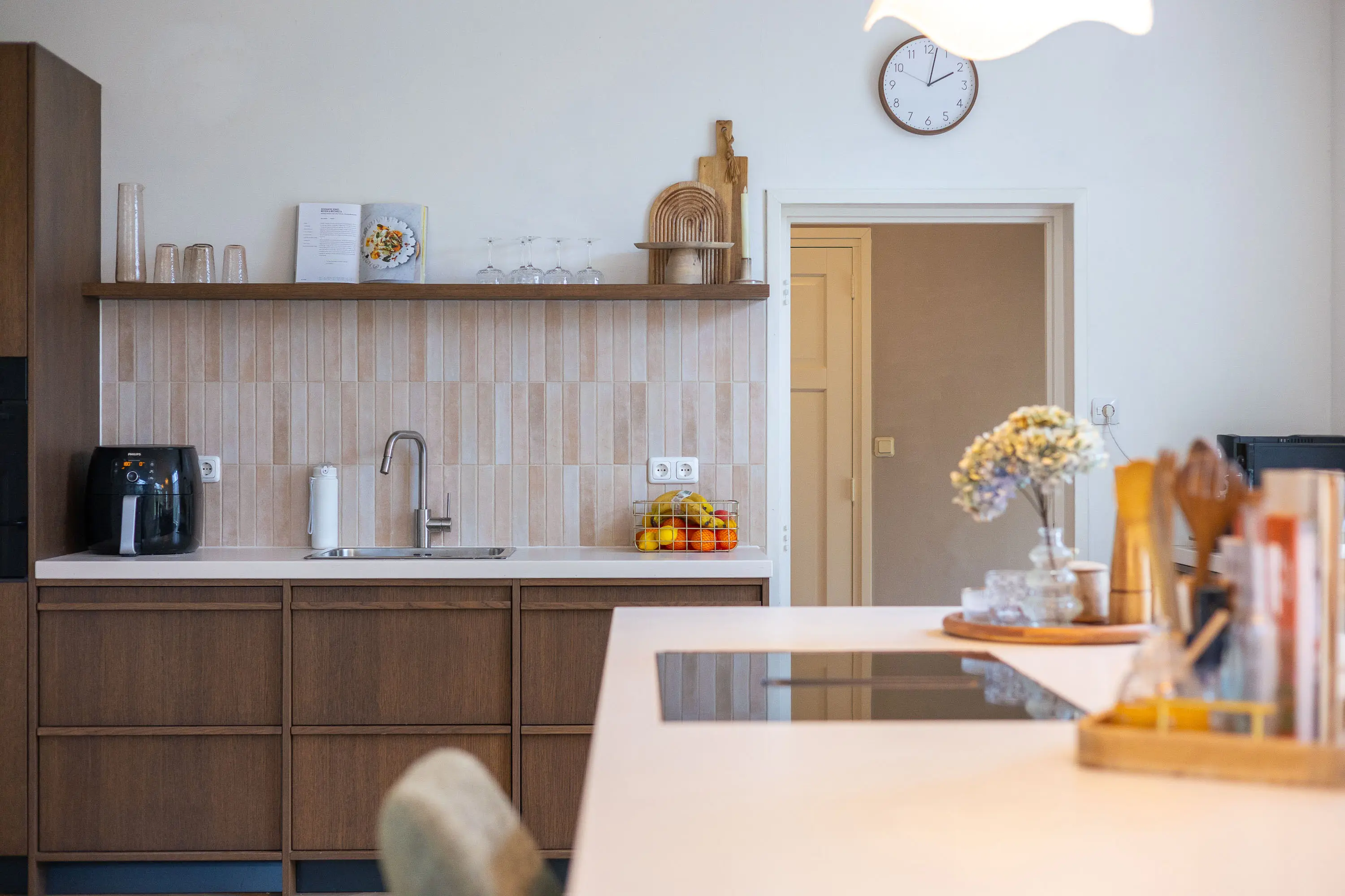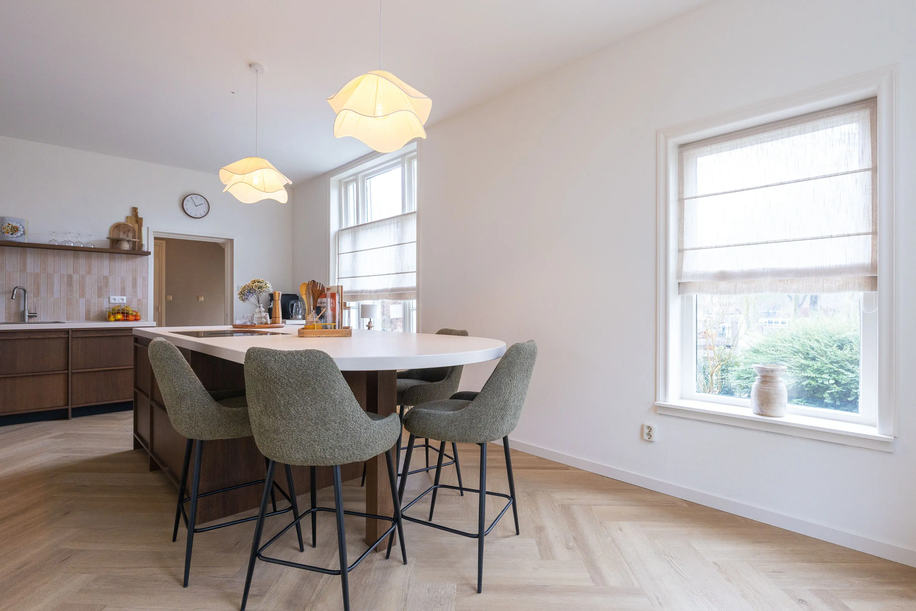 De handgemaakte, zeer fraai afgewerkte woonkeuken vormt het hart van het huis. Voorzien van diverse inbouwapparatuur en een royaal kookeiland is dit dé plek om samen te komen met familie en vrienden. Op de begane grond is deels vloerverwarming aanwezig, wat zorgt voor extra comfort.
