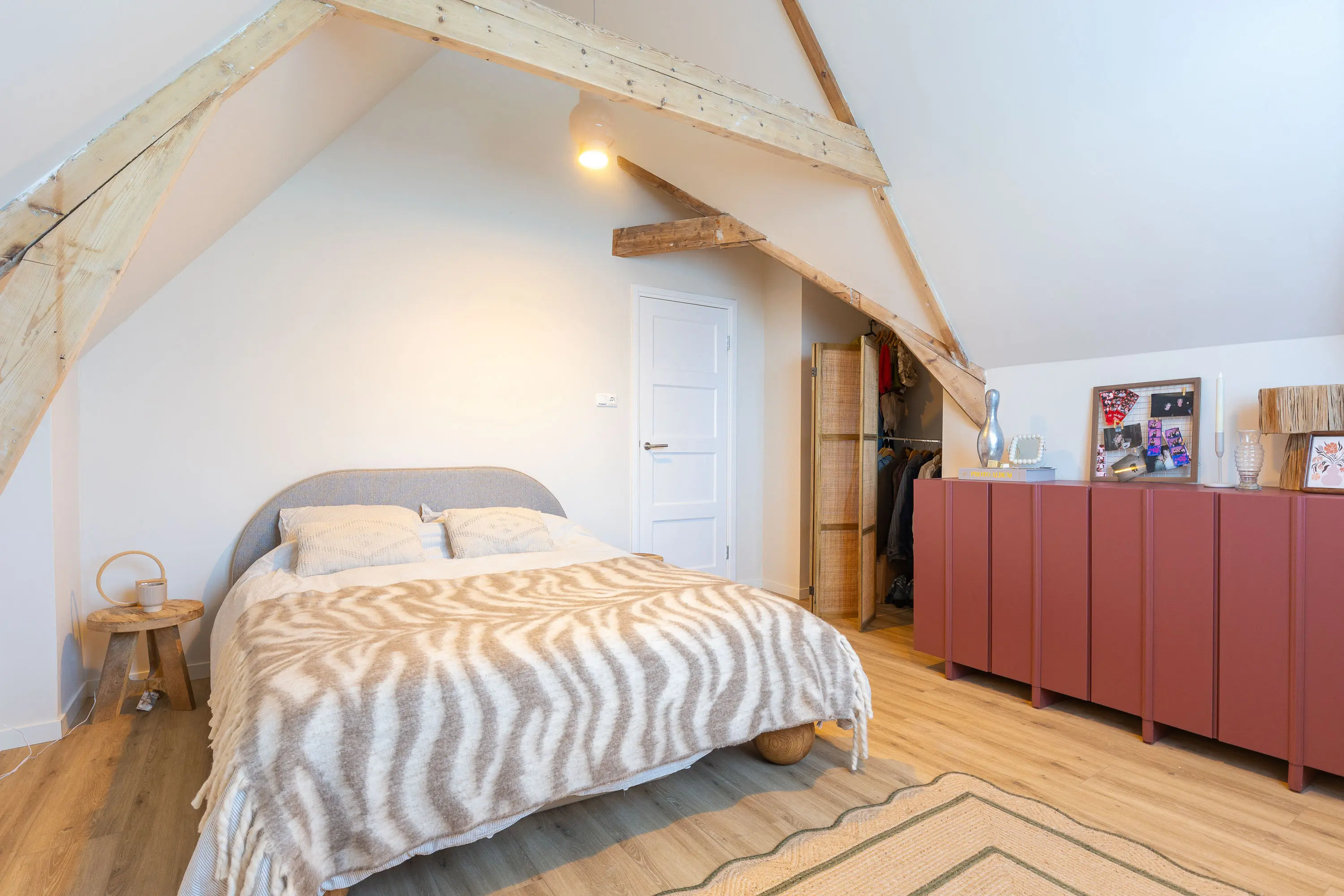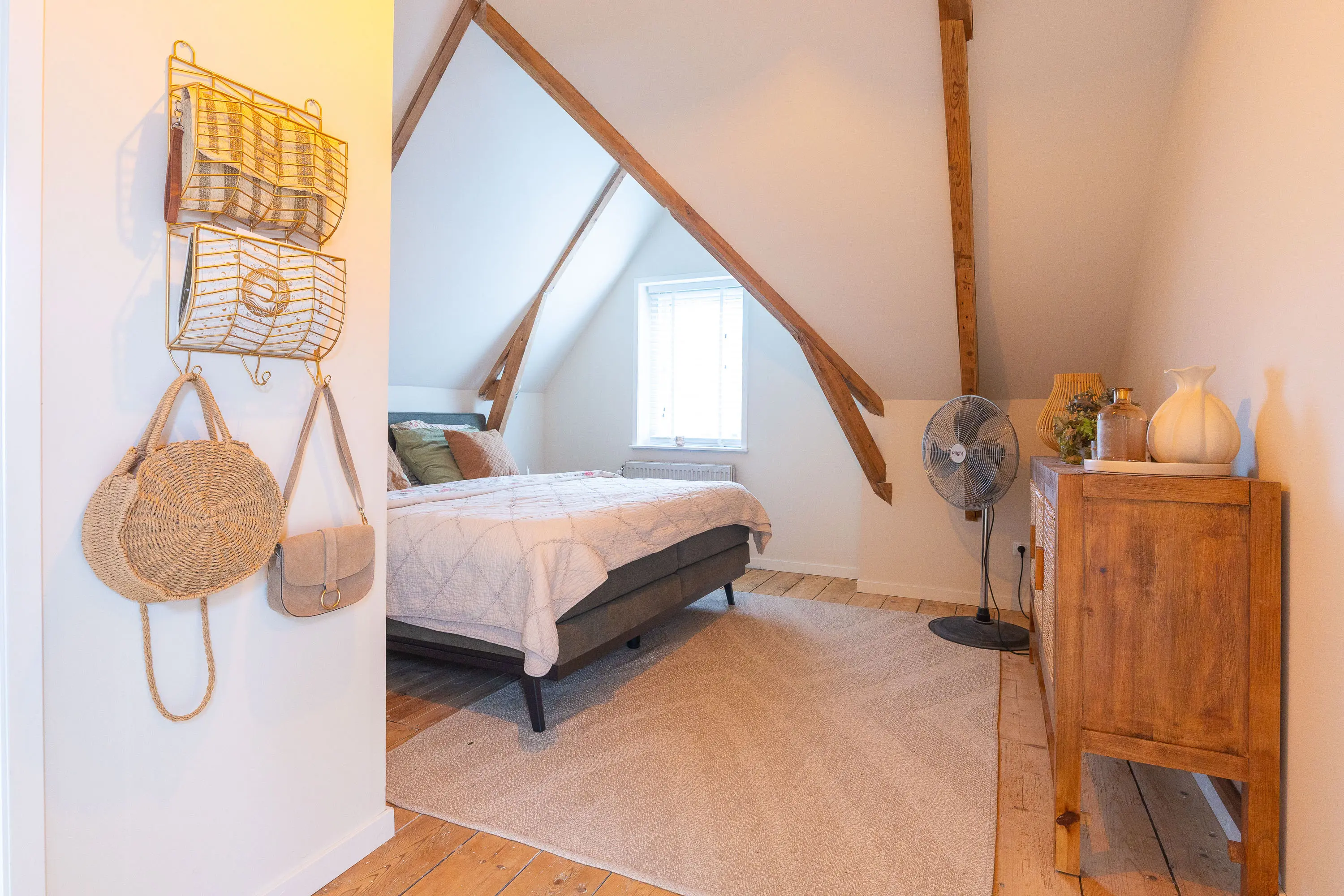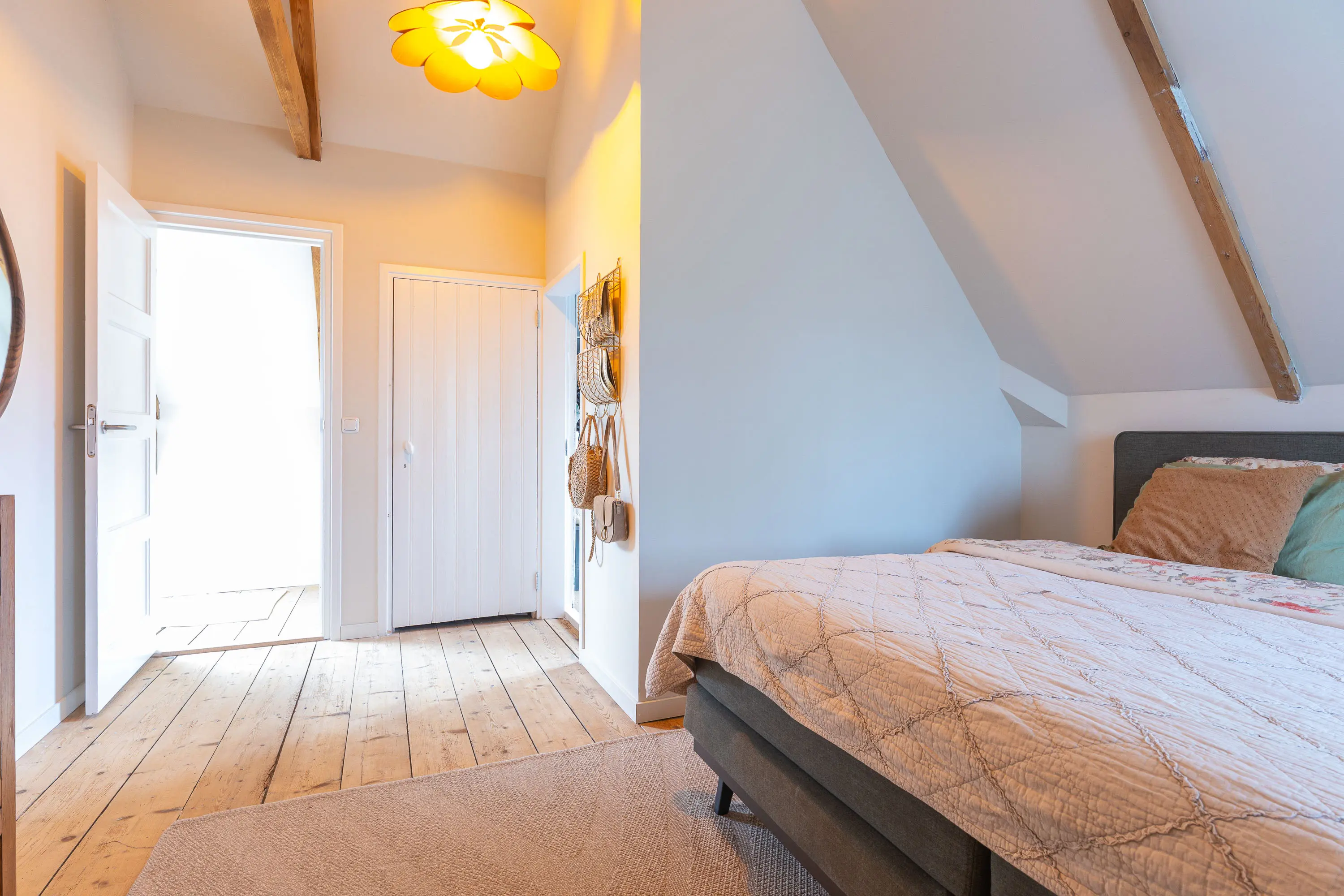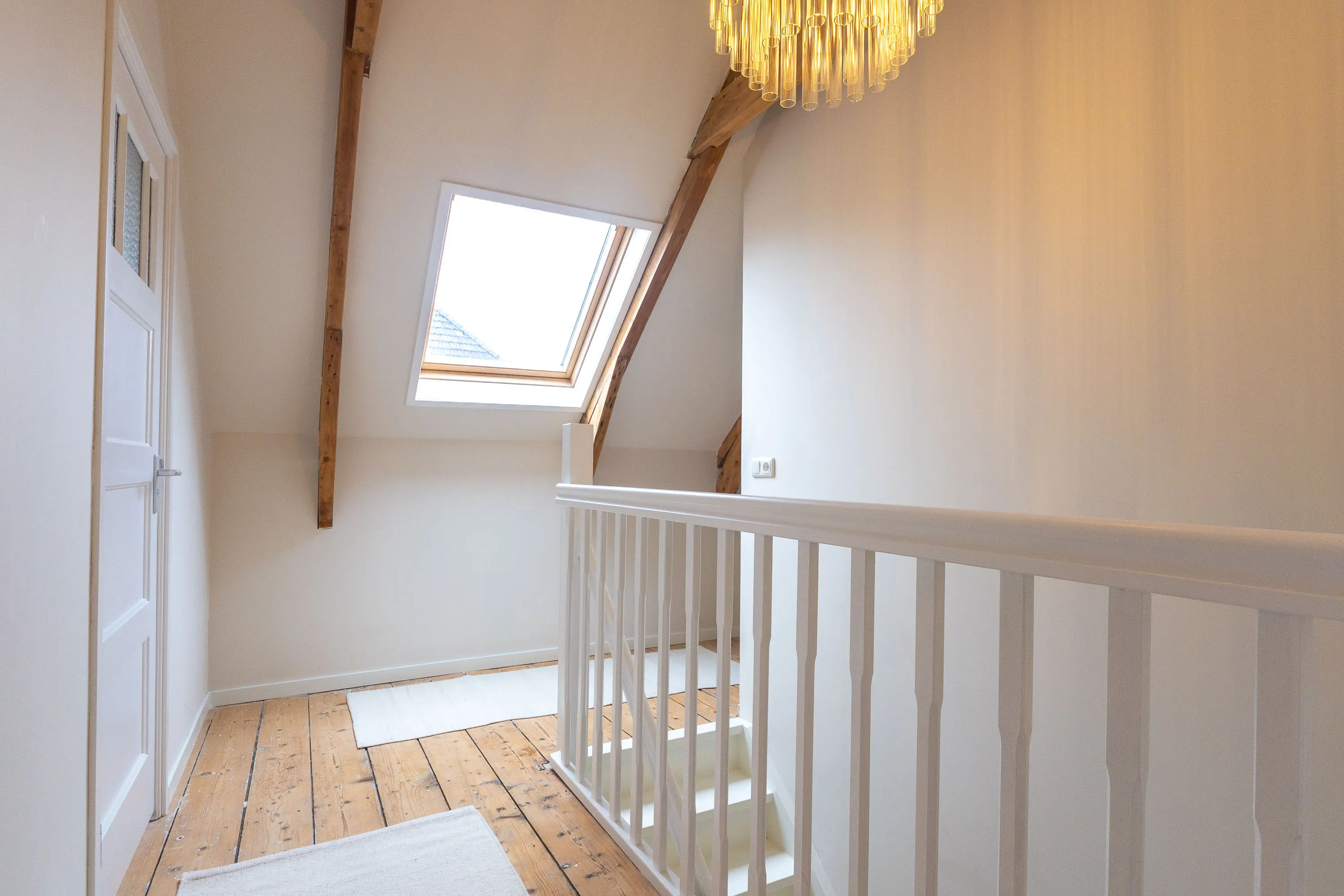 Op de eerste verdieping zijn twee knusse slaapkamers gerealiseerd, waarbij de oude details zorgvuldig intact zijn gebleven. Daarnaast vindt u hier een royale inloopkast voor al uw kleding.