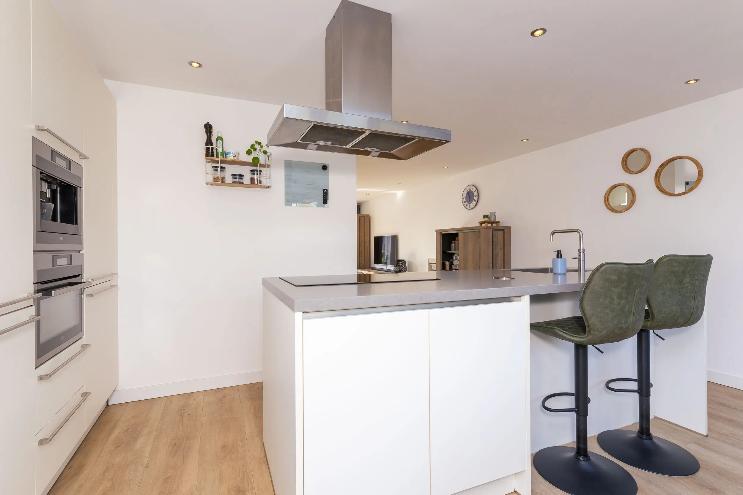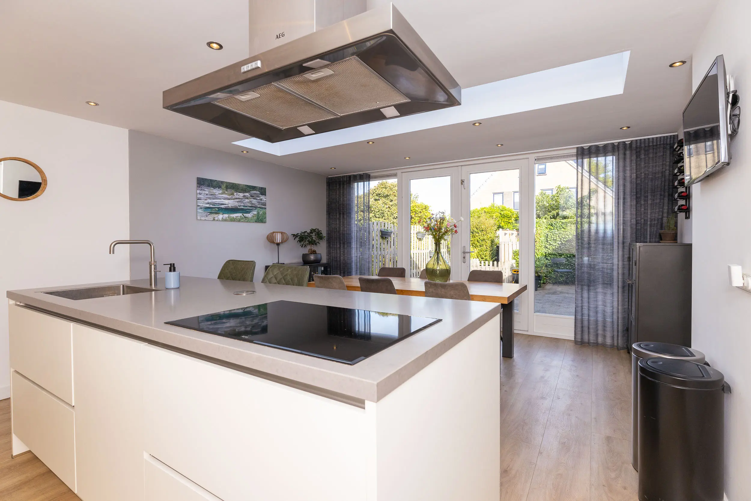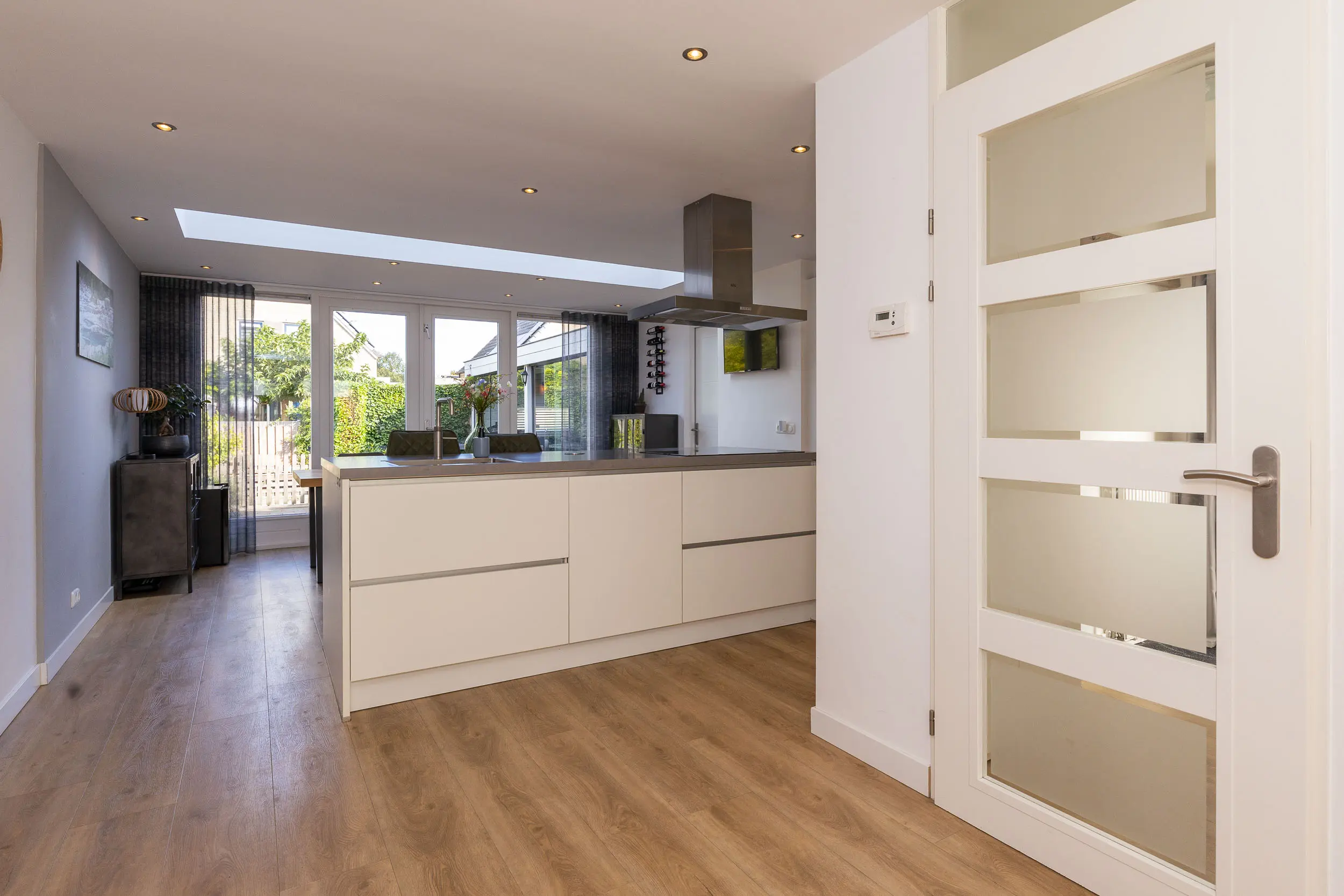 In 2018 is de woning aan de achterzijde uitgebouwd, waardoor een royale leefruimte is ontstaan. De moderne open keuken, eveneens vernieuwd in 2018, is voorzien van een kook- en spoeleiland en diverse inbouwapparatuur. Dankzij de dubbele tuindeuren loopt u zo de tuin in, waar u optimaal kunt genieten van de zon en het uitzicht op het water. De begane grond is afgewerkt met een stijlvolle pvc vloer en voorzien van vloerverwarming.