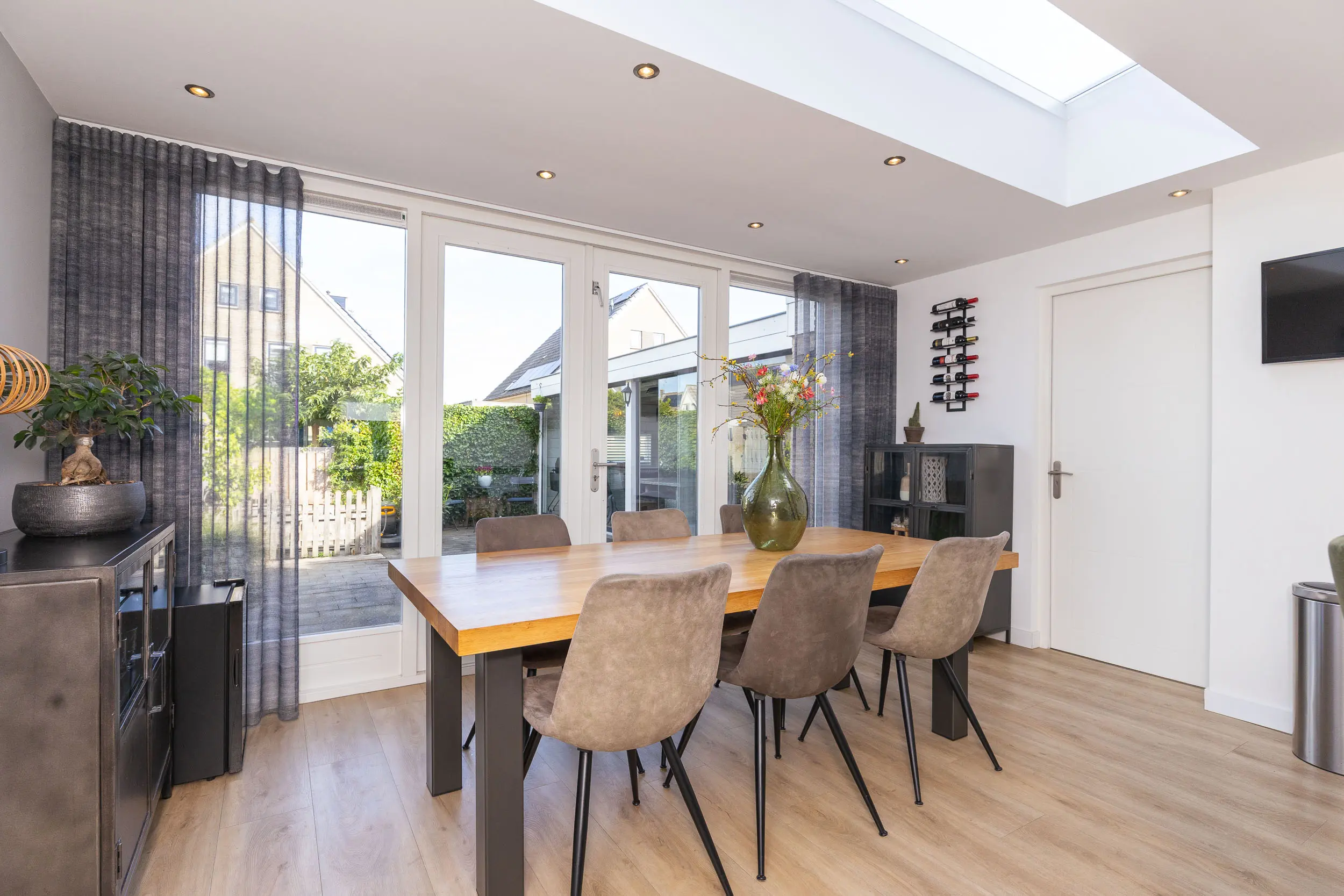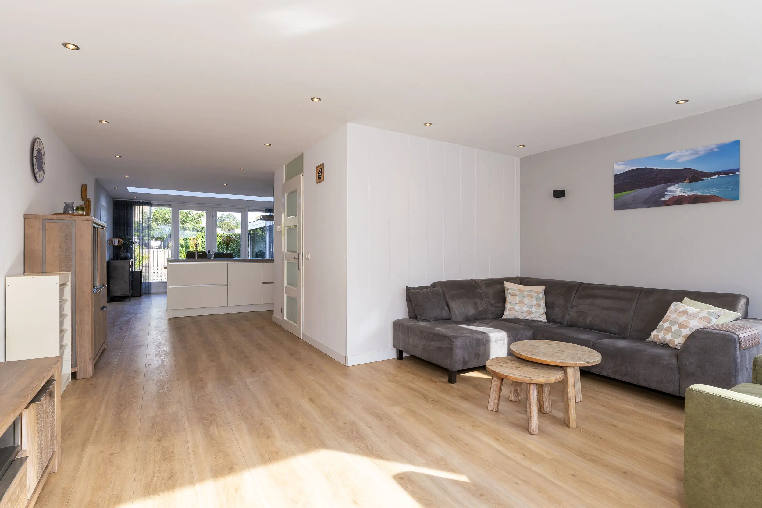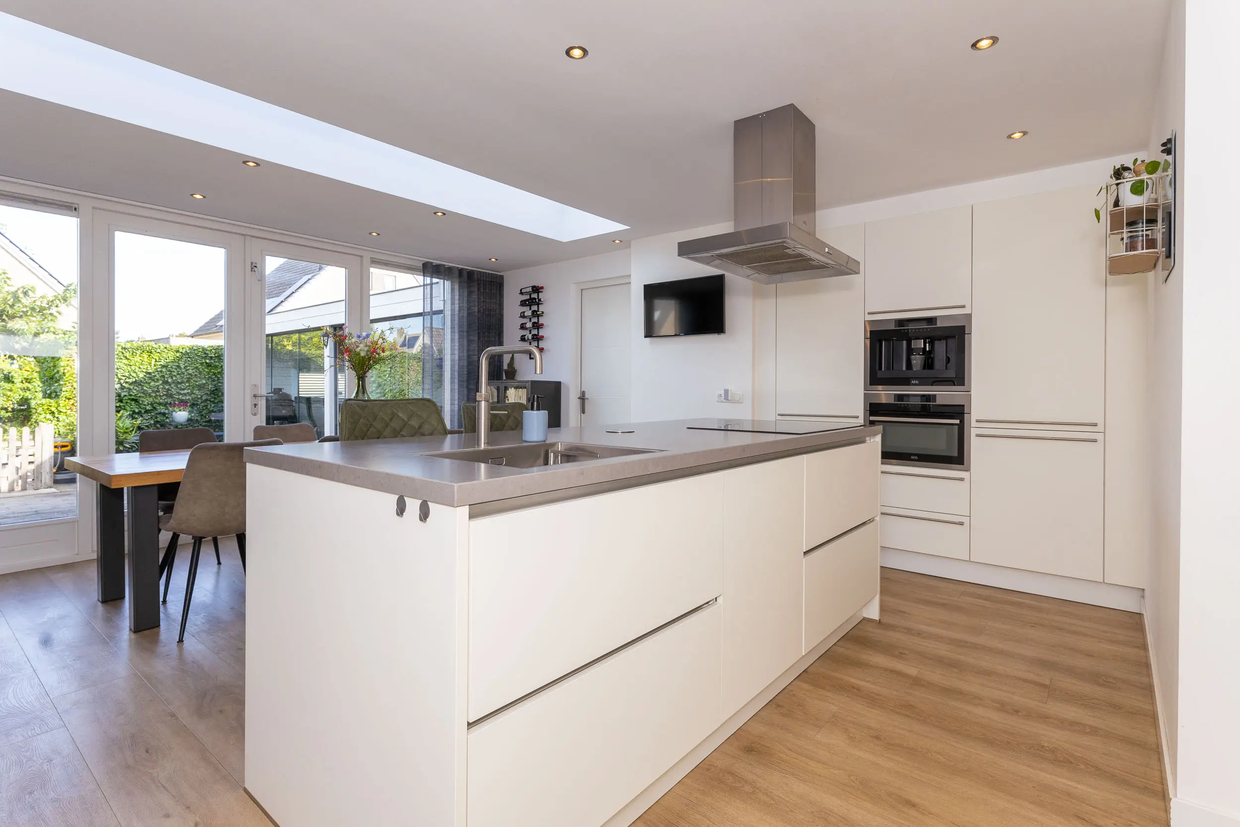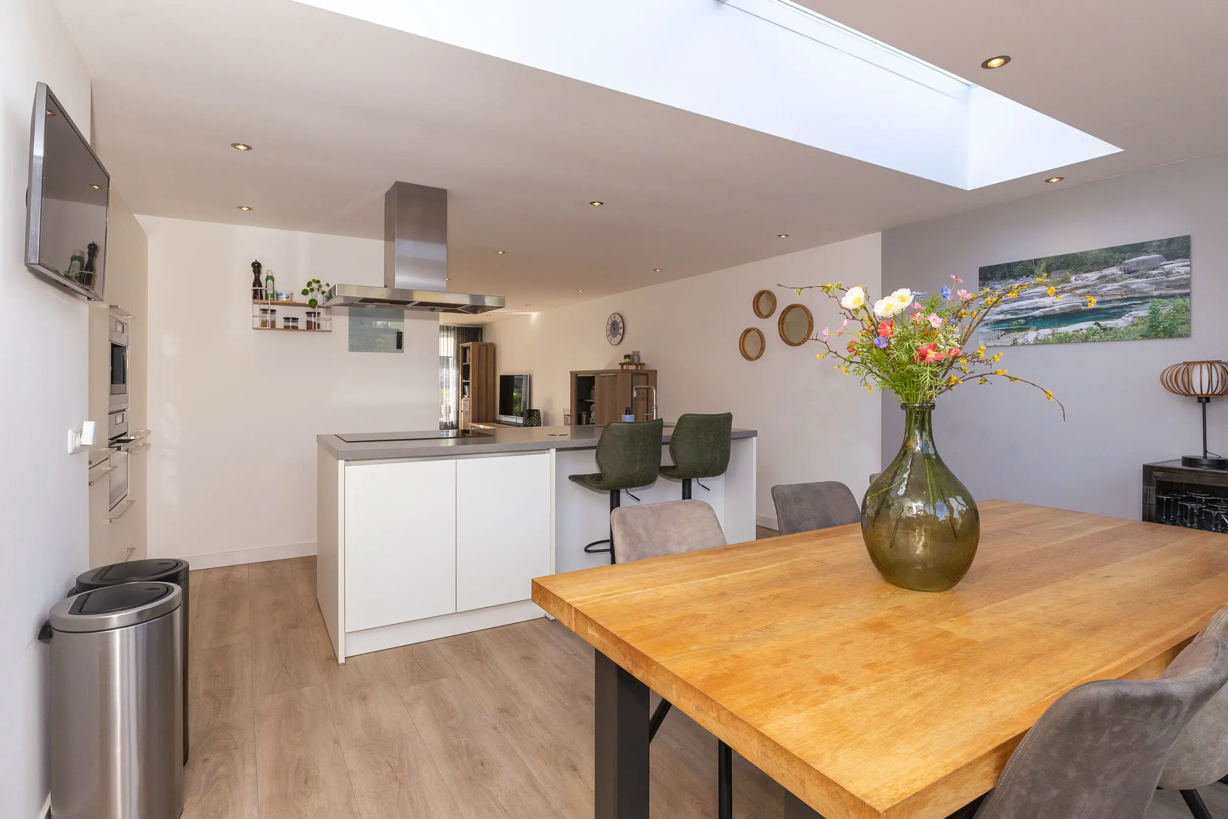 In 2018 is de woning aan de achterzijde uitgebouwd, waardoor een royale leefruimte is ontstaan. De moderne open keuken, eveneens vernieuwd in 2018, is voorzien van een kook- en spoeleiland en diverse inbouwapparatuur. Dankzij de dubbele tuindeuren loopt u zo de tuin in, waar u optimaal kunt genieten van de zon en het uitzicht op het water. De begane grond is afgewerkt met een stijlvolle pvc vloer en voorzien van vloerverwarming.