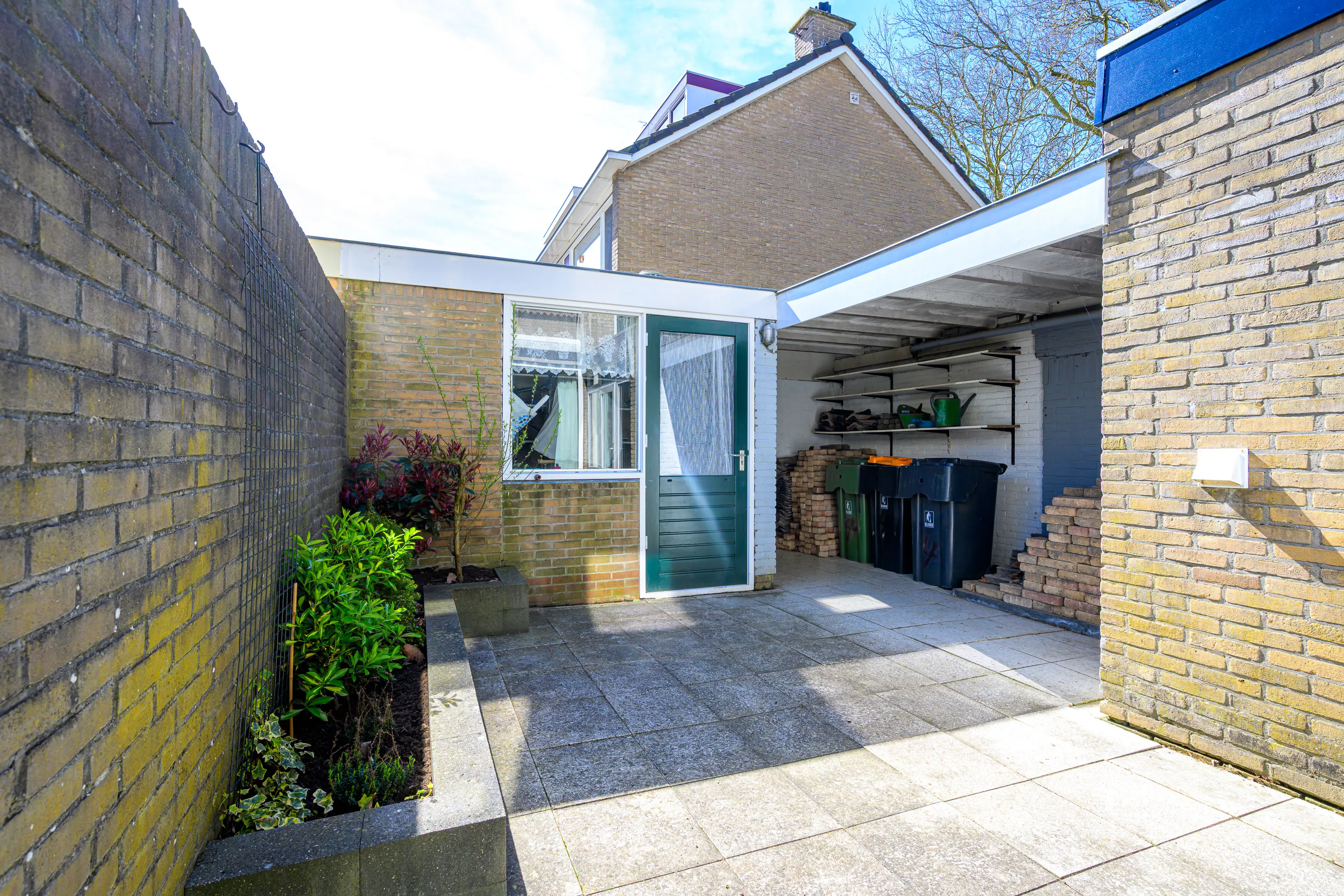 De achtertuin is gelegen op het zuiden en dat is een garantie voor veel zonuren. De tuin is voorzien van sierbestrating een verhoogde plantenborder en een overkapping. De tuin is via een achterom bereikbaar en de stenen berging maakt het plaatje compleet. Gewoon een lekkere tuin dus! De voortuin is netjes en voorzien van siergrind en een groene haag.
