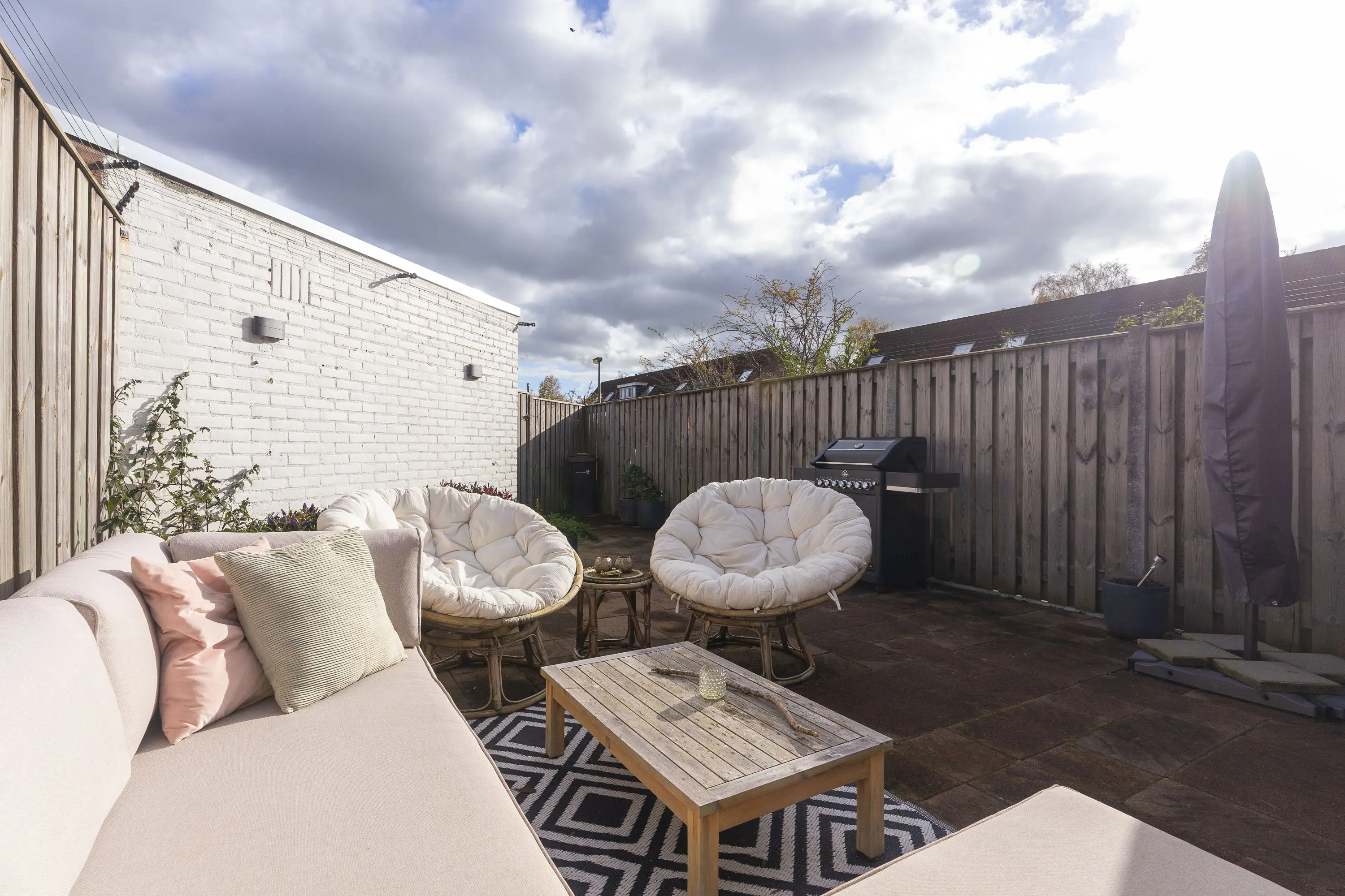 De zonnige tuin ligt op het zuidoosten en beschikt over een achterom. Hier geniet je van de zon van 's ochtends tot laat in de middag. Een heerlijke plek om te ontspannen of gezellig te borrelen met familie en vrienden.
