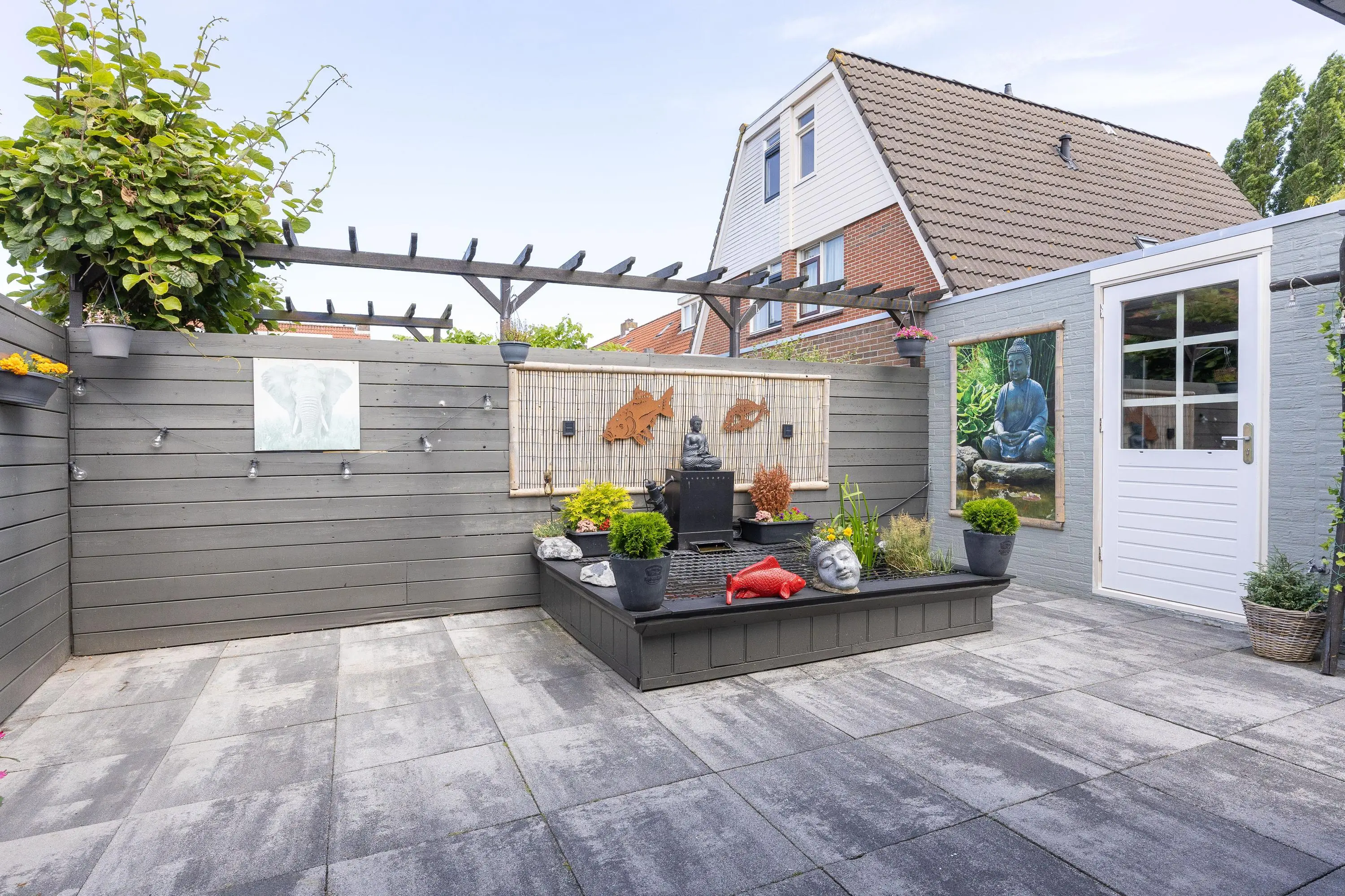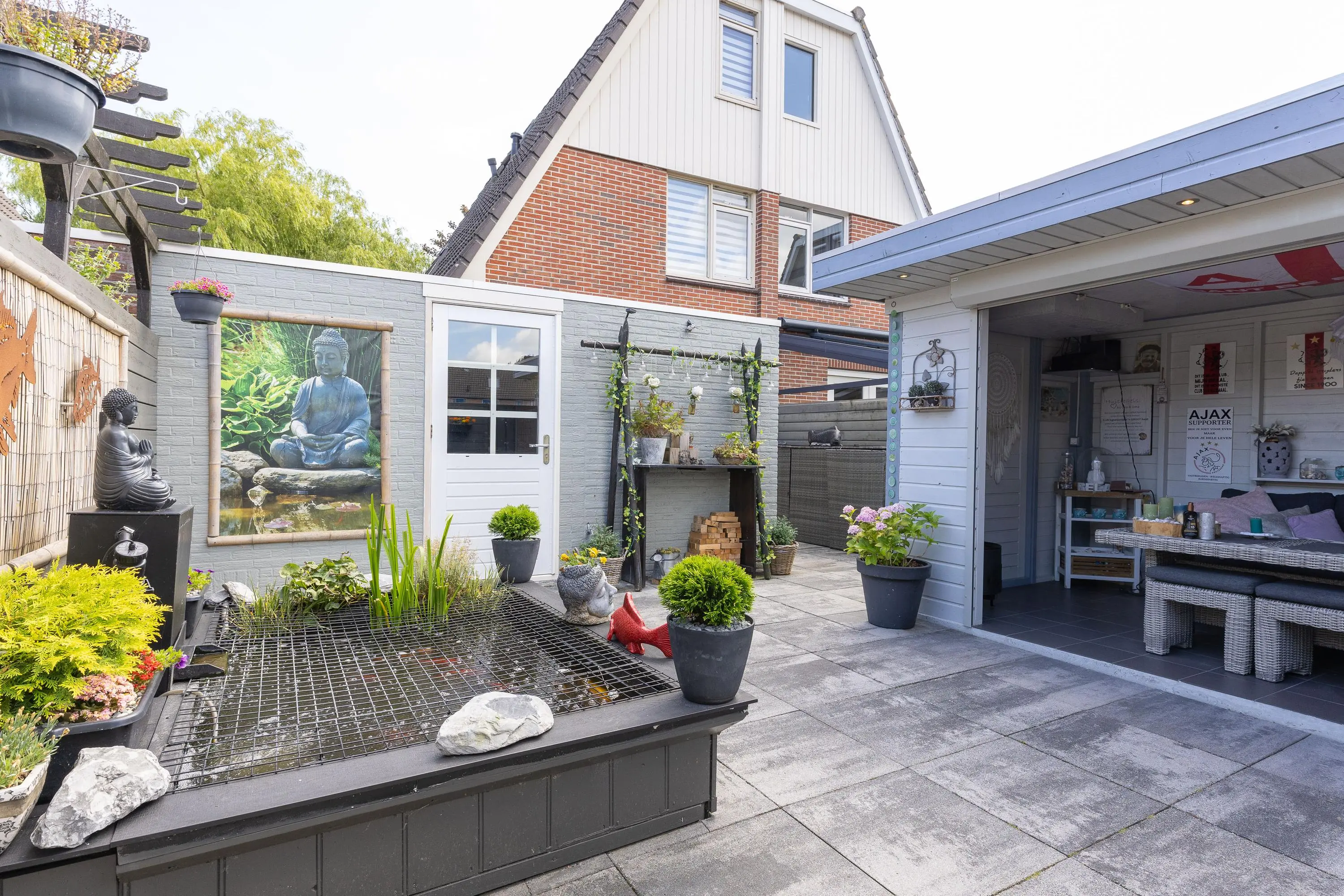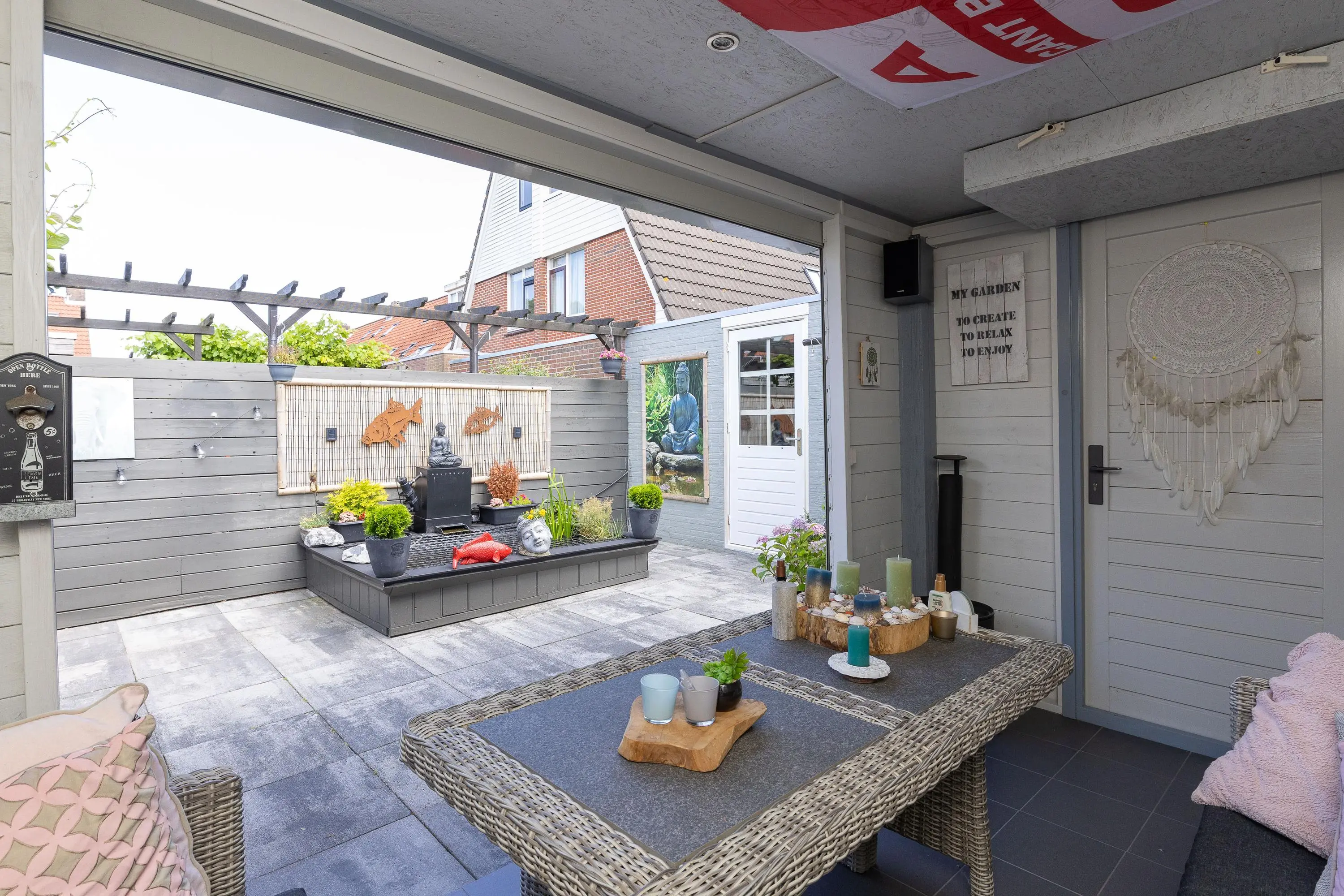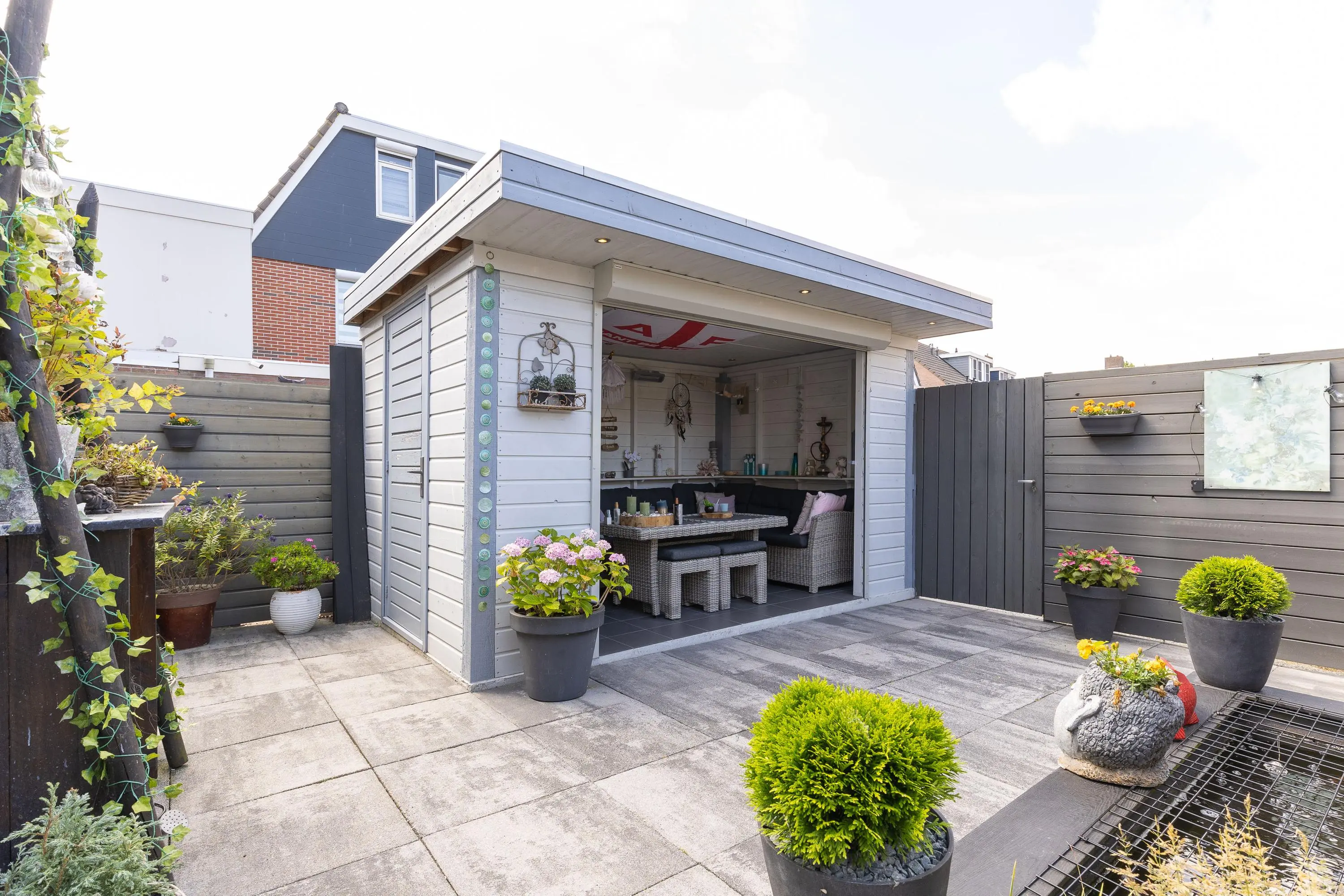 In de nette aangelegde tuin vind je een vrijstaande veranda, waar je tot in de late uurtjes heerlijk kunt genieten van het buitenleven. Of je nu houdt van barbecueën, ontspannen met een goed boek of gezellig borrelen met vrienden – deze plek is een verlengstuk van je woonkamer.