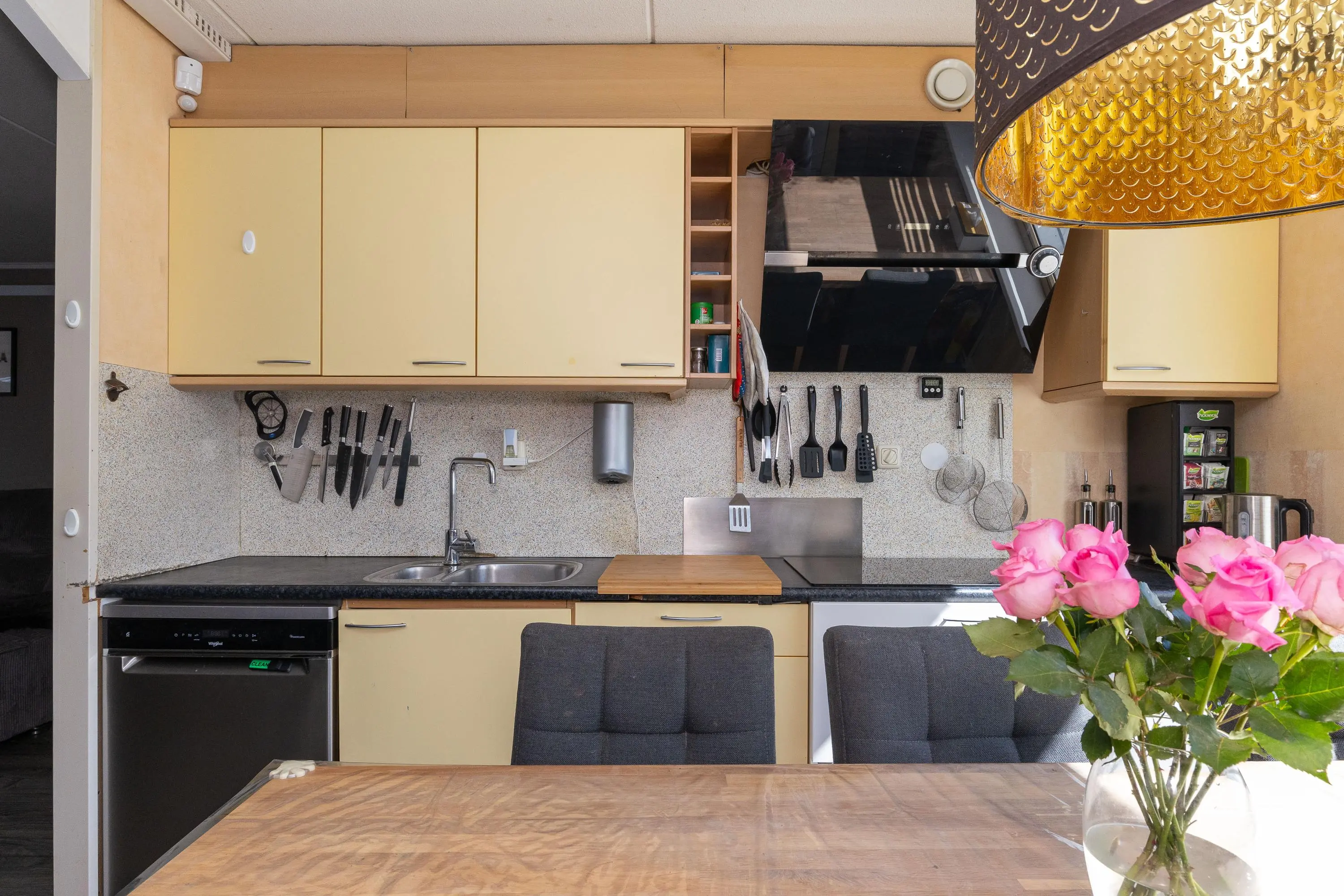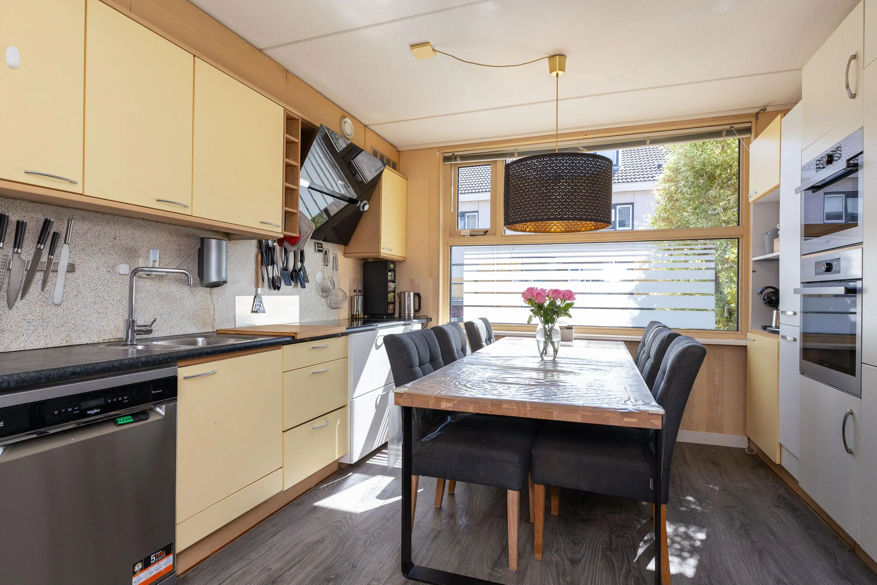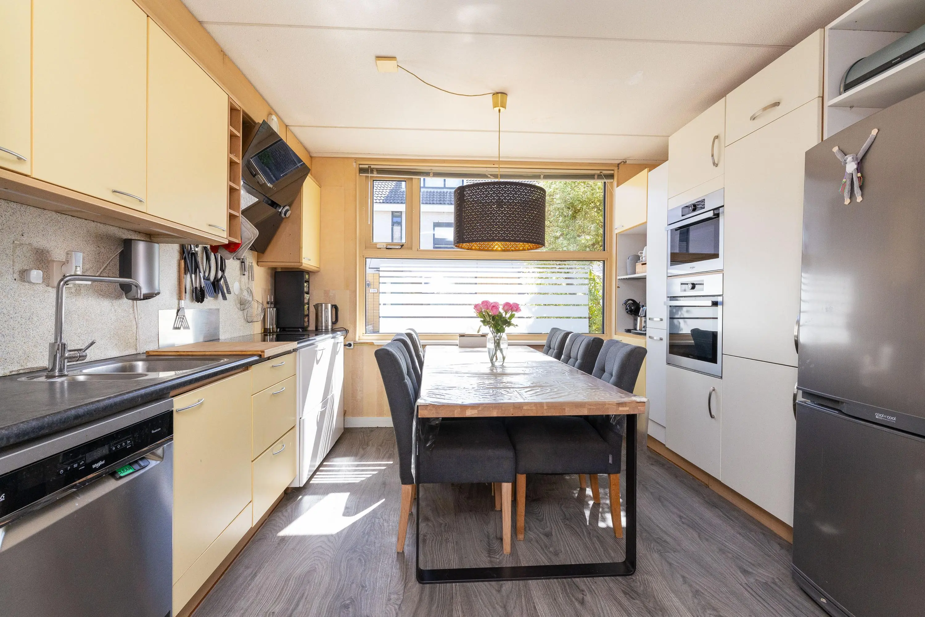 De open keuken is praktisch en slim ingedeeld, voorzien van veel kastruimte en moderne inbouwapparatuur (deels vernieuwd in 2023/2024). Hier kookt u op inductie en geniet u van de perfecte balans tussen koken en samen tafelen.