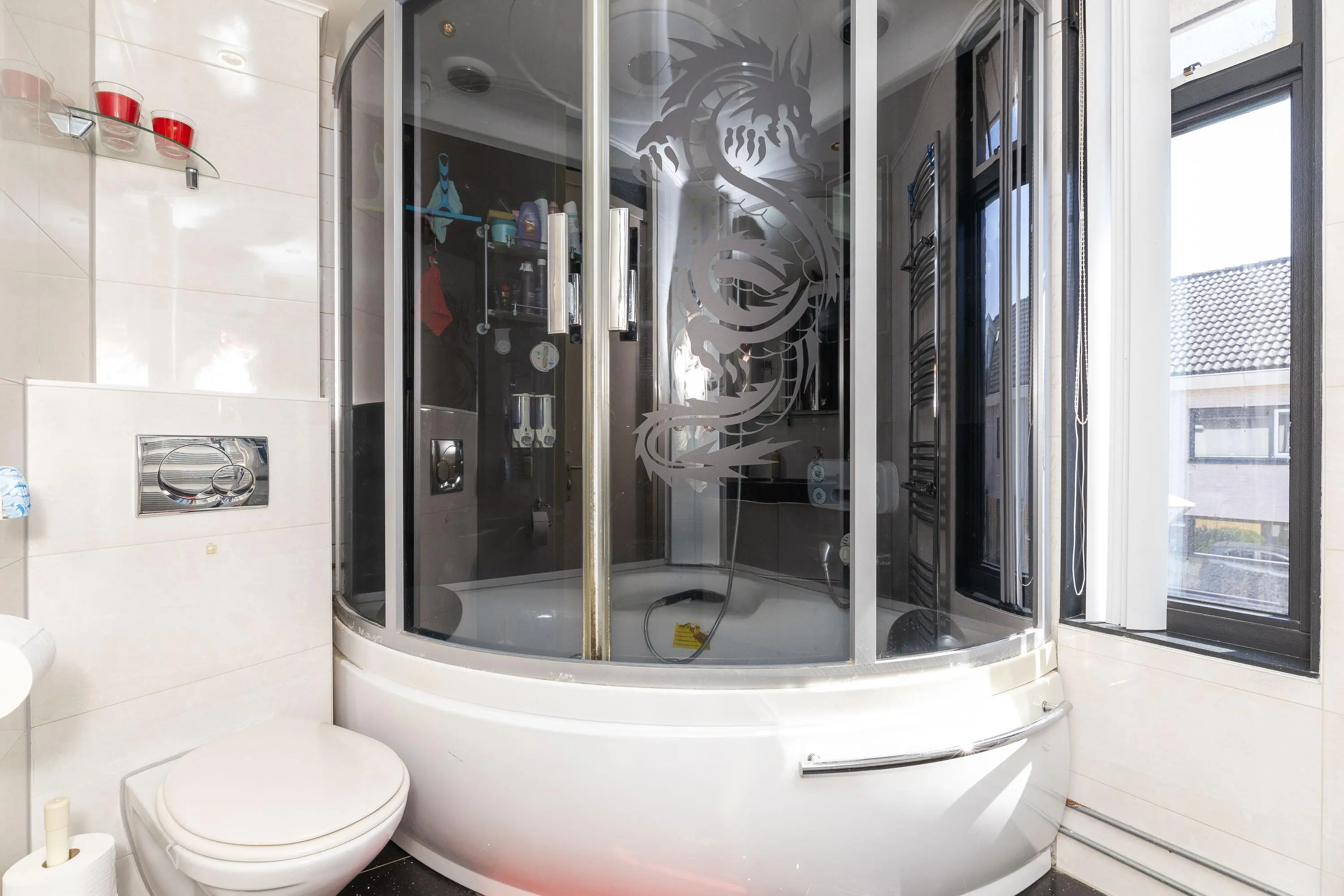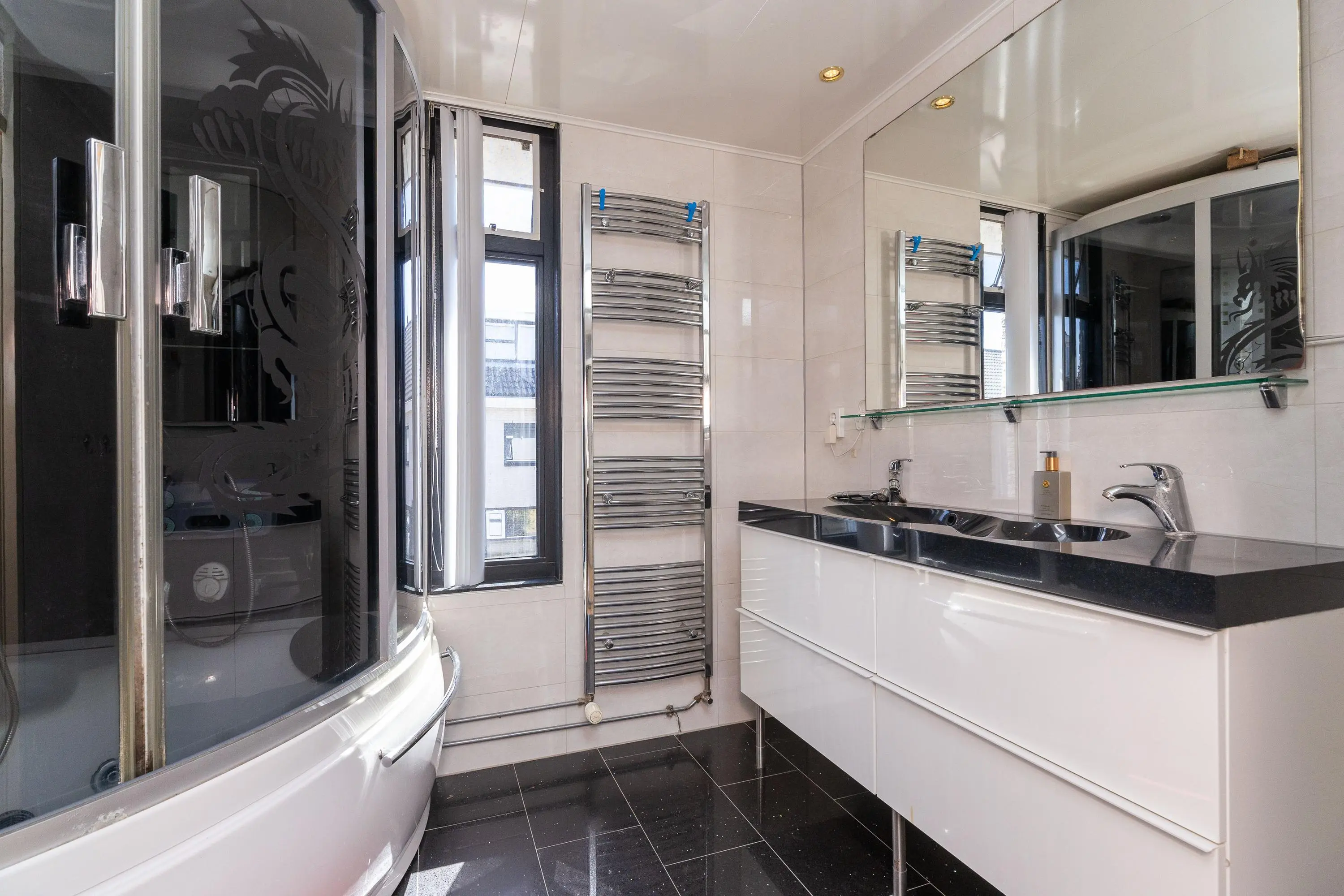 De overloop geeft toegang tot drie ruime slaapkamers, voorzien van elektrische rolluiken. Twee kamers liggen aan de achterzijde en één aan de voorzijde. De badkamer (2015) is voorzien van een whirlpool ligbad/douchecabine, dubbele wastafel, tweede toilet en een wandradiator. Compleet en comfortabel.