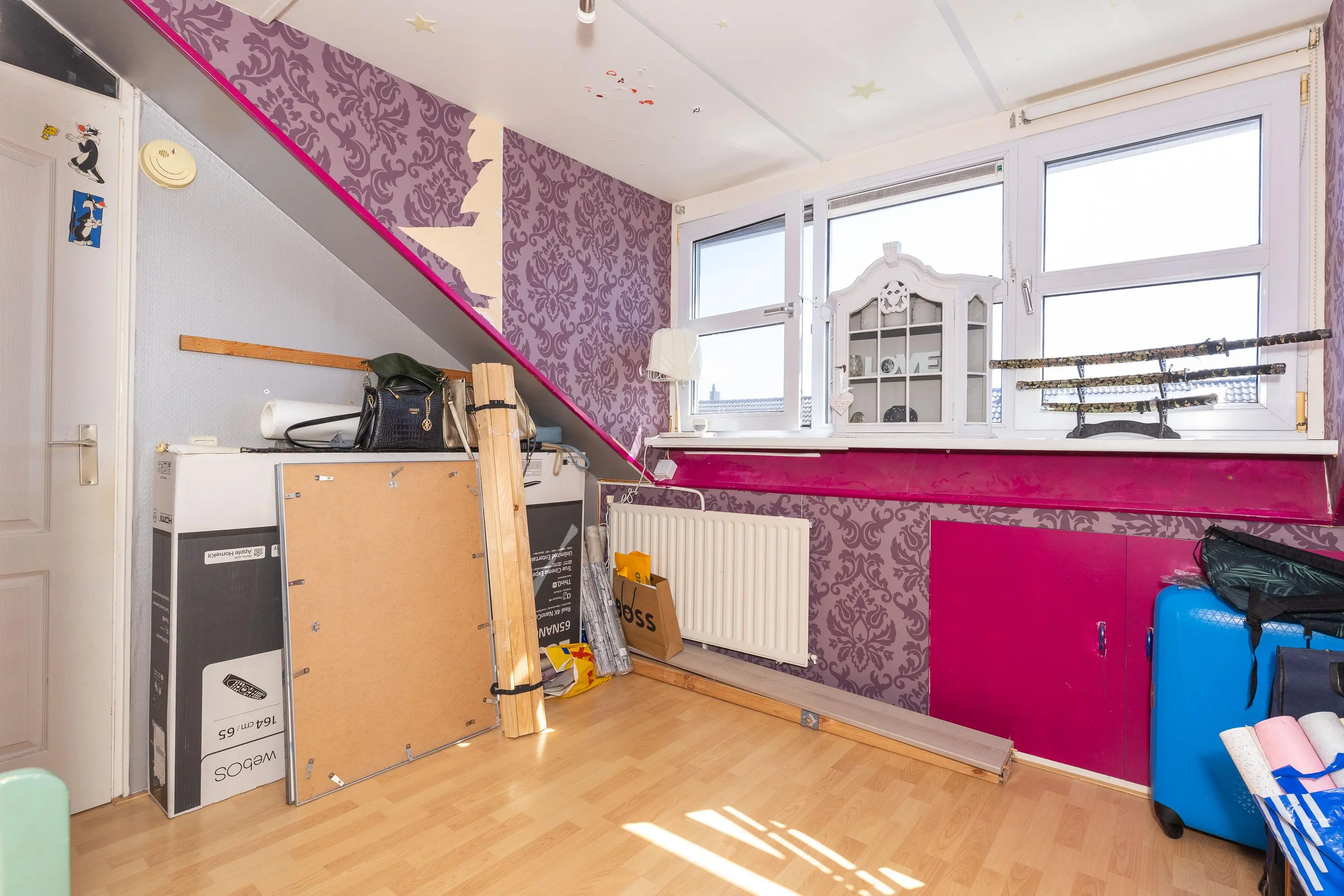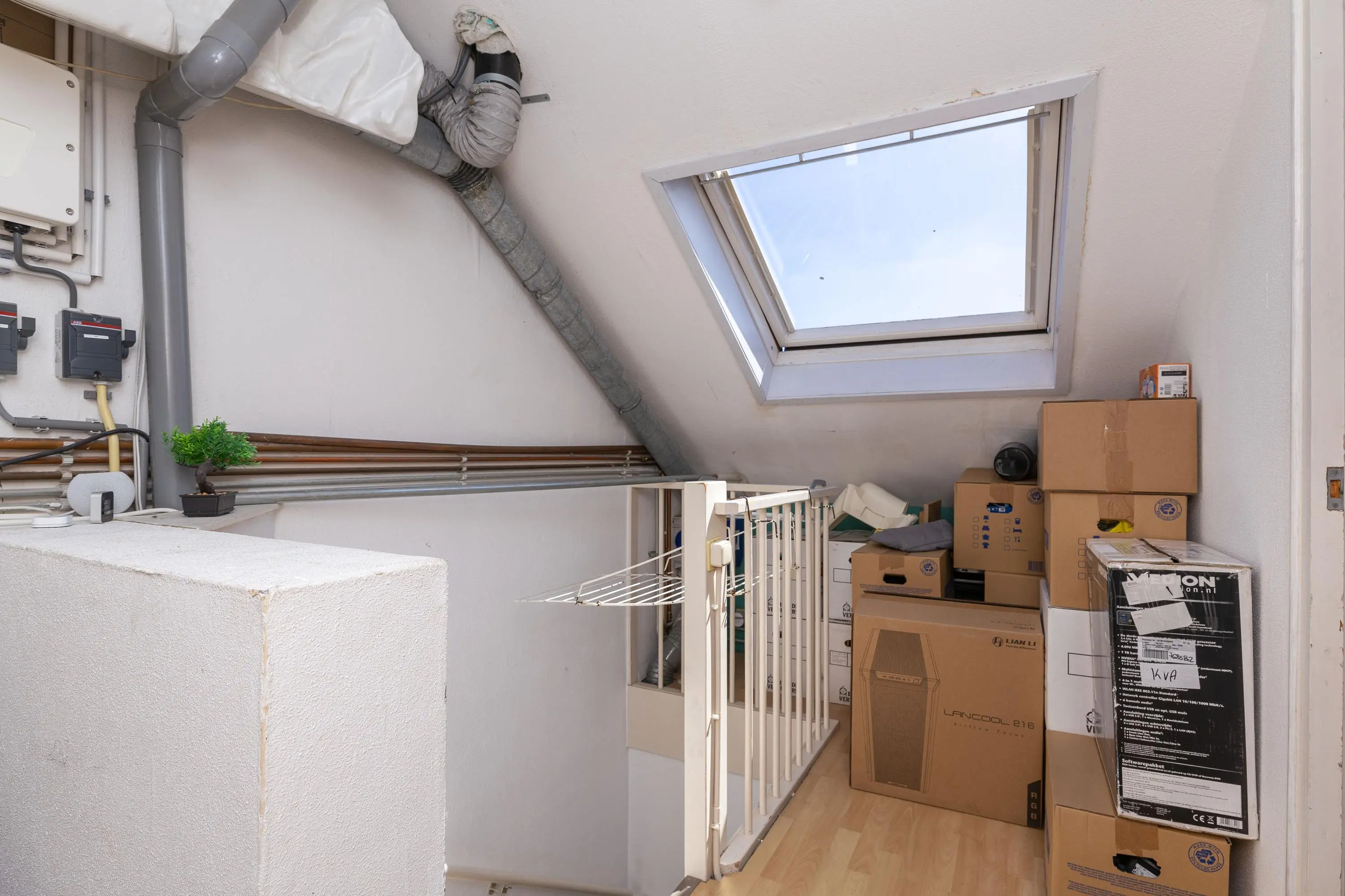 Dankzij de kunststof dakkapellen aan zowel de voor- als achterzijde is ook de tweede etage verrassend ruim en licht. Hier vindt u nog twee extra (slaap)kamers, ideaal voor kinderen, werken vanuit huis of hobby’s. Op de overloop is ruimte voor de cv-installatie, airconditioning, extra bergruimte, een dakraam aan de voorzijde (voorzien van rolluik), en dakraam aan de achterzijde.