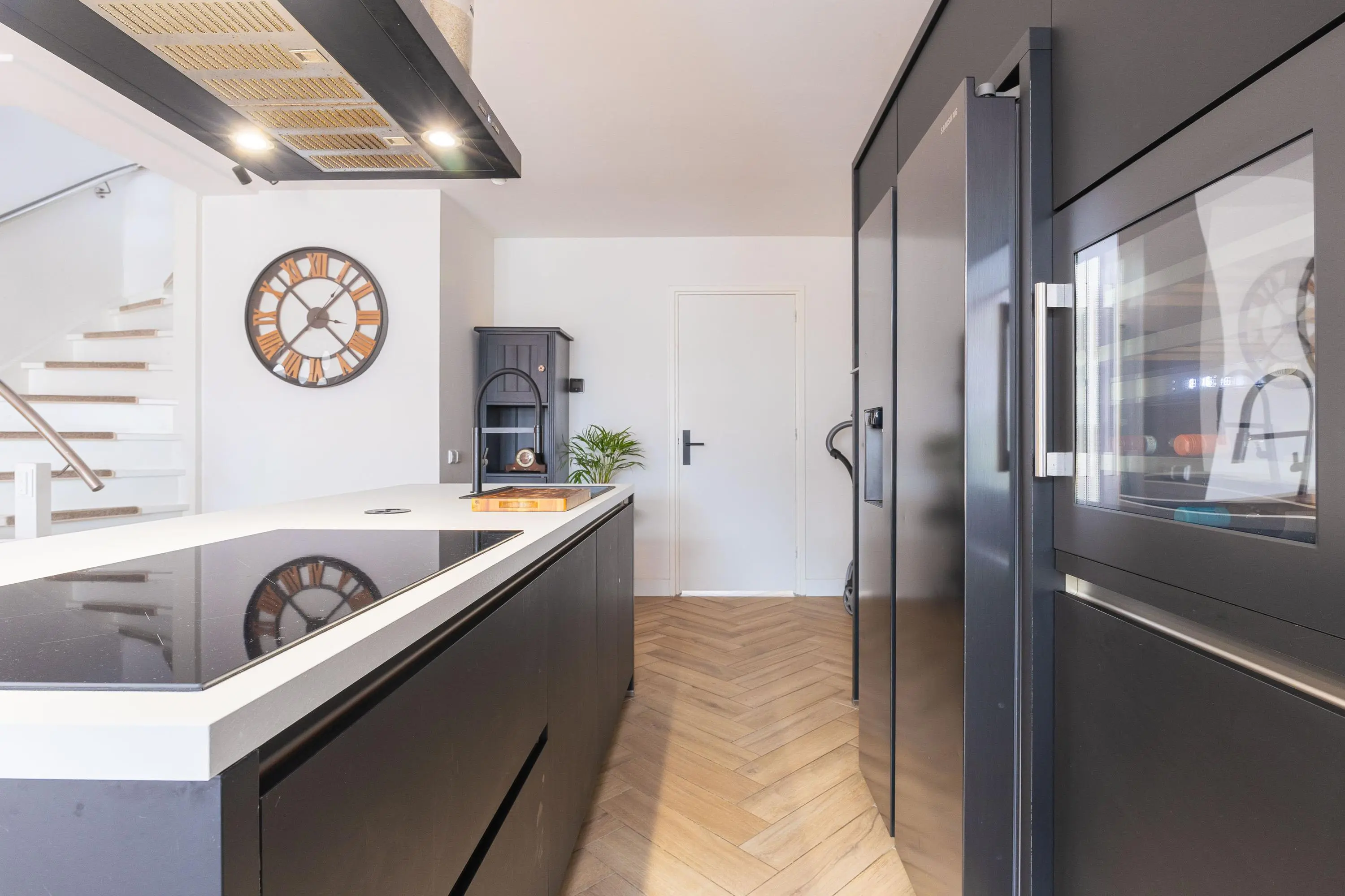 De royale, uitgebouwde leefruimte is werkelijk het hart van de woning. De prachtige visgraatvloer met vloerverwarming zorgt voor comfort en uitstraling. De schitterende open woonkeuken met kookeiland is een droom voor iedere hobbykok. Voorzien van diverse inbouwapparatuur en een wijnkoeler is dit dé plek om uitgebreid te koken en te genieten met vrienden en familie.