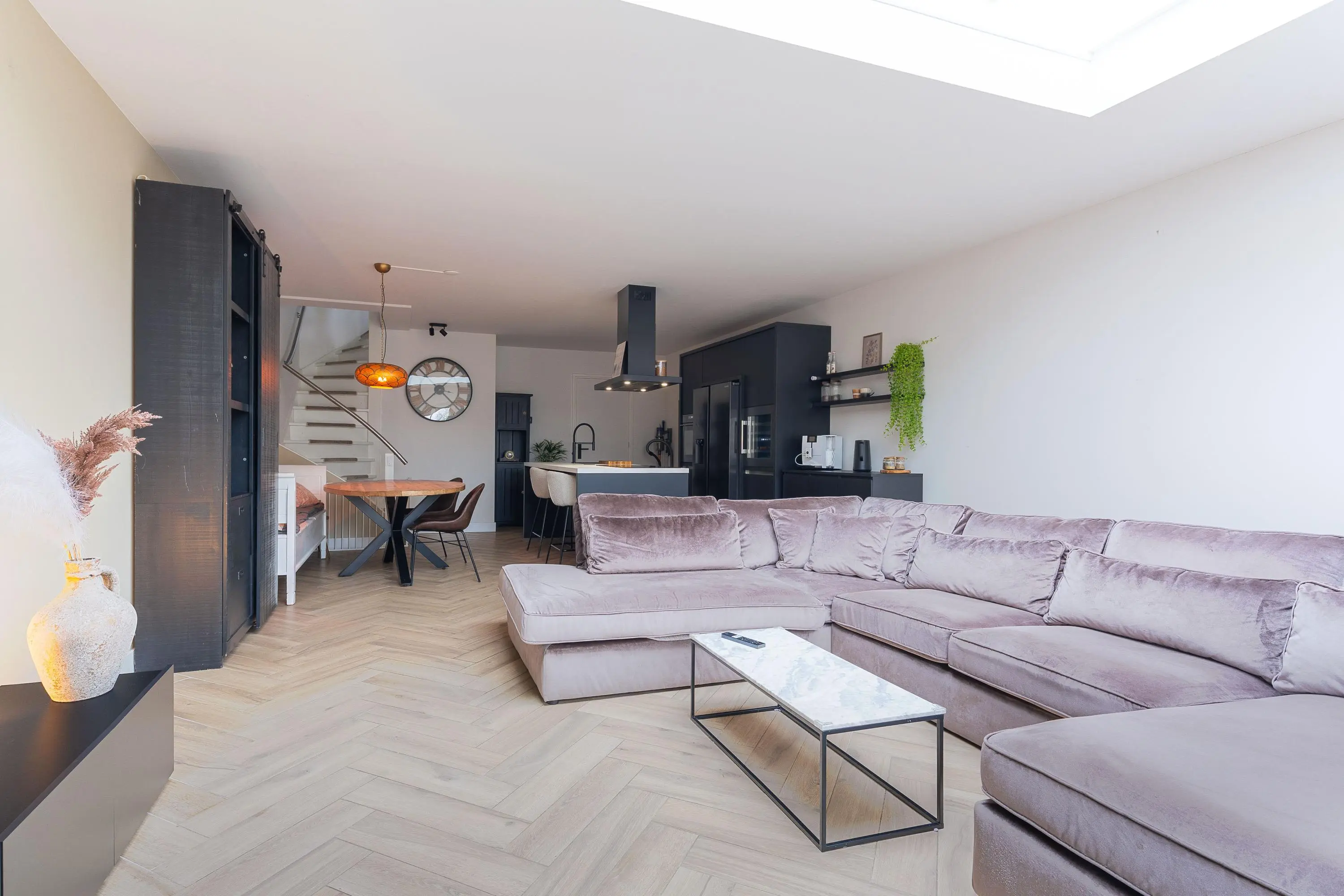 Wat een plaatje! Deze prachtig uitgebouwde woning combineert ruimte, luxe en sfeer op een fantastische manier. Dankzij de grote lichtstraat en openslaande deuren geniet je hier van een uitzonderlijke lichtinval en een perfecte verbinding tussen binnen en buiten.