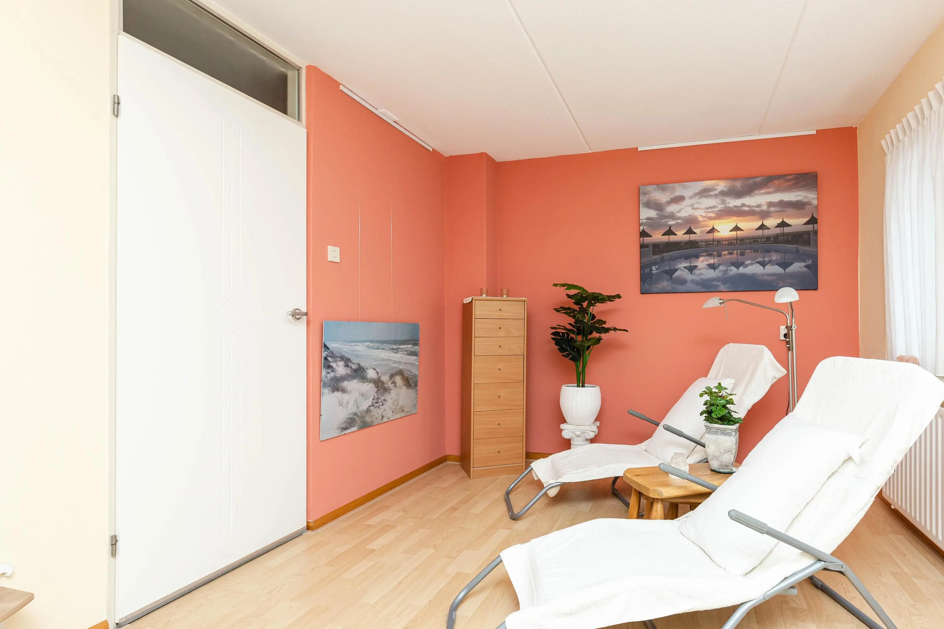 Bijvoorbeeld: kantoor aan huis, atelier, leslokaal, kap-/schoonheidssalon enz…ook een extra slaapkamer, een eigen plek voor inwonende ouder of puber behoort tot de mogelijkheid. Aansluitend heeft de aanbouw een ruime badkamer met ligbad, toilet en wastafel. En dat alles met een eigen ingang.