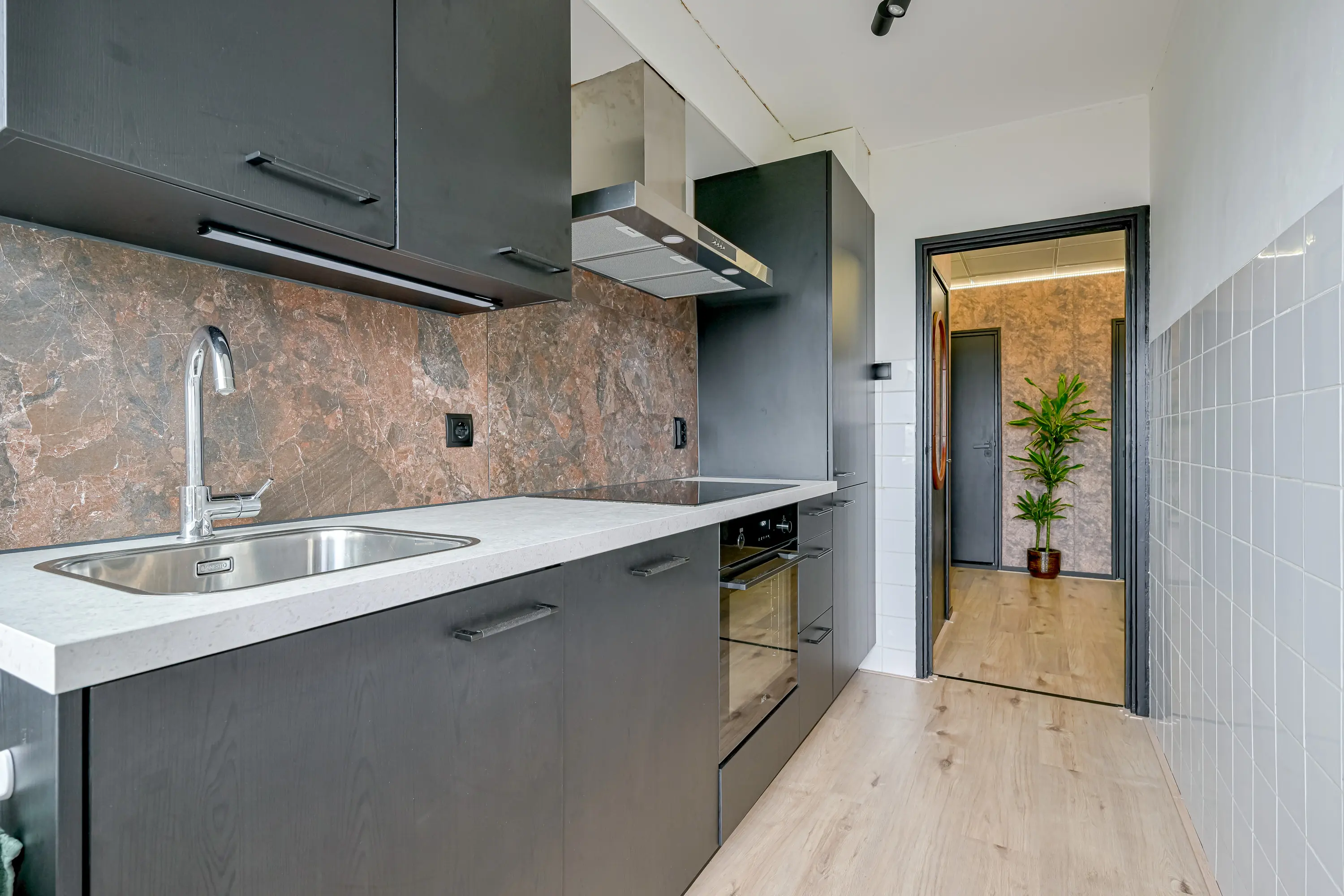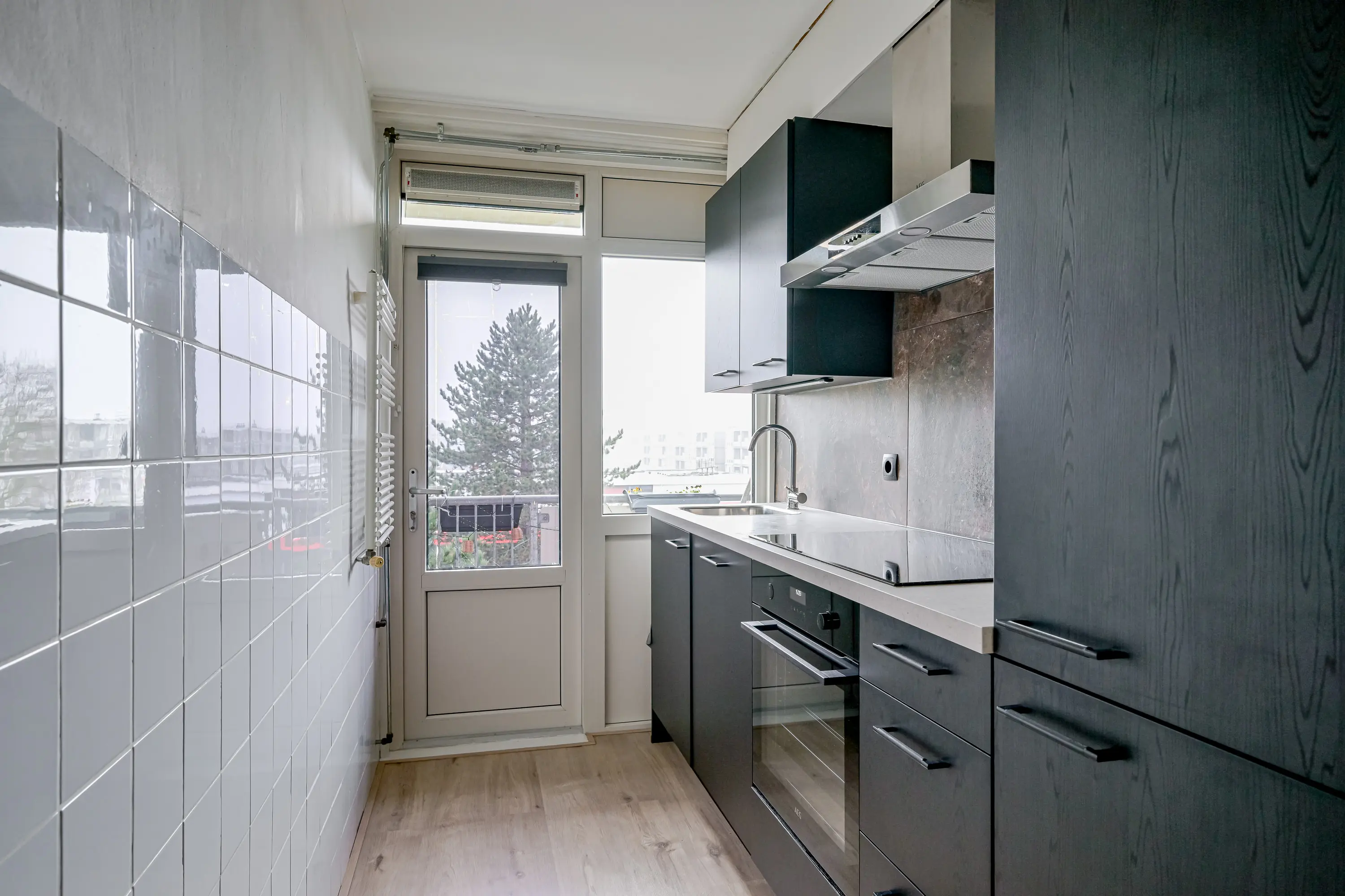 De keuken is geplaatst in 2025 en dus zo goed als nieuw! Door de zwarte uitvoering met een licht aanrechtblad is dit een echte eyecatcher. Het ontbreekt u hier werkelijk een niets. Zo heeft u de beschikking over een oven, koel-vriescombinatie, inductiekookplaat, en een vaatwasser. De keuken is zo nieuw dat daar nog volop garantie op zit. Vanuit de keuken heeft u via een deur toegang tot het zonnige balkon op westen. Hier wordt koken een plezier!