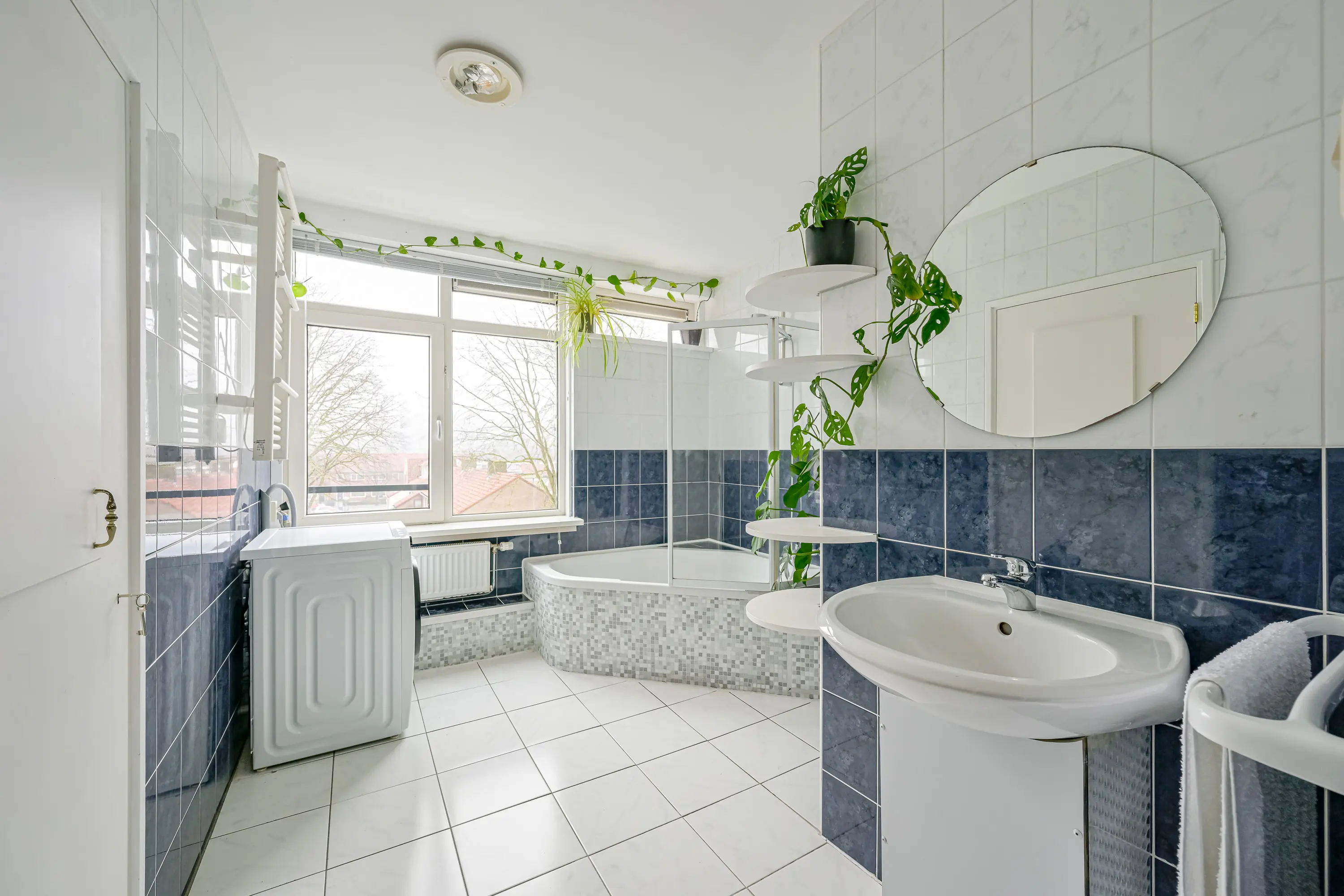 De badkamer is gewoon groot te noemen en beschikt over alles wat u nodig heeft. Denk hierbij aan een bad met douche en een wastafel met meubel. Ook zijn hier aansluitingen aanwezig voor wasmachine en droger. Omdat hier ook een raam aanwezig is kunt u deze ruimte goed ventileren. Dat is prettig.