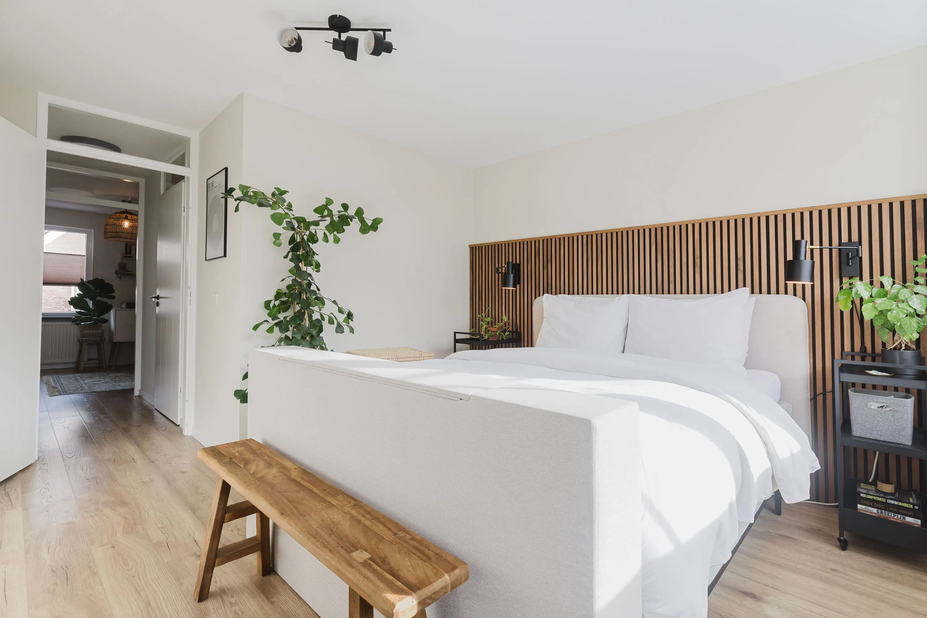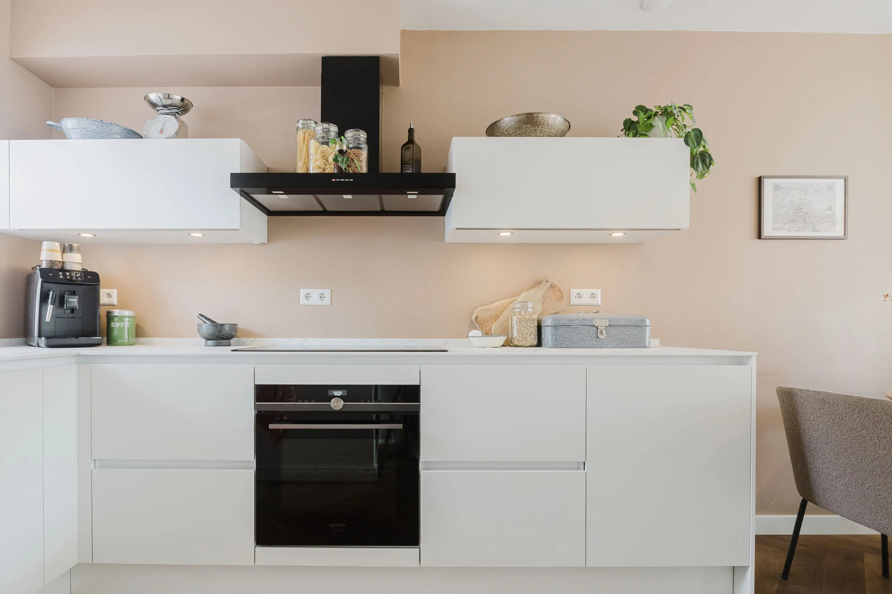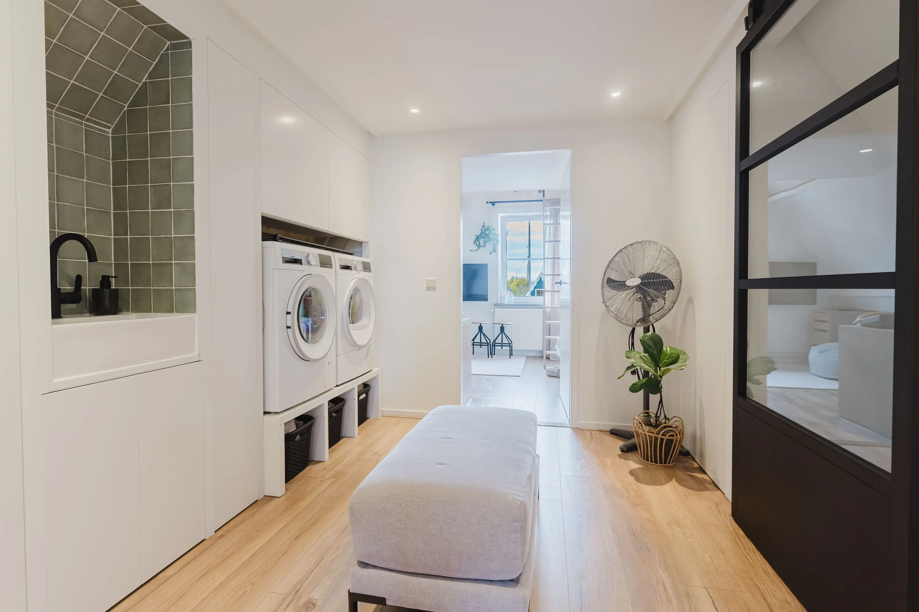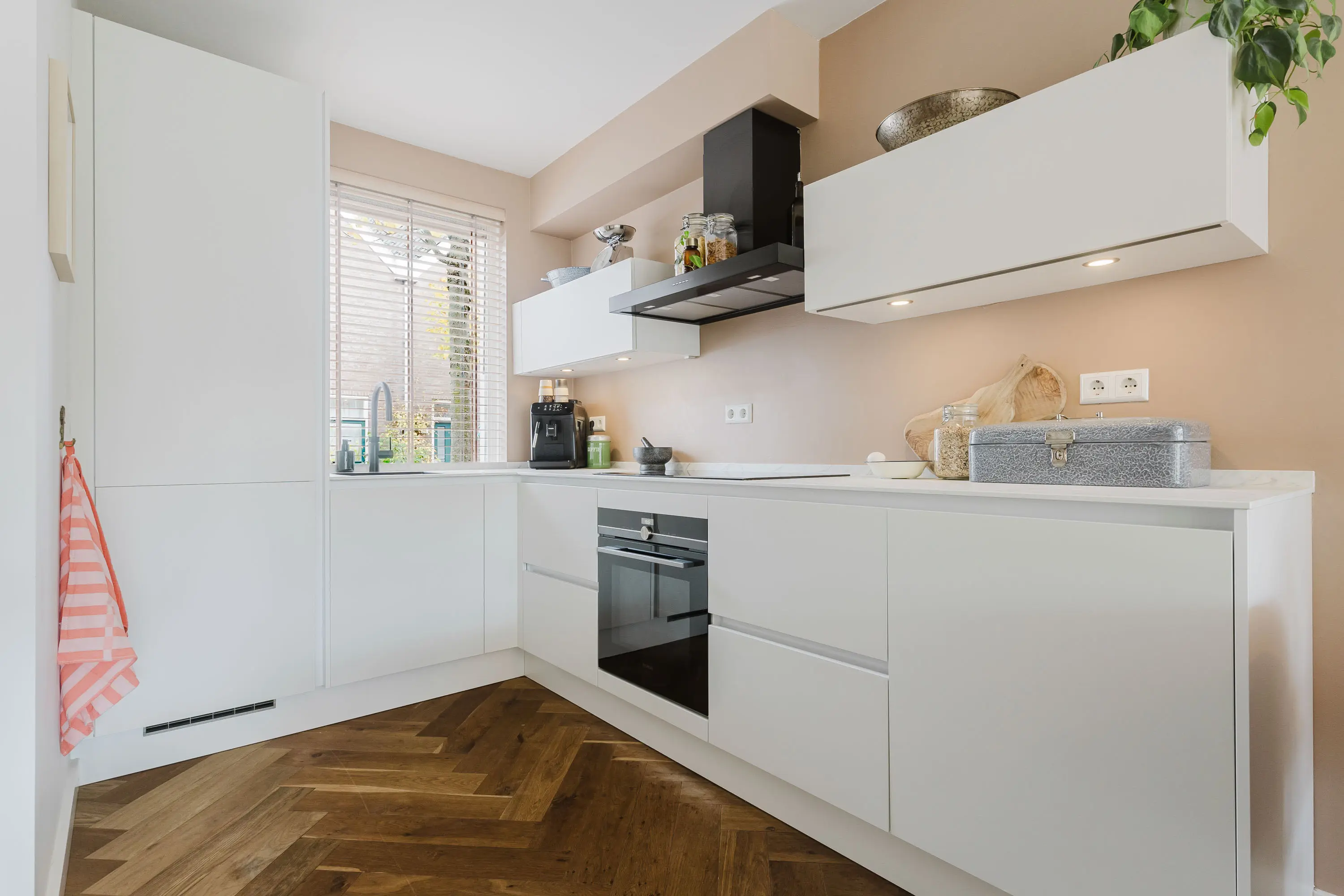 De open keuken (vernieuwd in 2021) is een echte eyecatcher: strak wit met een warme accentmuur, uitgerust met o.a. een Quooker, inductiekookplaat, vaatwasser, koel-vriescombinatie, afzuigkap en oven. Alles wat je nodig hebt om met plezier te koken!