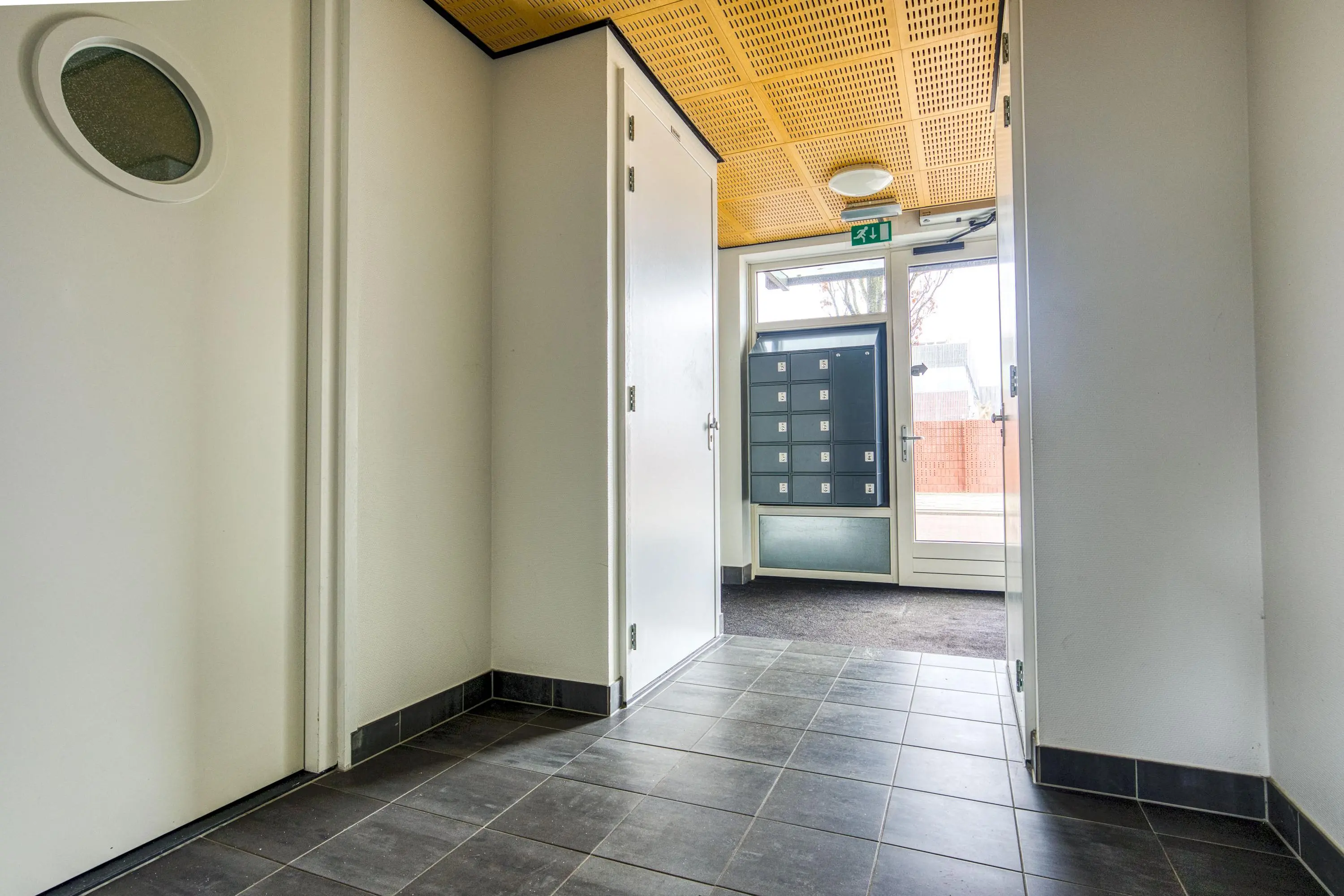 Centrale entree met trappenhuis. Hier bevindt zich ook de privéberging, ideaal voor fietsen, motor of extra opslag.
