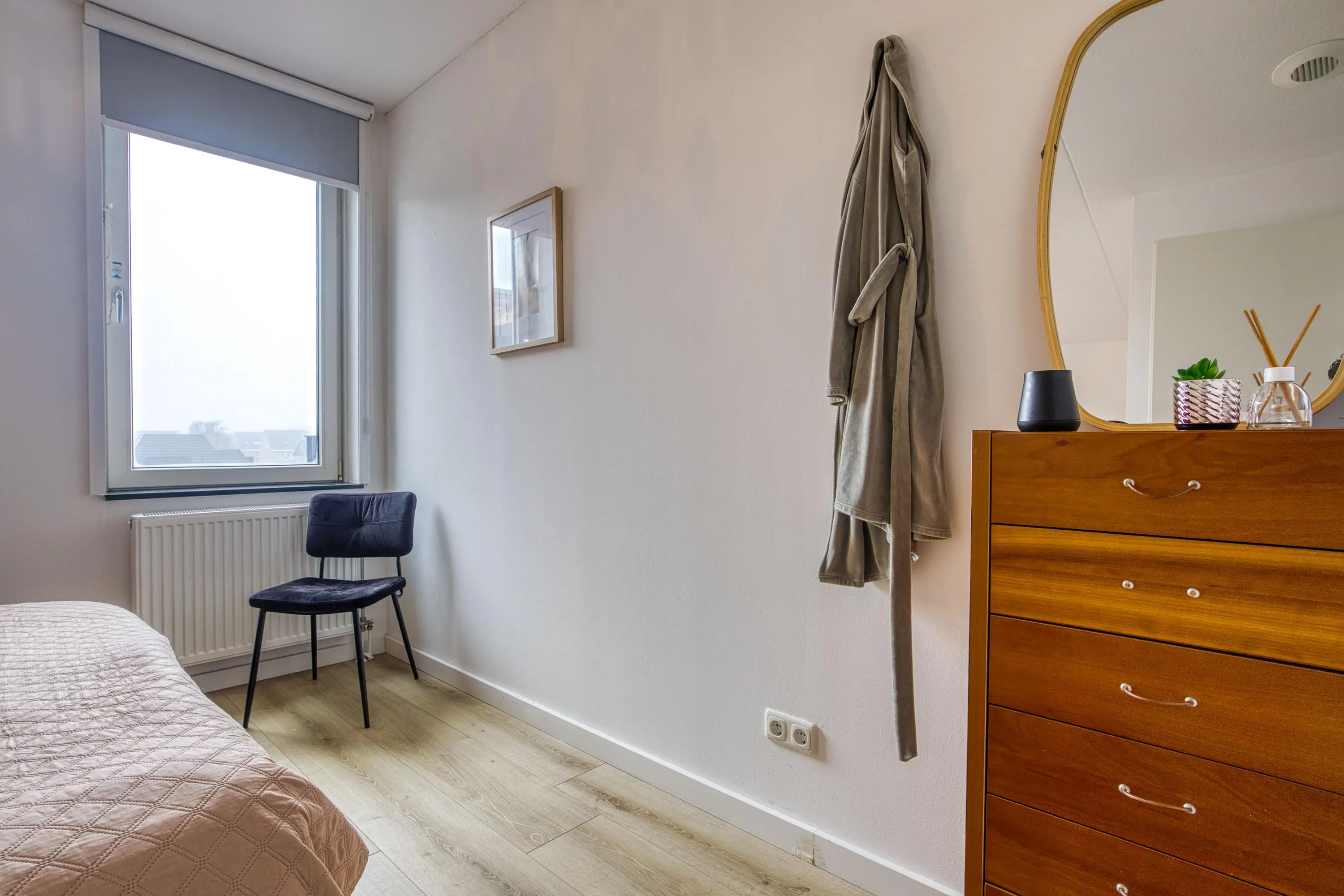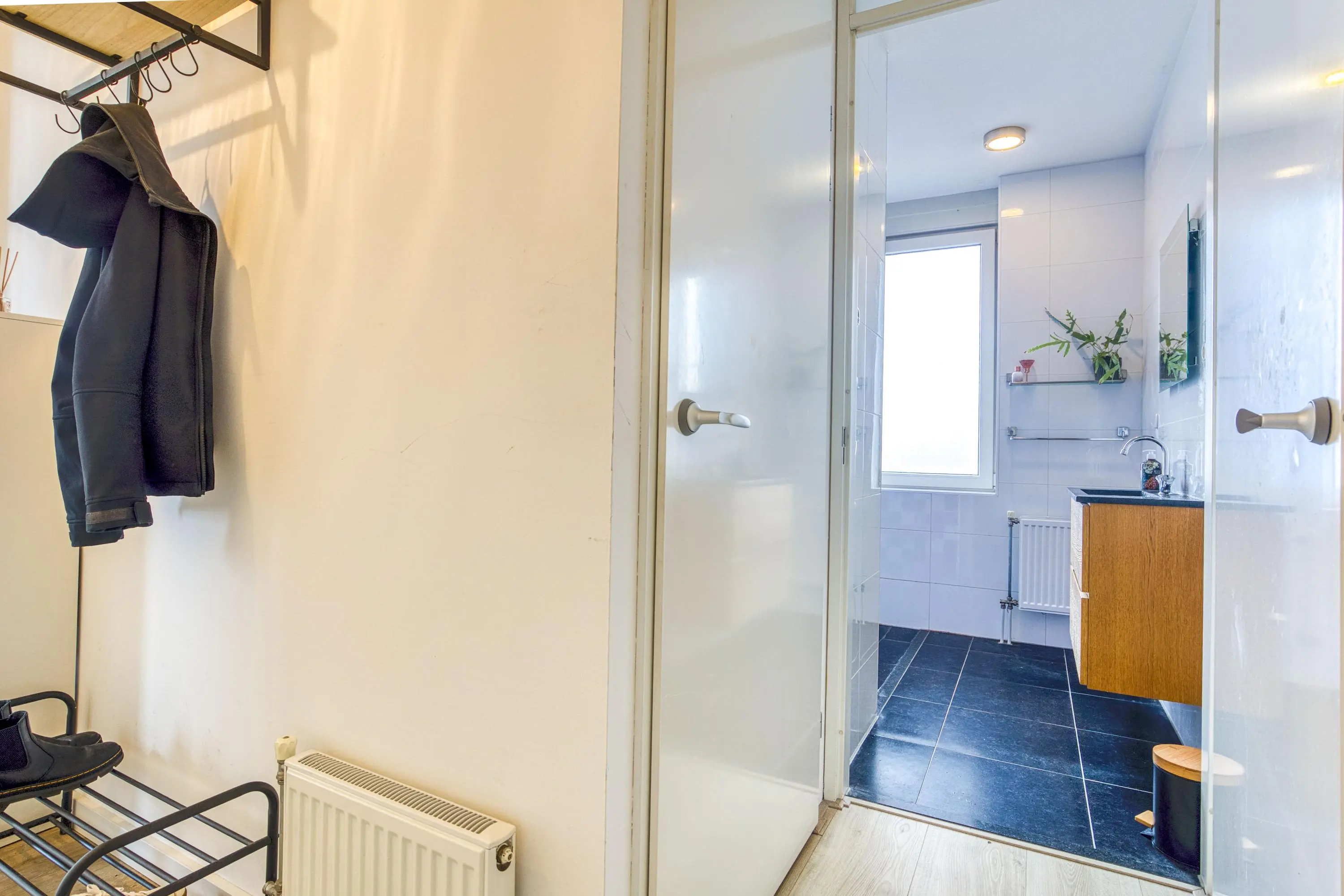 Bij binnenkomst valt meteen de ruime hal op, die toegang biedt tot alle vertrekken. Er is een separaat toilet, een technische ruimte én een handige was-/kledingkamer. Verder is er een comfortabele slaapkamer en een moderne badkamer voorzien van wastafelmeubel, inloopdouche en vloerverwarming.