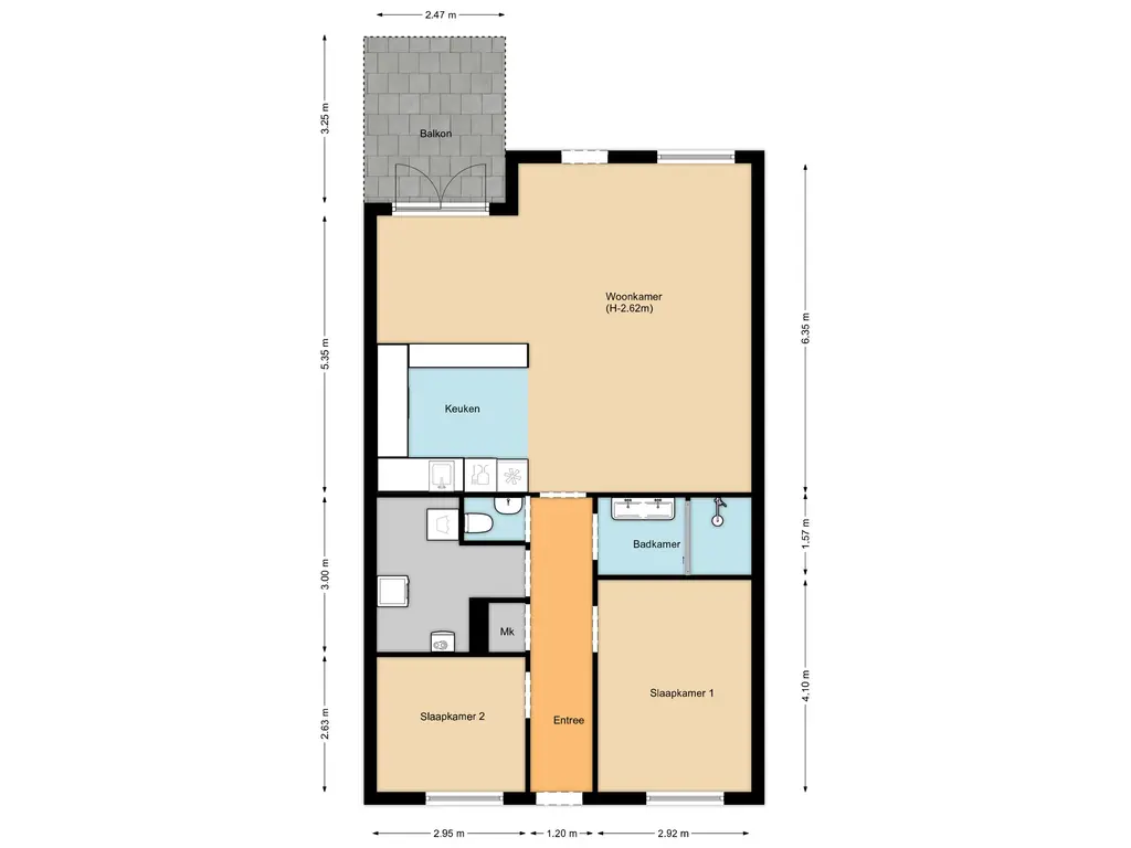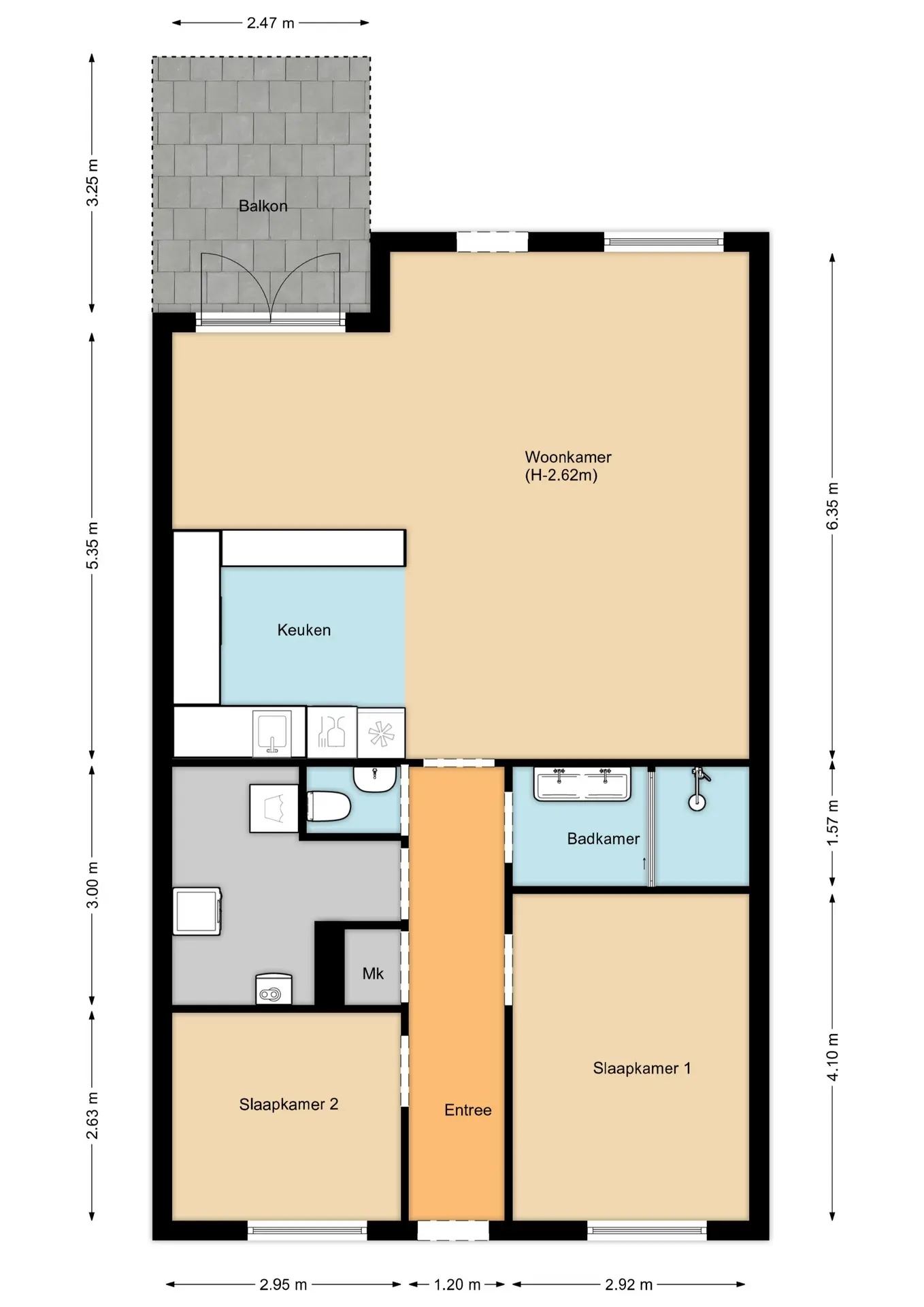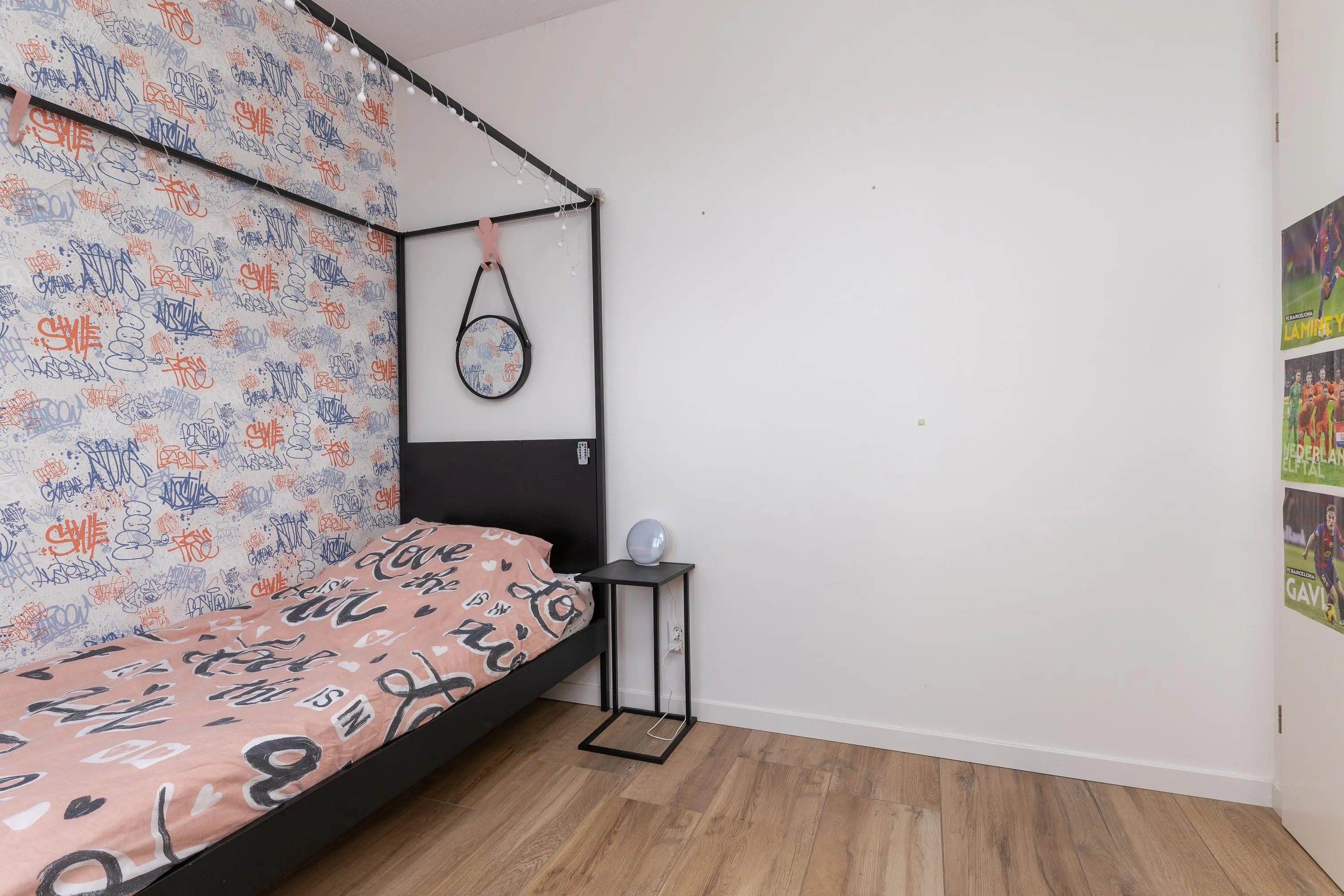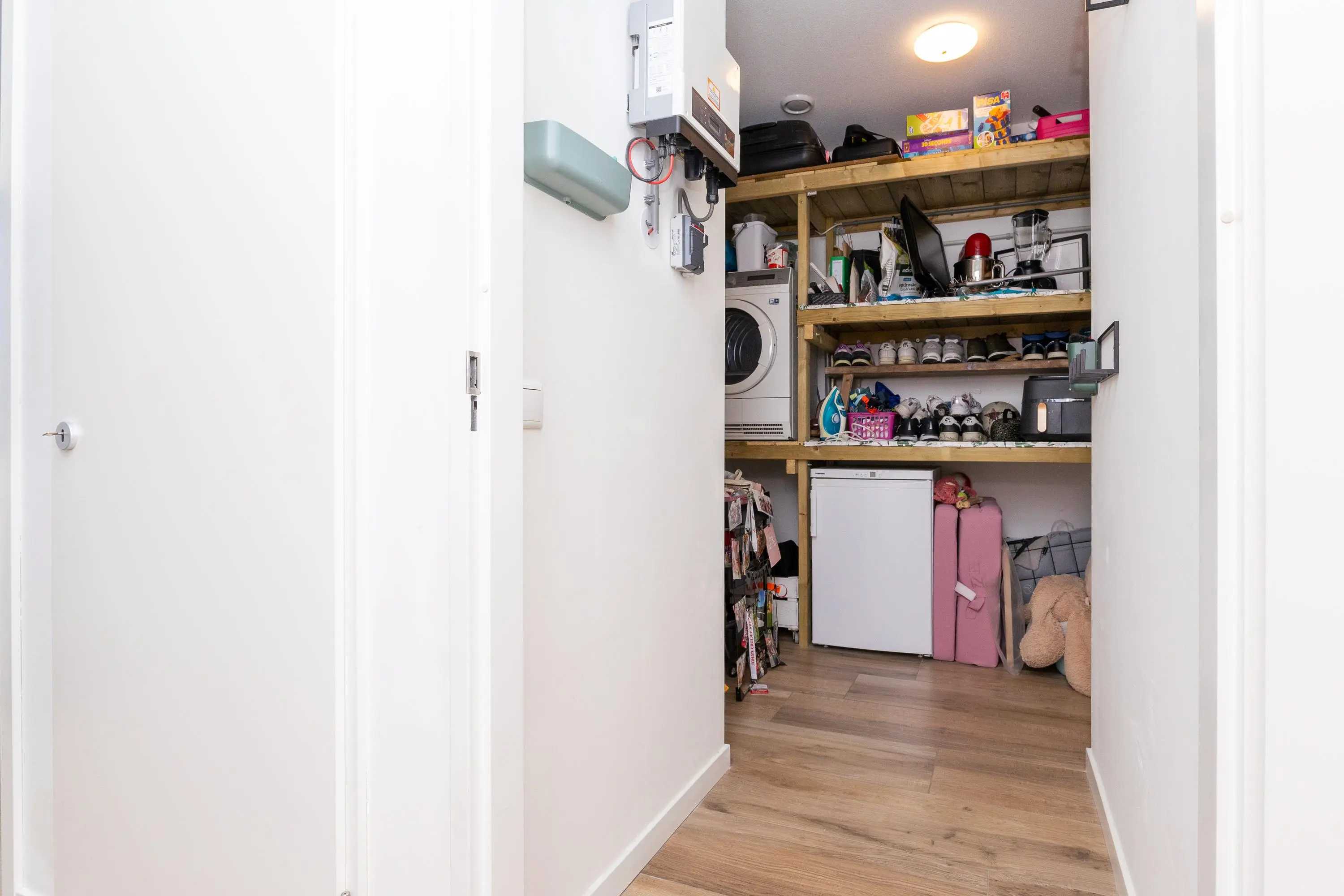 Het appartement beschikt over twee goed bemeten slaapkamers en een stijlvolle badkamer met inloopdouche en wastafelmeubel. Verder vind je een separate toiletruimte en een technische ruimte met de cv-installatie en wasmachineaansluiting.