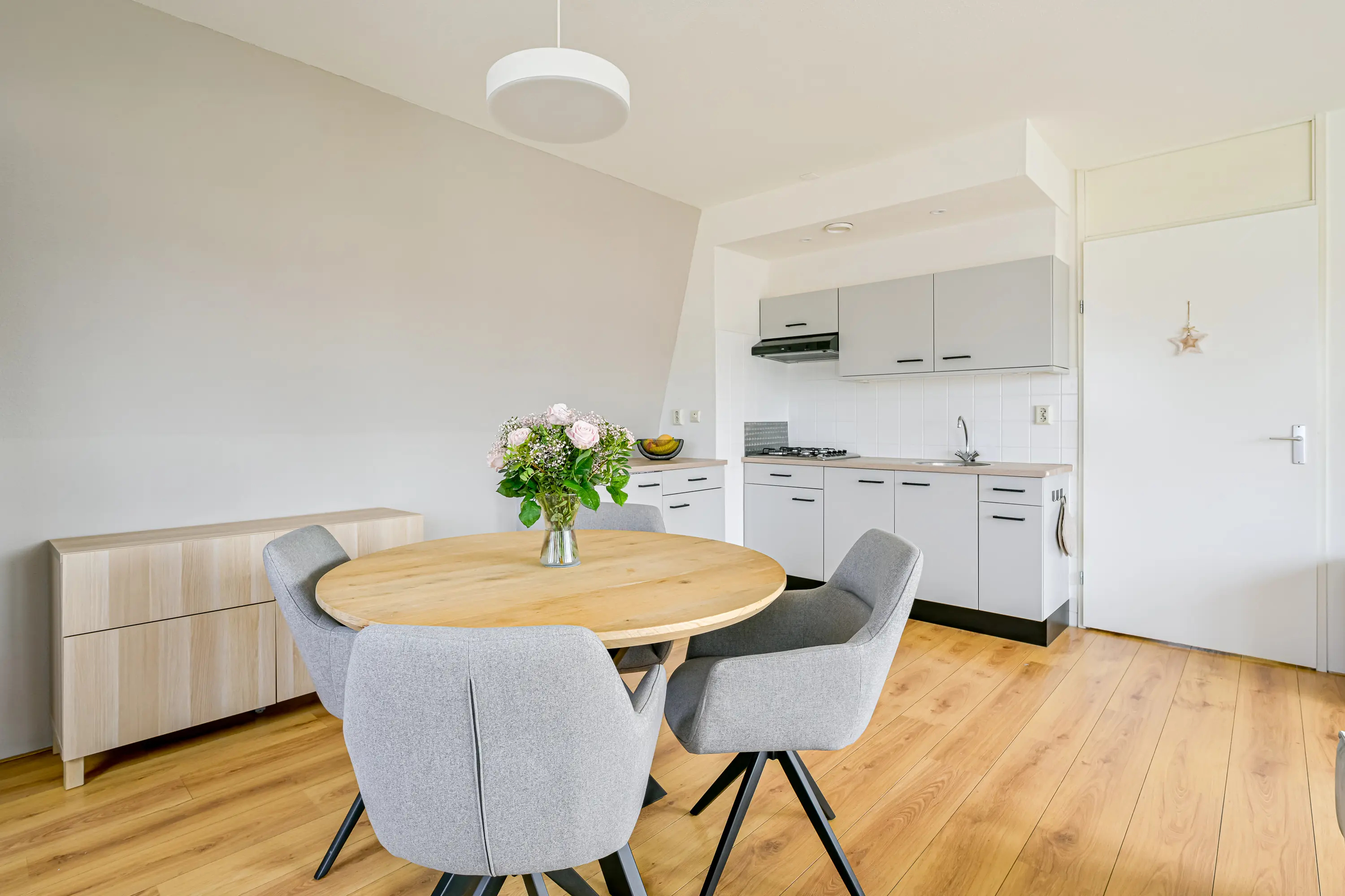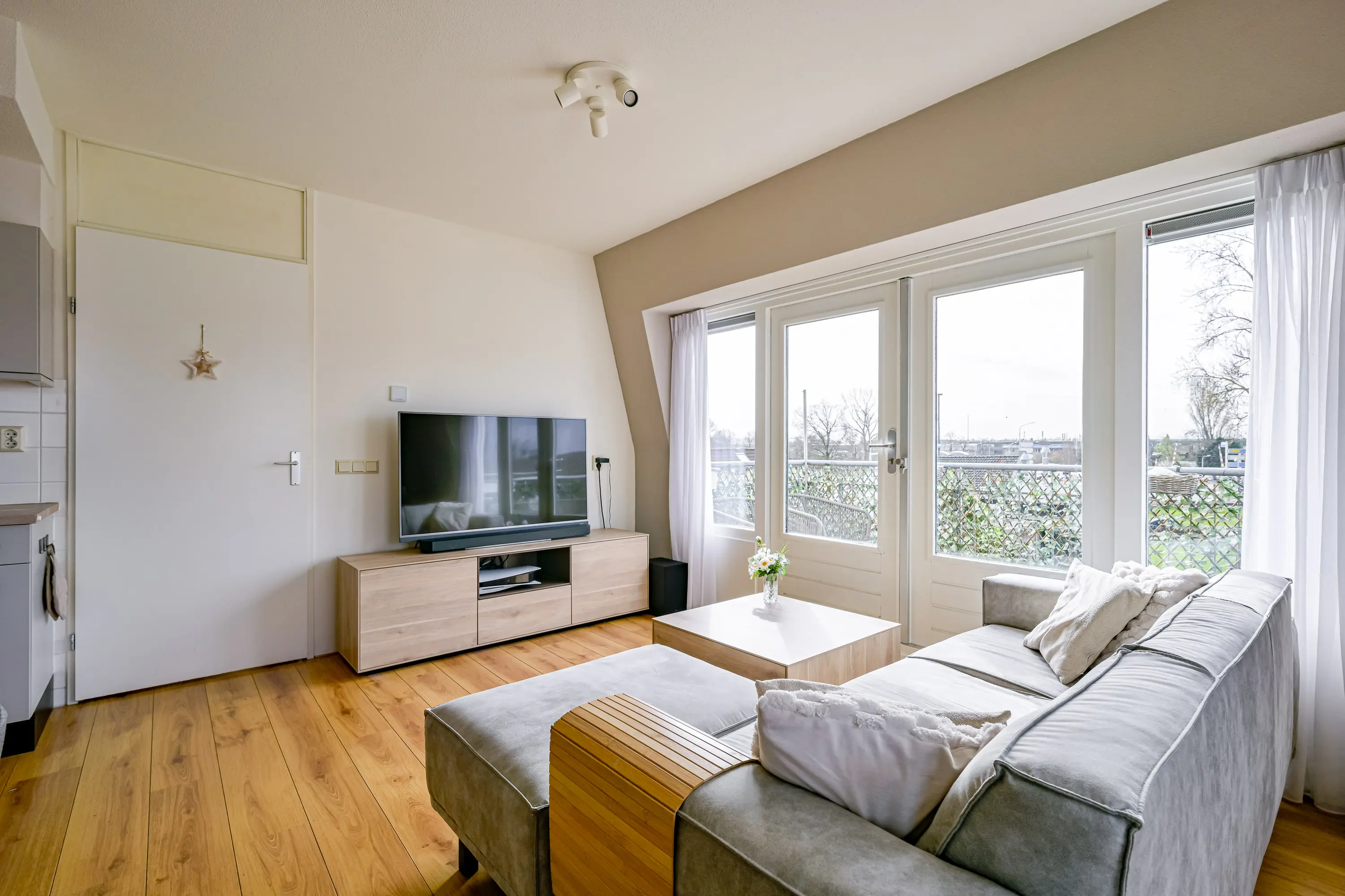De woonkamer met openkeuken is ruim en door de diverse raampartijen is het hier heerlijk licht. Vanuit de woonkamer heeft u toegang tot het zonnige balkon op het zuiden. Het balkon is ruim en heeft voldoende plek om met meerdere personen te genieten van het zonnetje. Echt heel prettig!