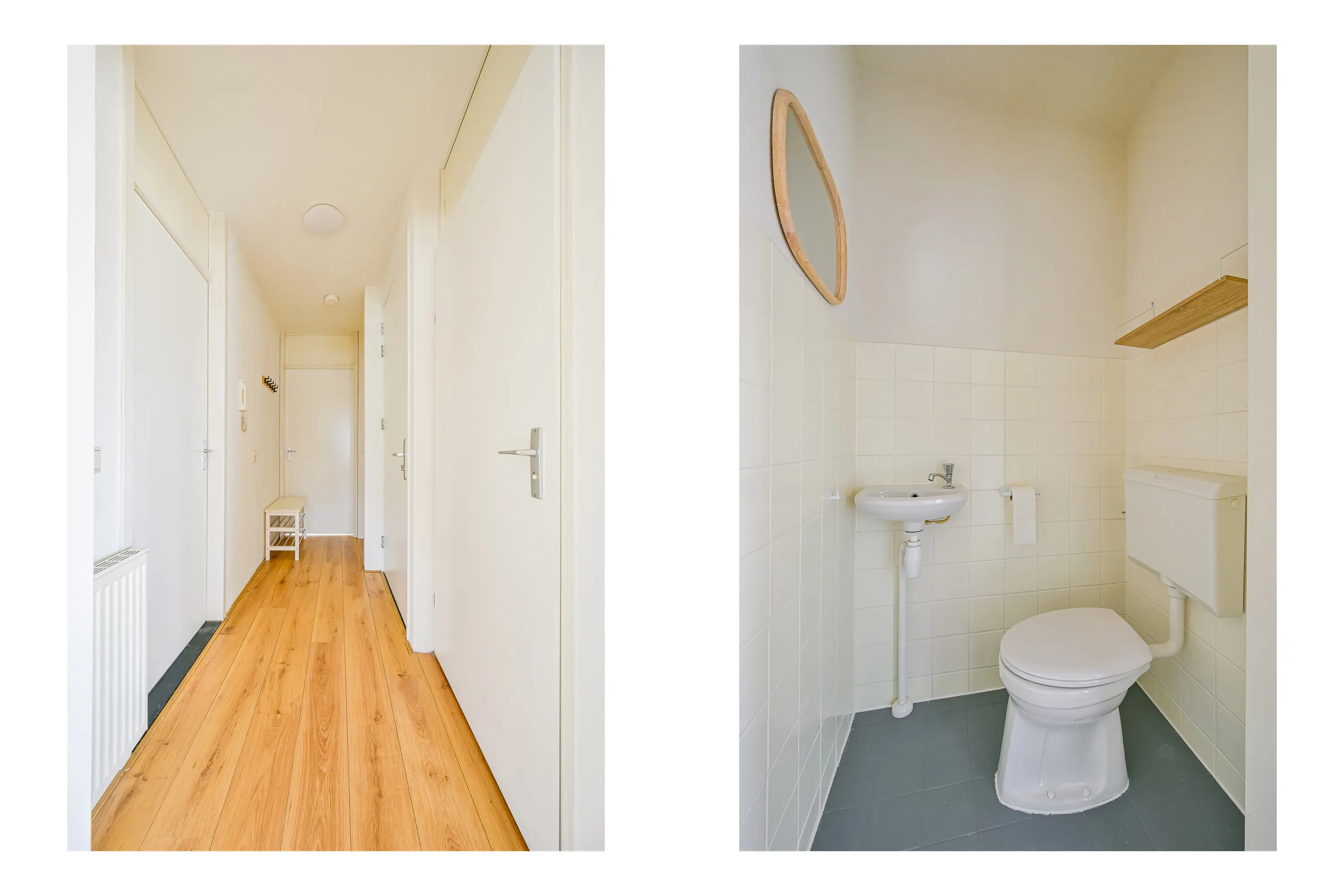 Het appartement beschikt over twee slaapkamers. De grootse slaapkamer is voorzien van een diepe inbouwkast wat natuurlijk erg prettig is. Ook de slaapkamers zijn beide voorzien van een laminaatvloer en strakke wandafwerking. De grote ramen geven deze slaapkamers veel lichtinval.