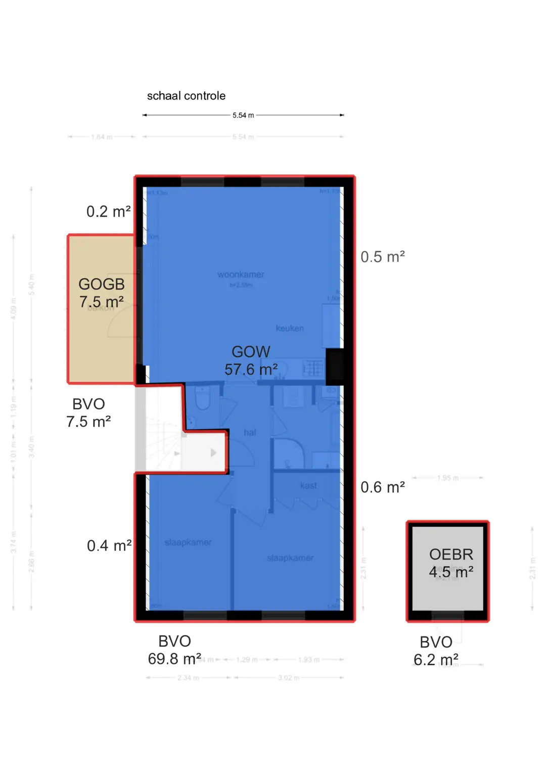 Met bijna 58 vierkante meter gebruiksoppervlakte is dit echt een appartement met voldoende ruimte. Vanuit de entree van het complex bereikt u via de trap de voordeur van nummer 76B.