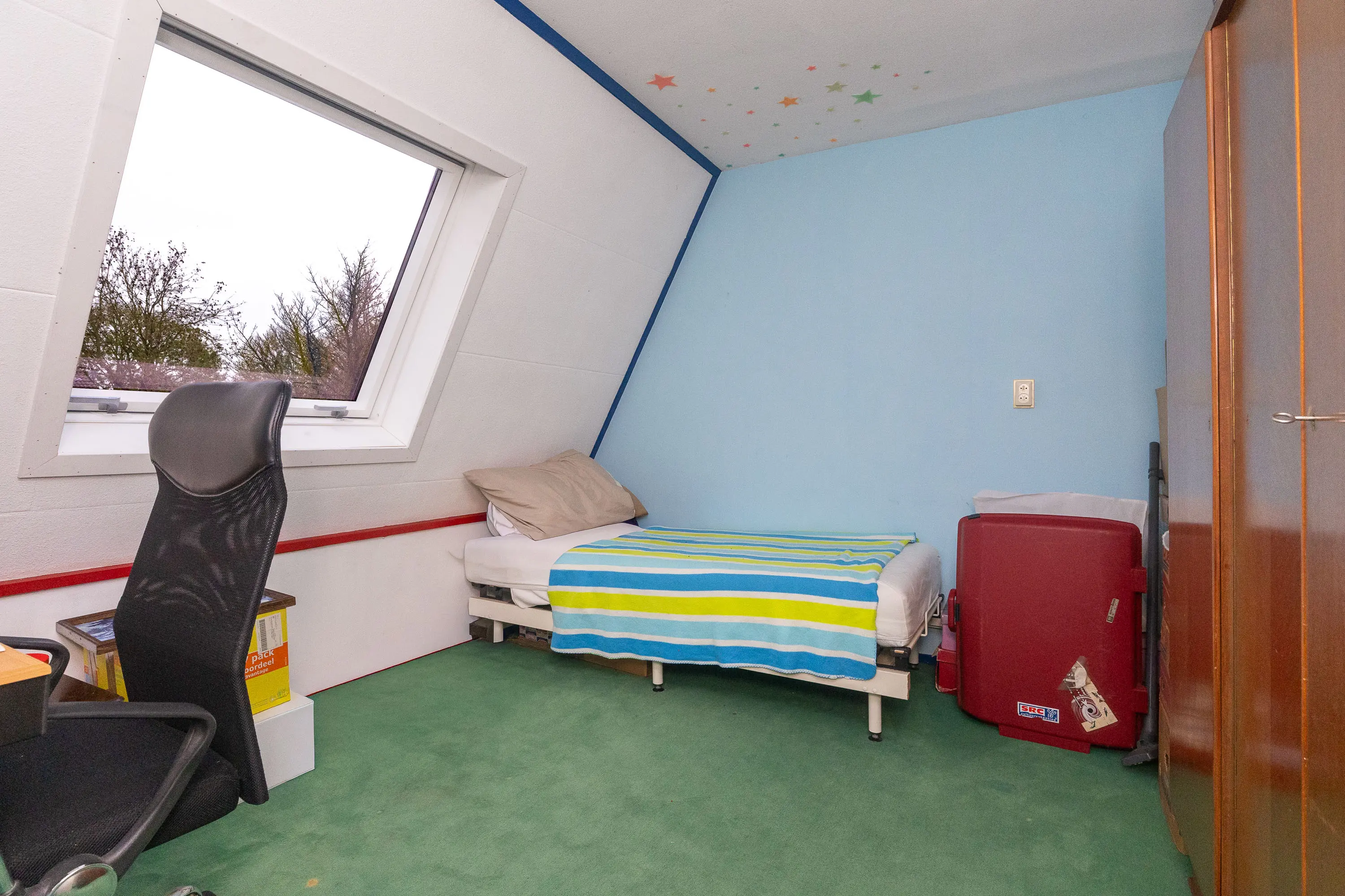 Op de zolderverdieping vindt je een ruime vierde slaapkamer met dakraam en bergruimte, perfect als werkplek, hobbykamer of logeerkamer.