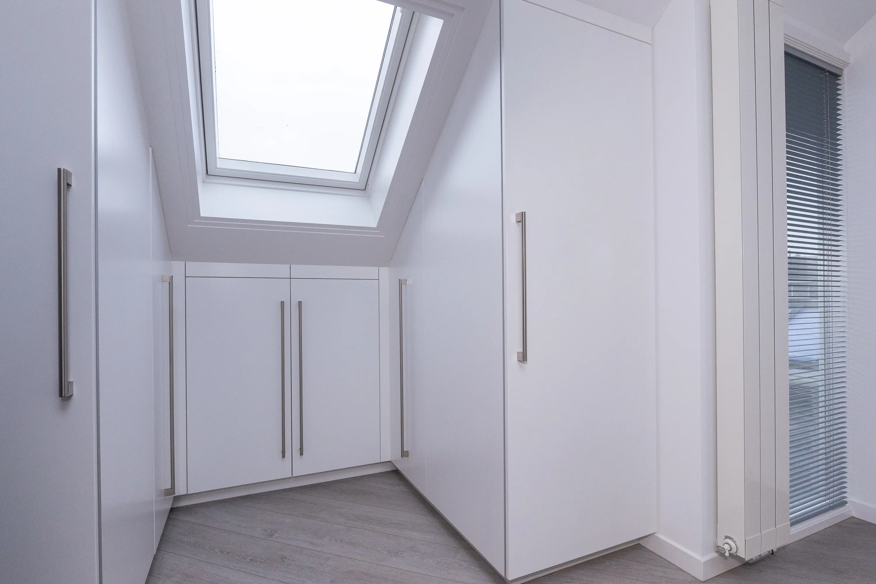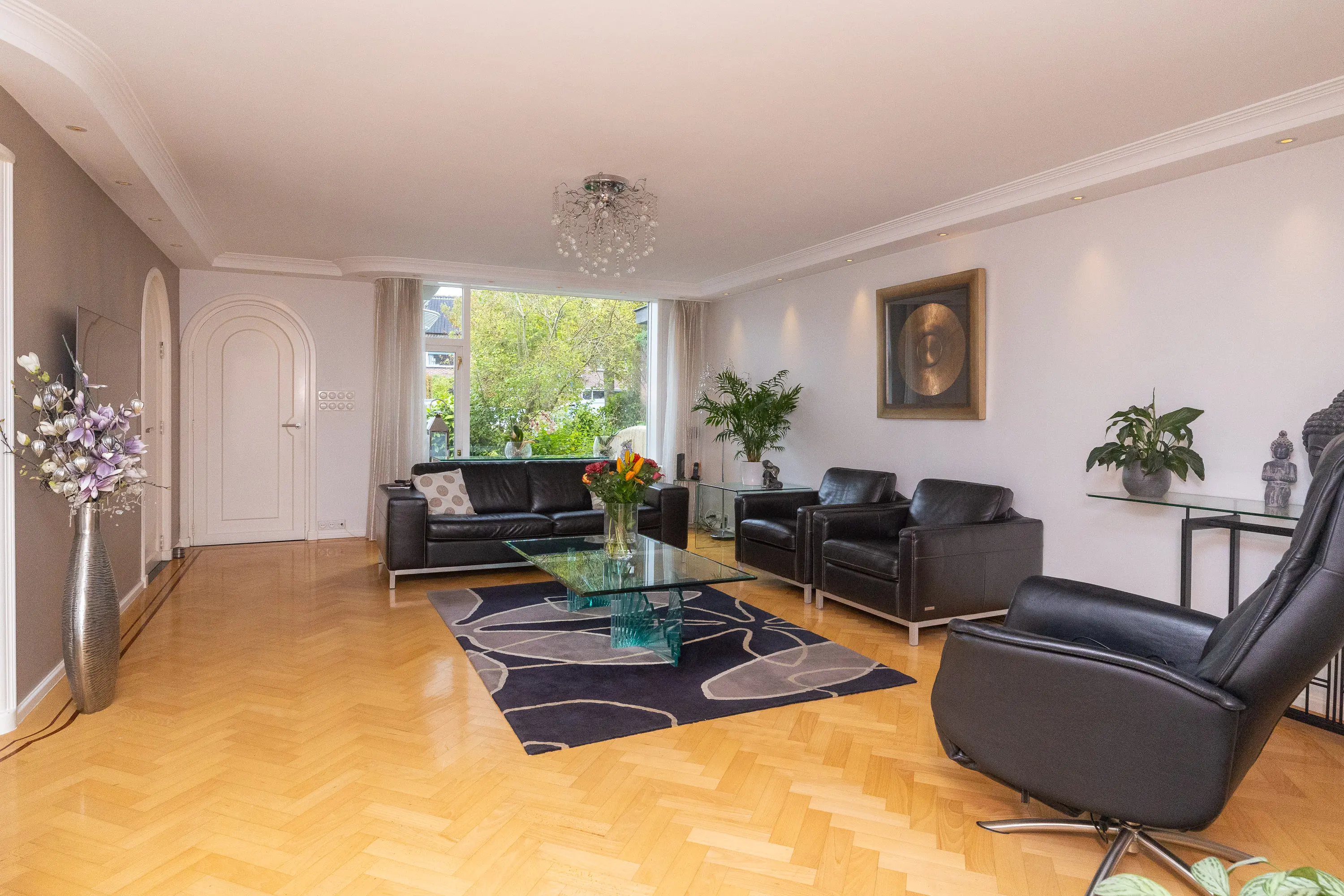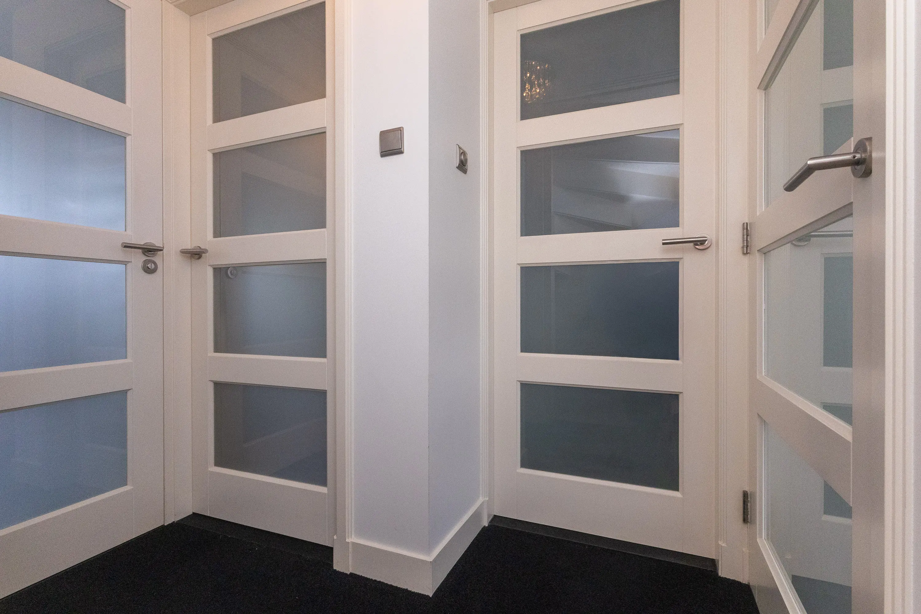 Overal in de woning komen de architectonische ronde vormen terug. Beginnend bij de statige entree aan de voorzijde, zowel in de woning, in het op maat gemaakte meubel, de ronde vormen in de afwerking, de deuren van de kasten, de keuken, de achterdeur en zelfs in de kozijnen. Alles ademt stijl, karakter en een uniek gevoel van harmonie.