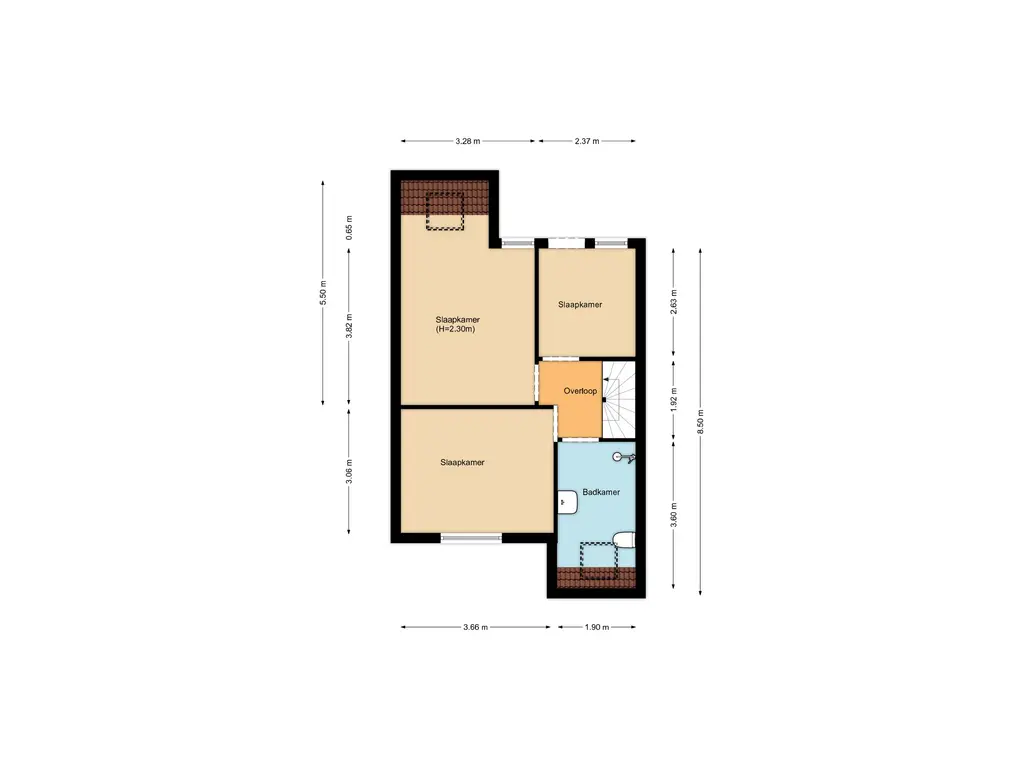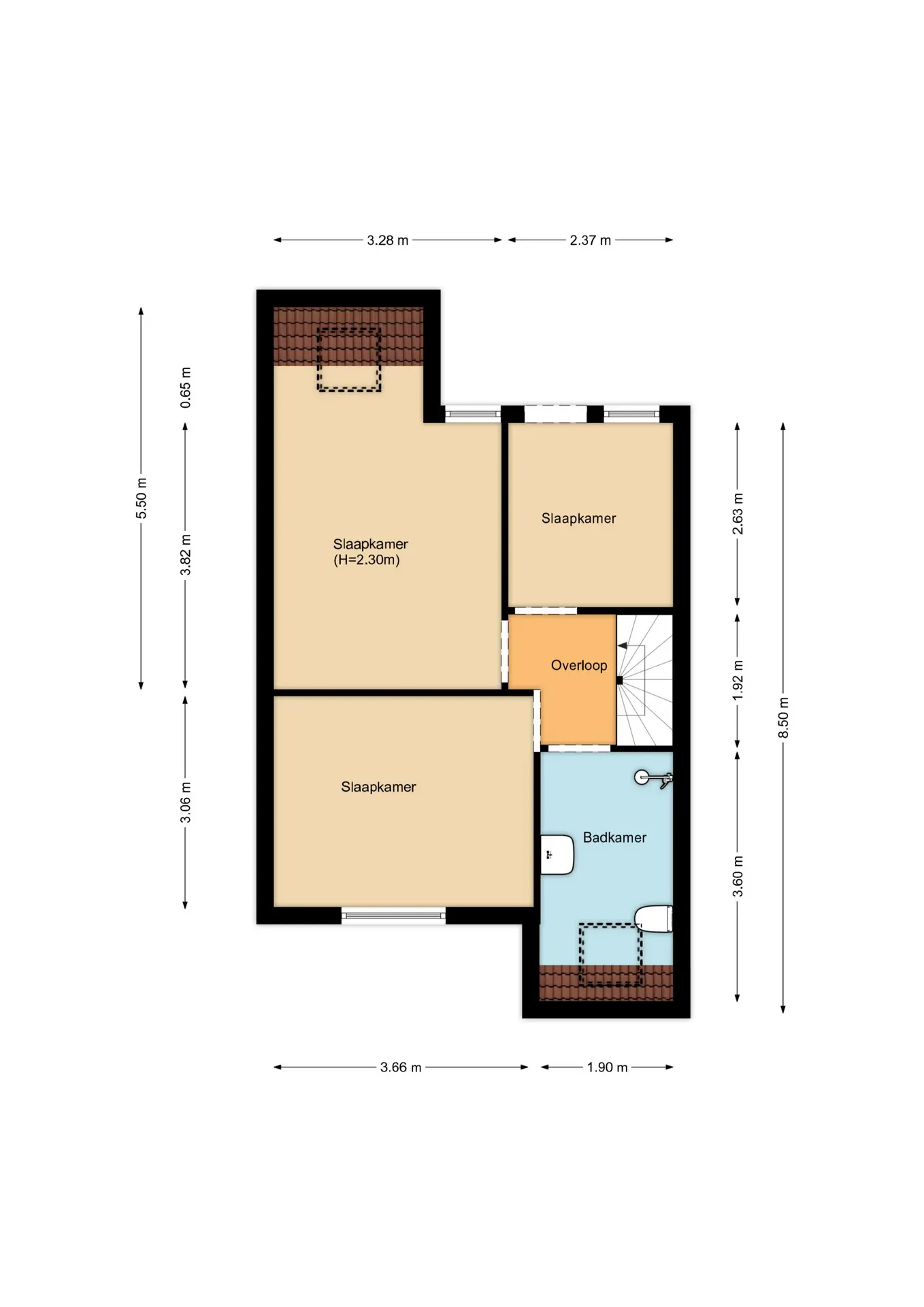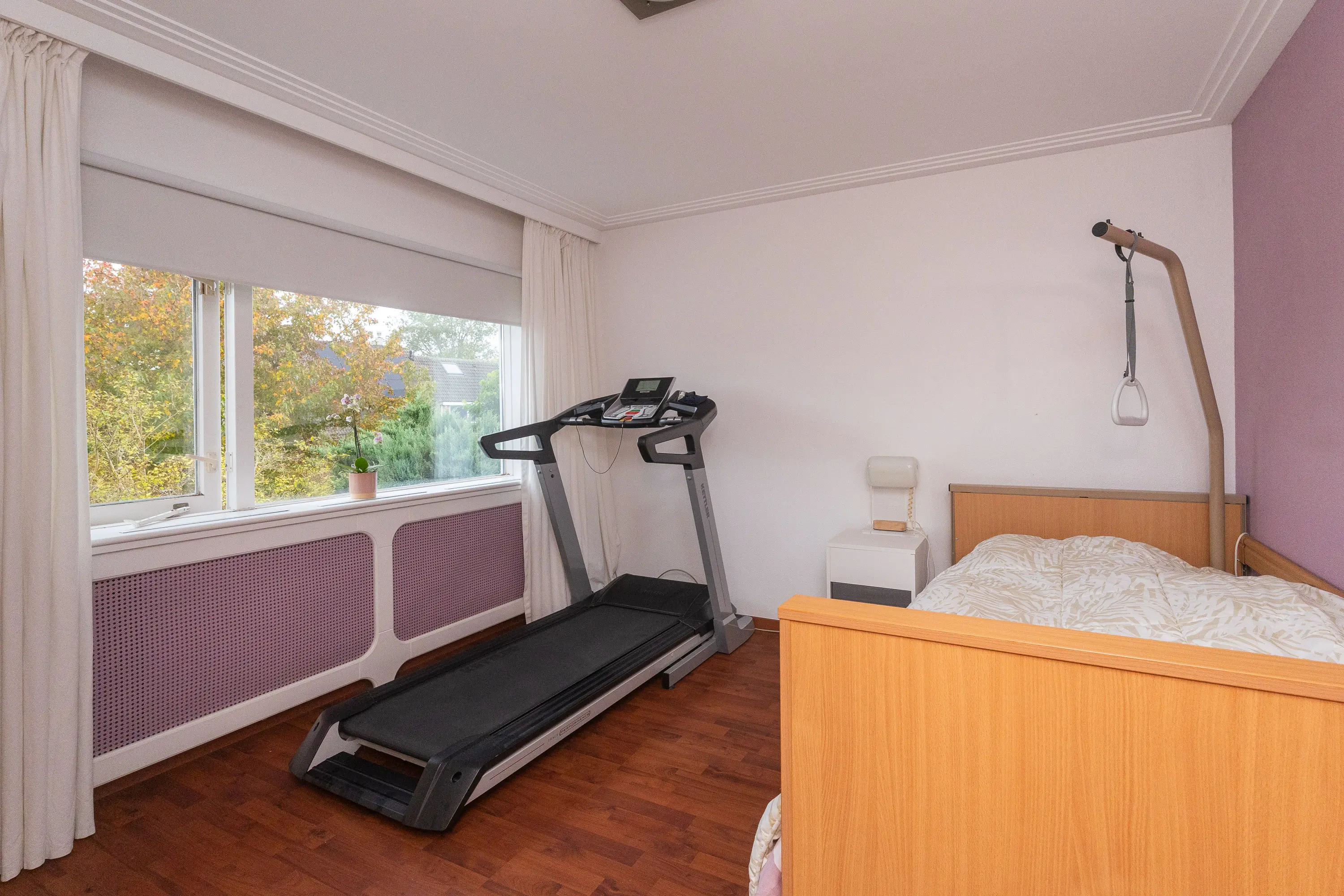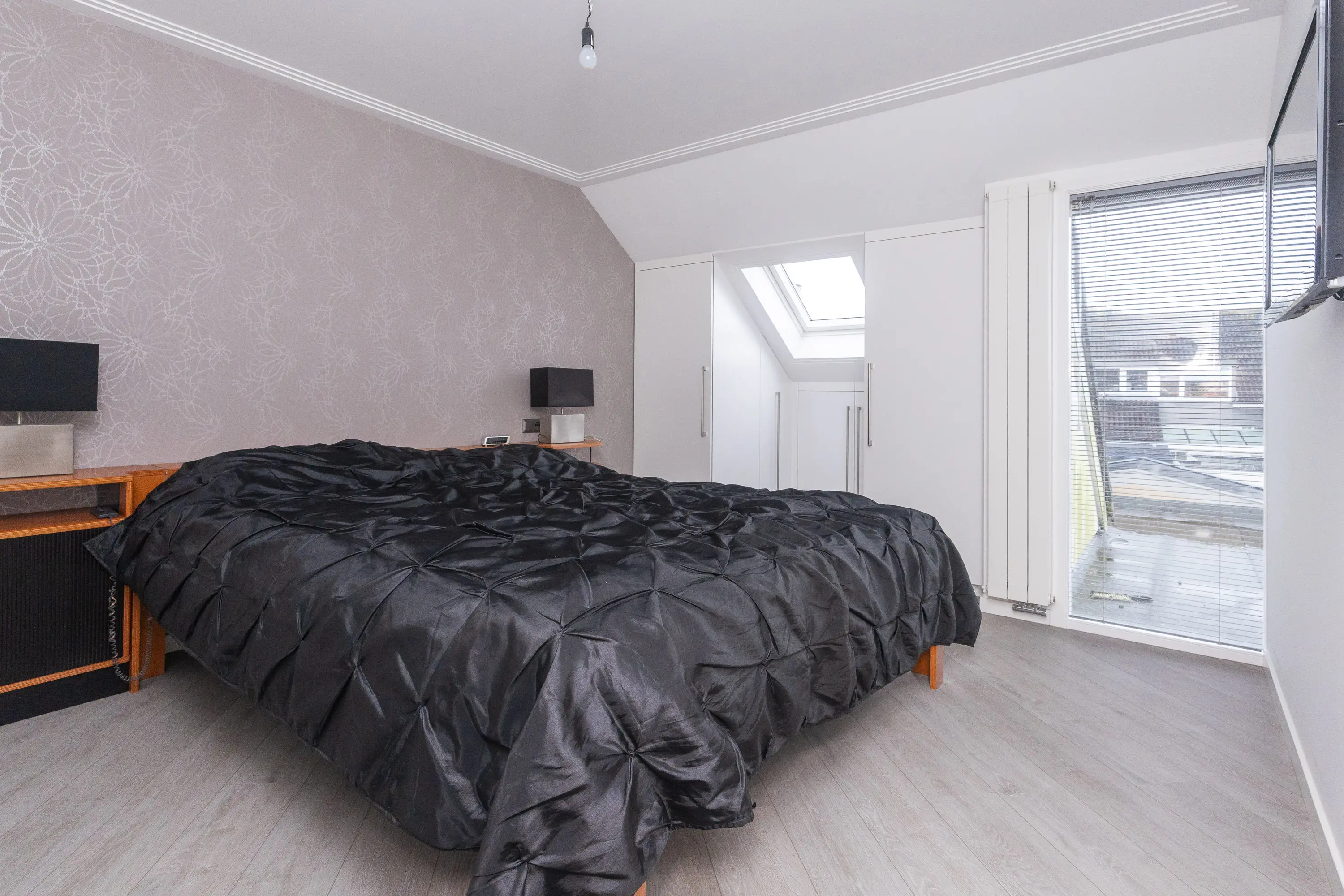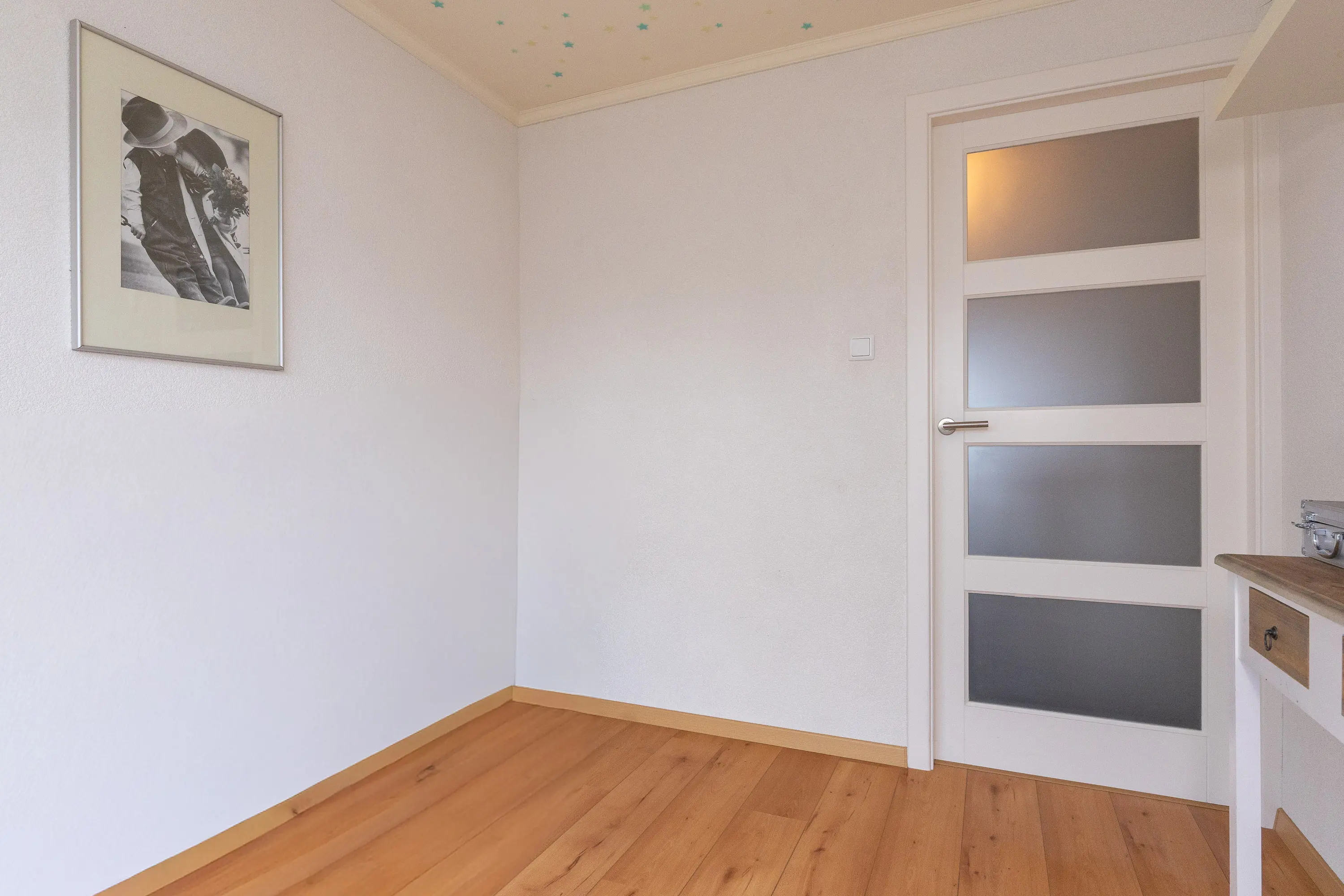 Via het gesloten trappenhuis in de woonkamer bereikt u de eerste etage. Deze is voorzien van drie (slaap-)kamers en een nette badkamer. Aan de achterzijde bevinden zich twee kamers, waarvan de grootste is uitgerust met een dakraam voor extra lichtinval. Aan de voorzijde treft u nog een ruime slaapkamer en de badkamer, voorzien van een inloopdouche, wastafel, toilet, dakraam en nette afwerking, inclusief een granieten wandradiator die perfect past bij de stijl van de woning.