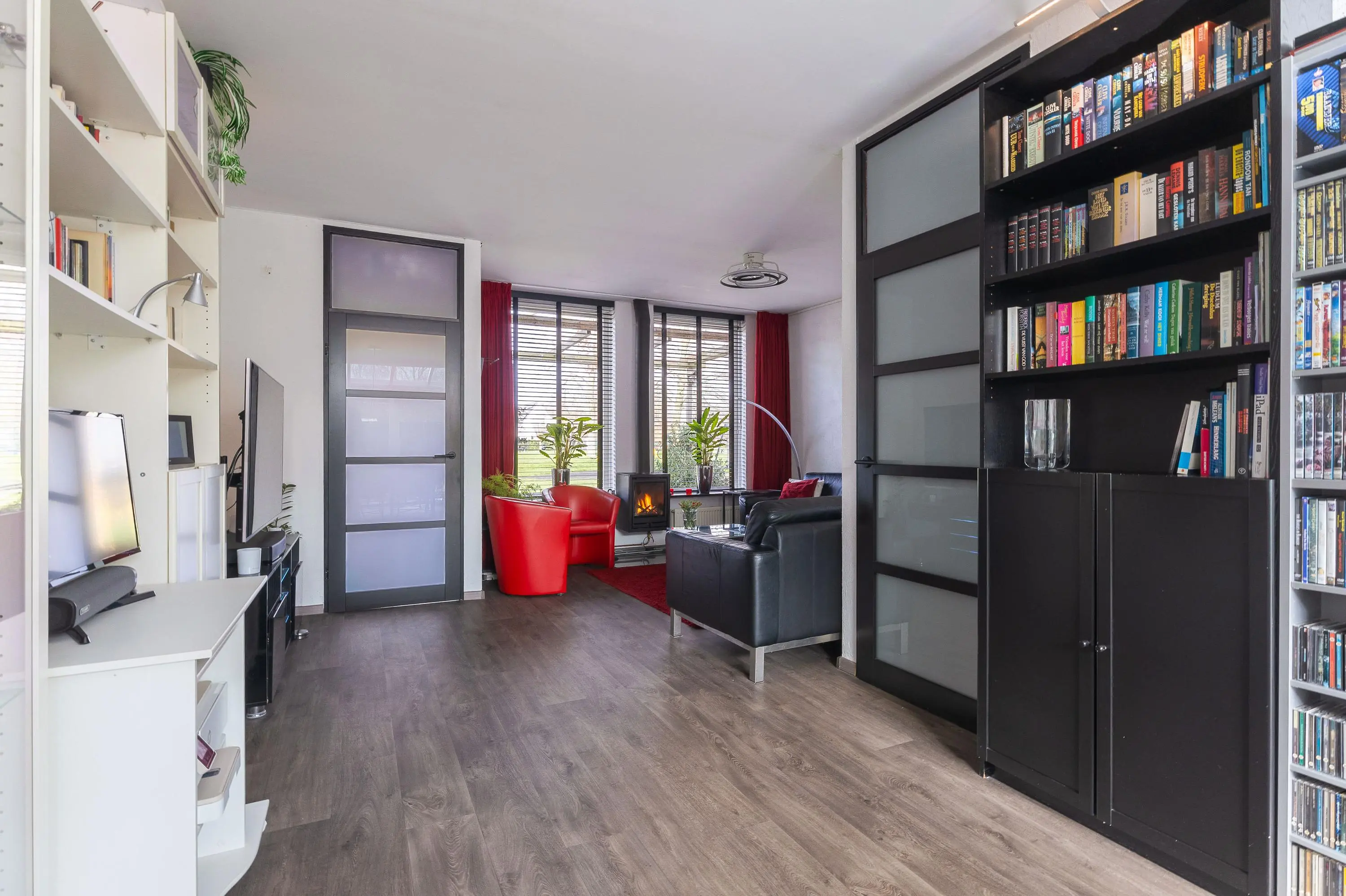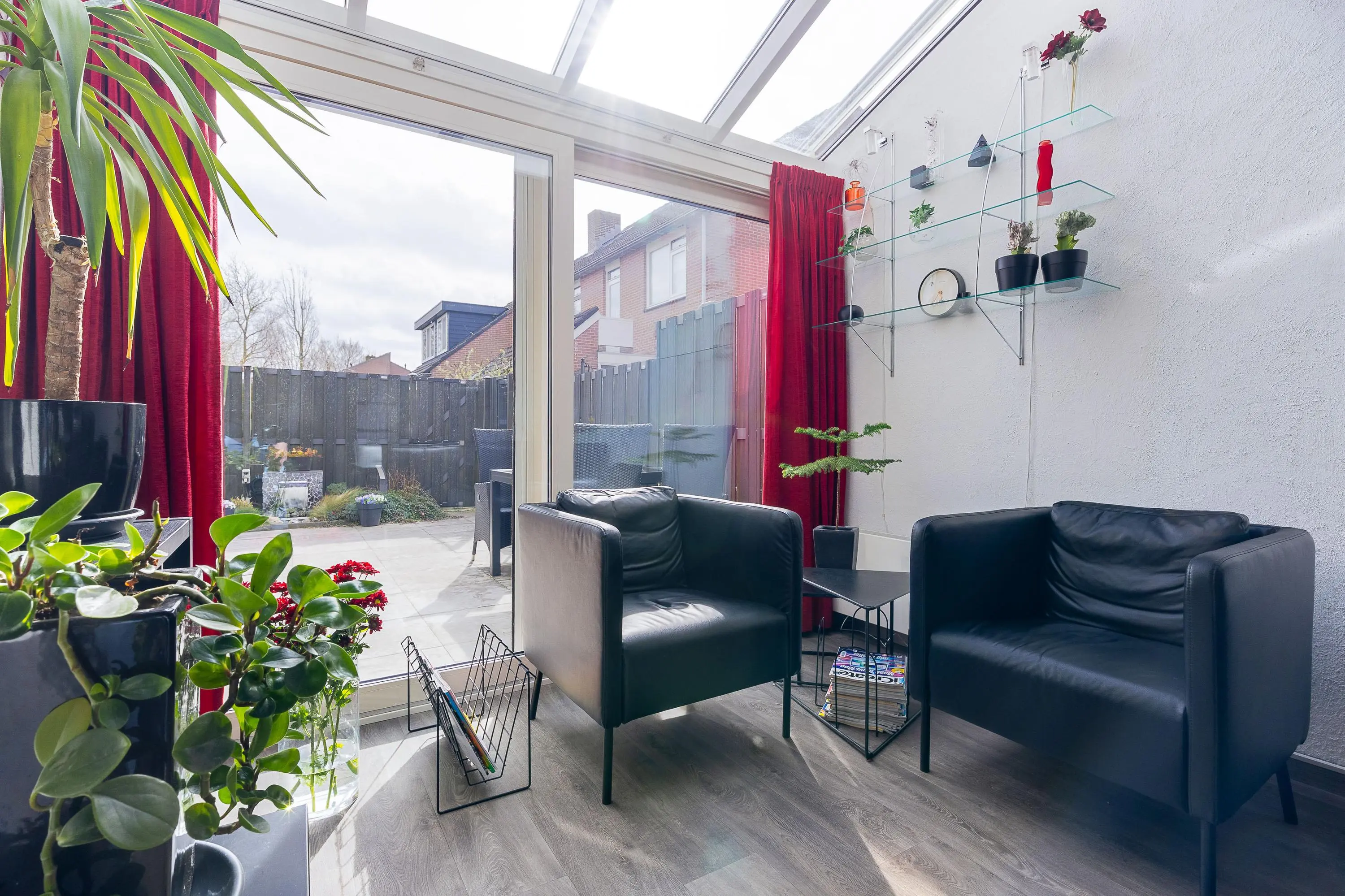 Via de entree met meterkast kom je in de royale en lichte woonkamer. De sfeervolle haard zorgt voor extra gezelligheid, terwijl de aangebouwde serre met schuifpui een prachtige verbinding vormt met de tuin en zorgt voor een zee aan licht.