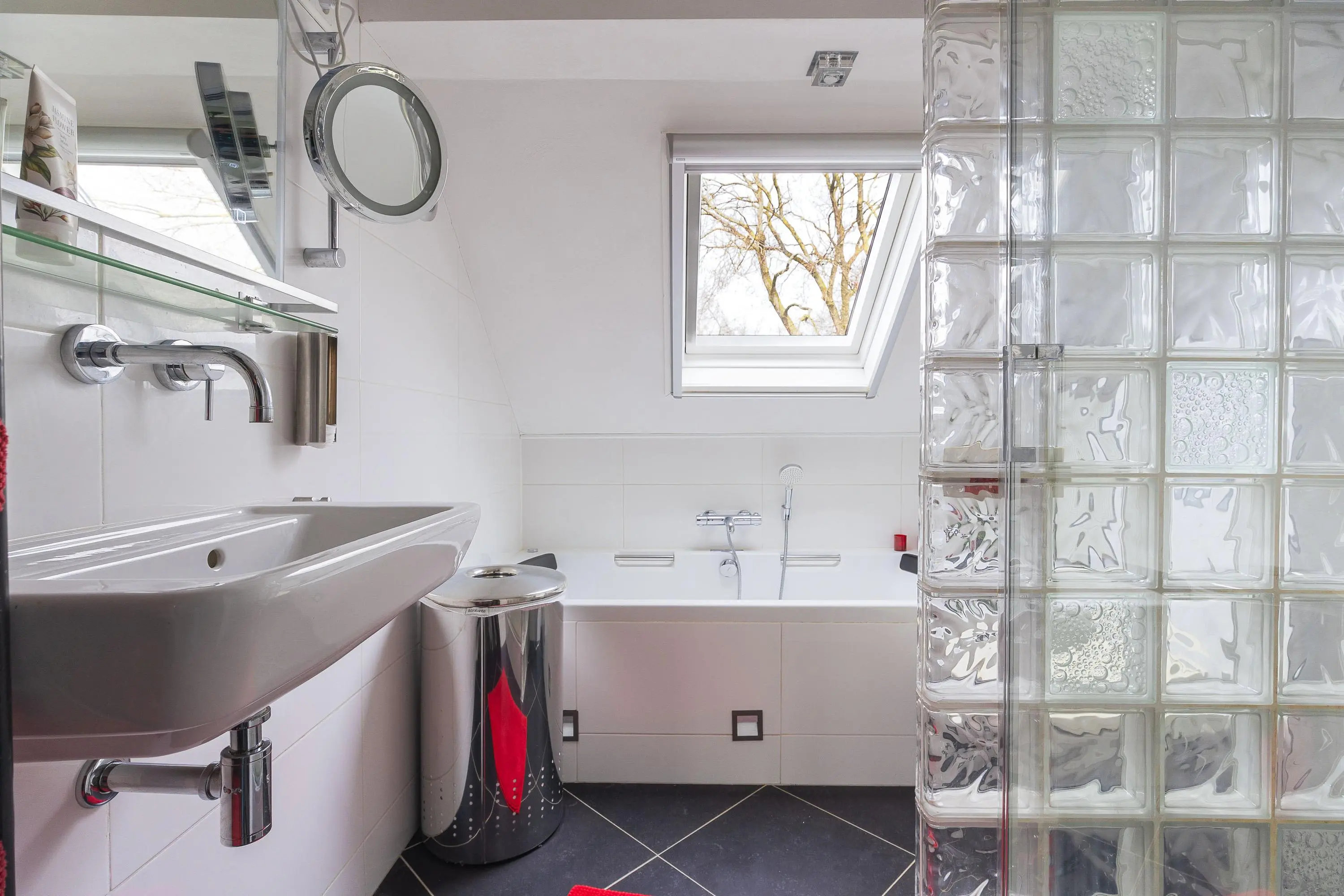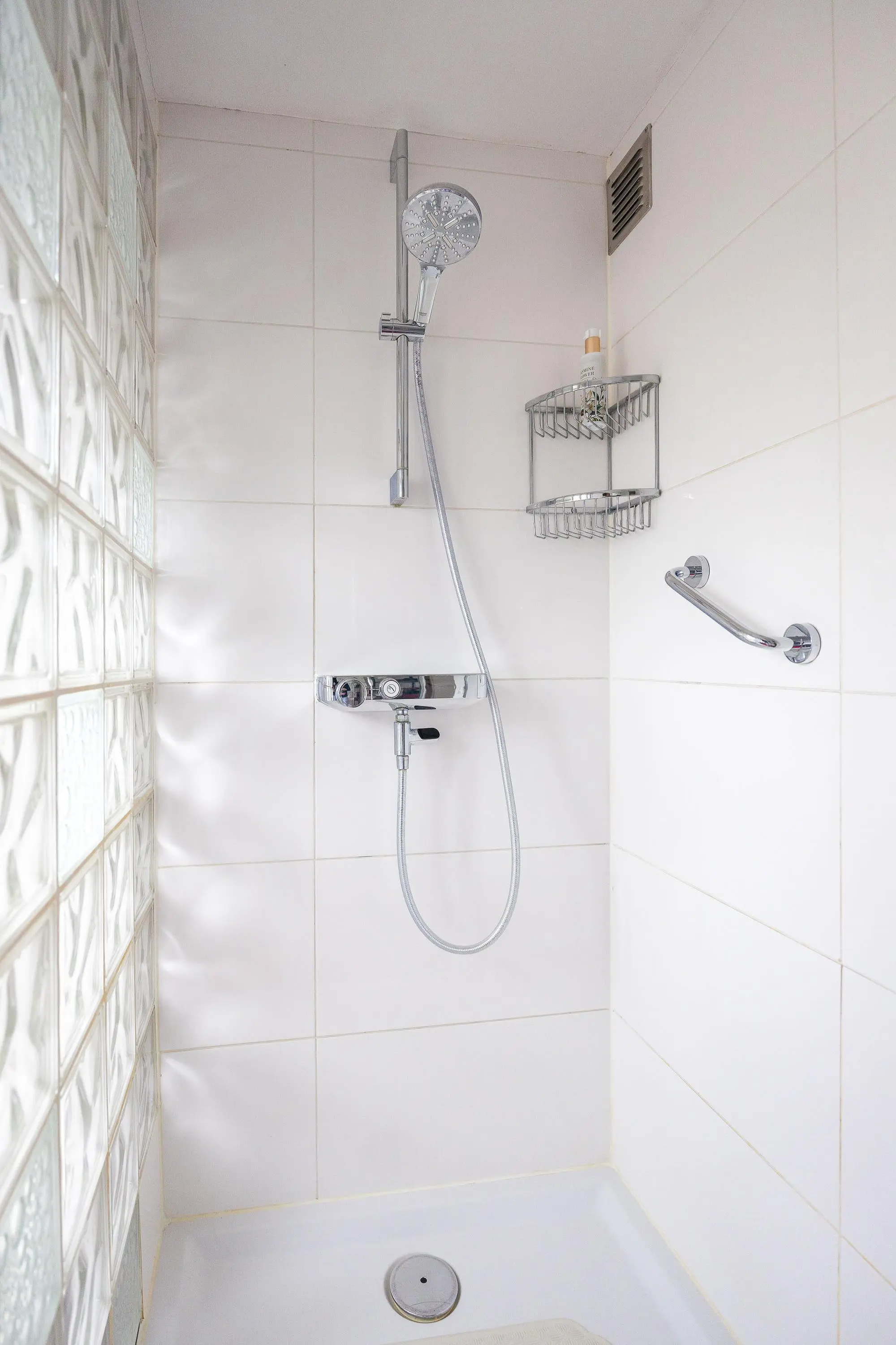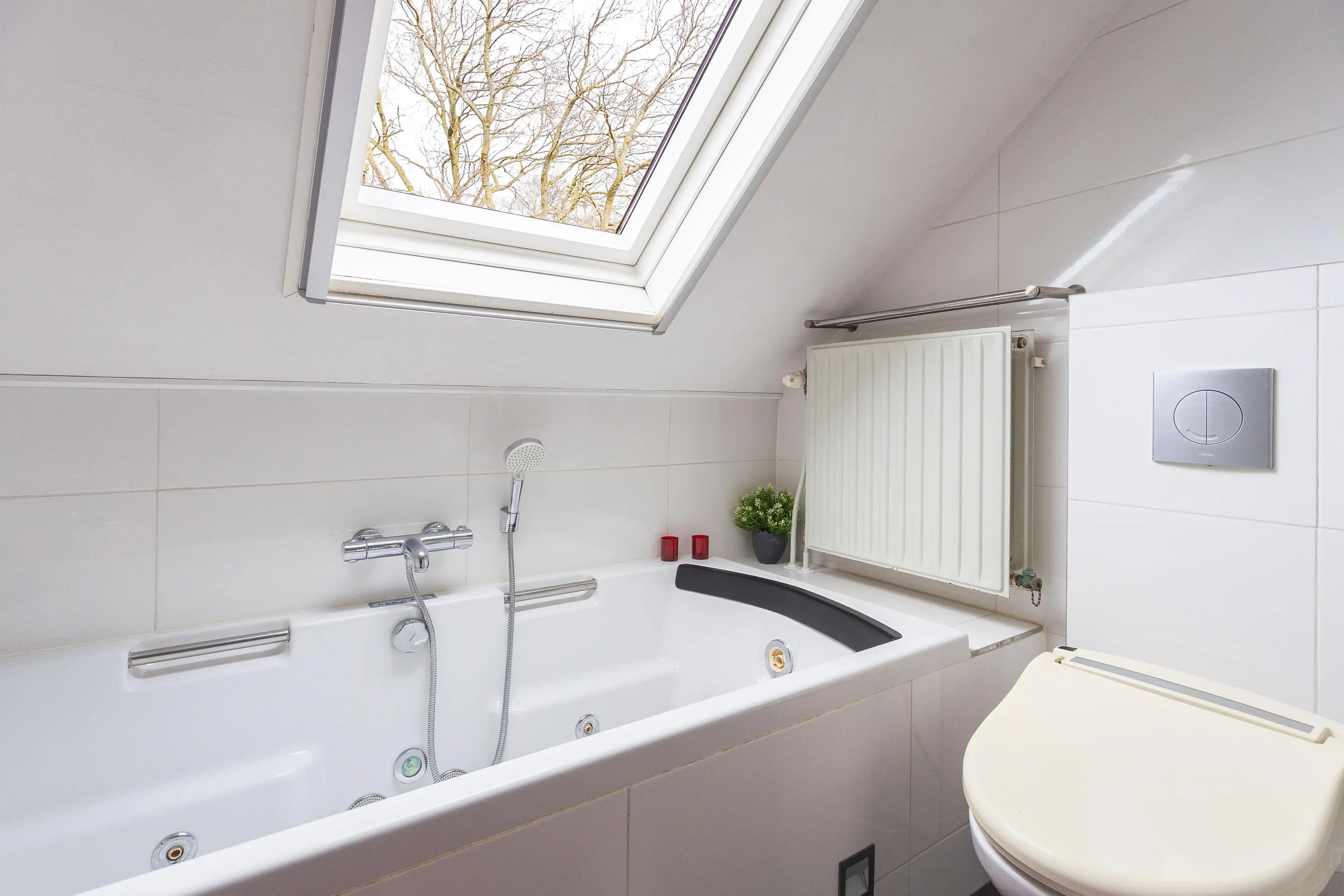 De verzorgde badkamer is van alle gemakken voorzien waaronder een toilet, wastafel douche en een heerlijk twee persoons jacuzzi bad om volledig tot rust te komen.