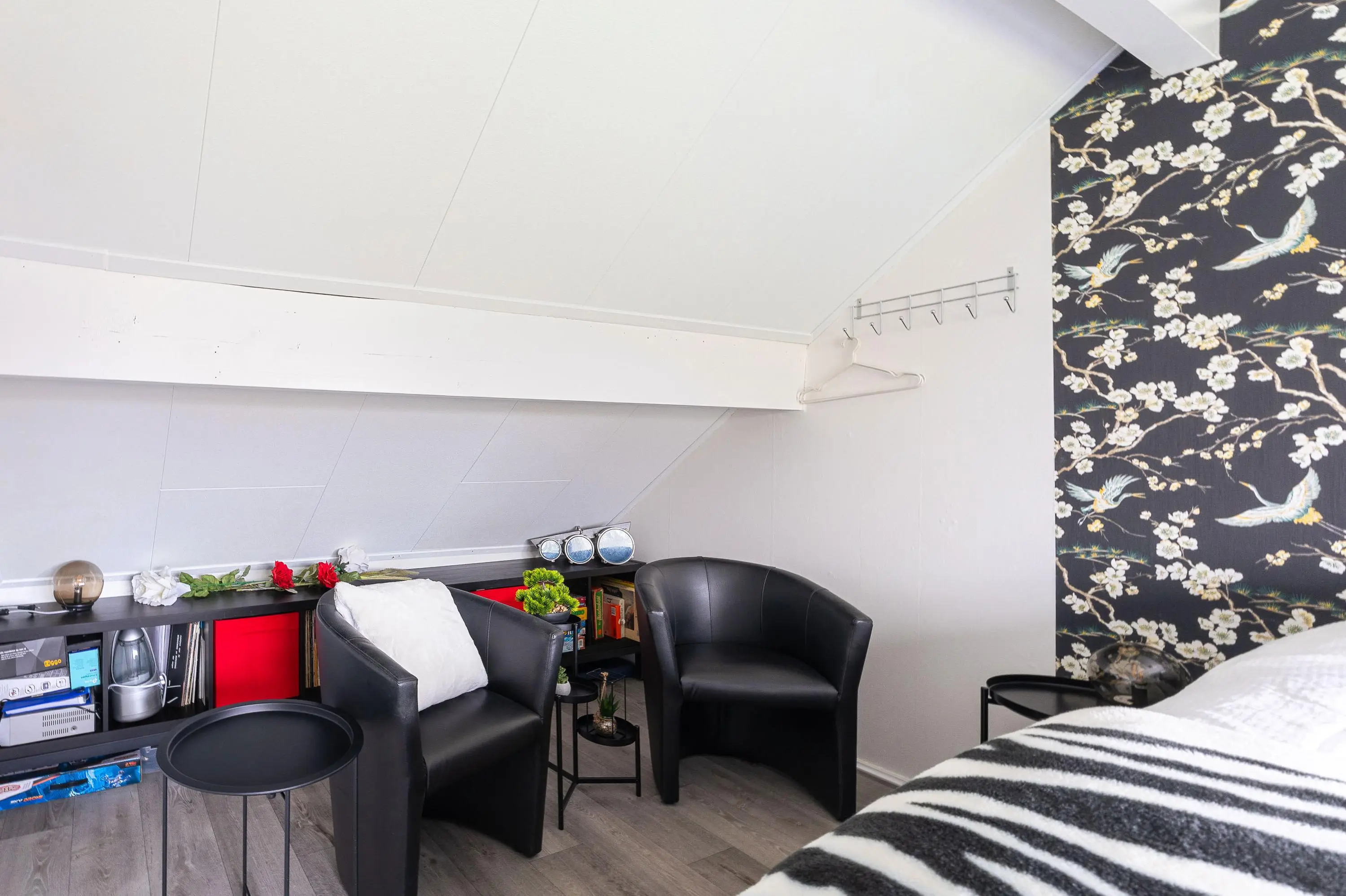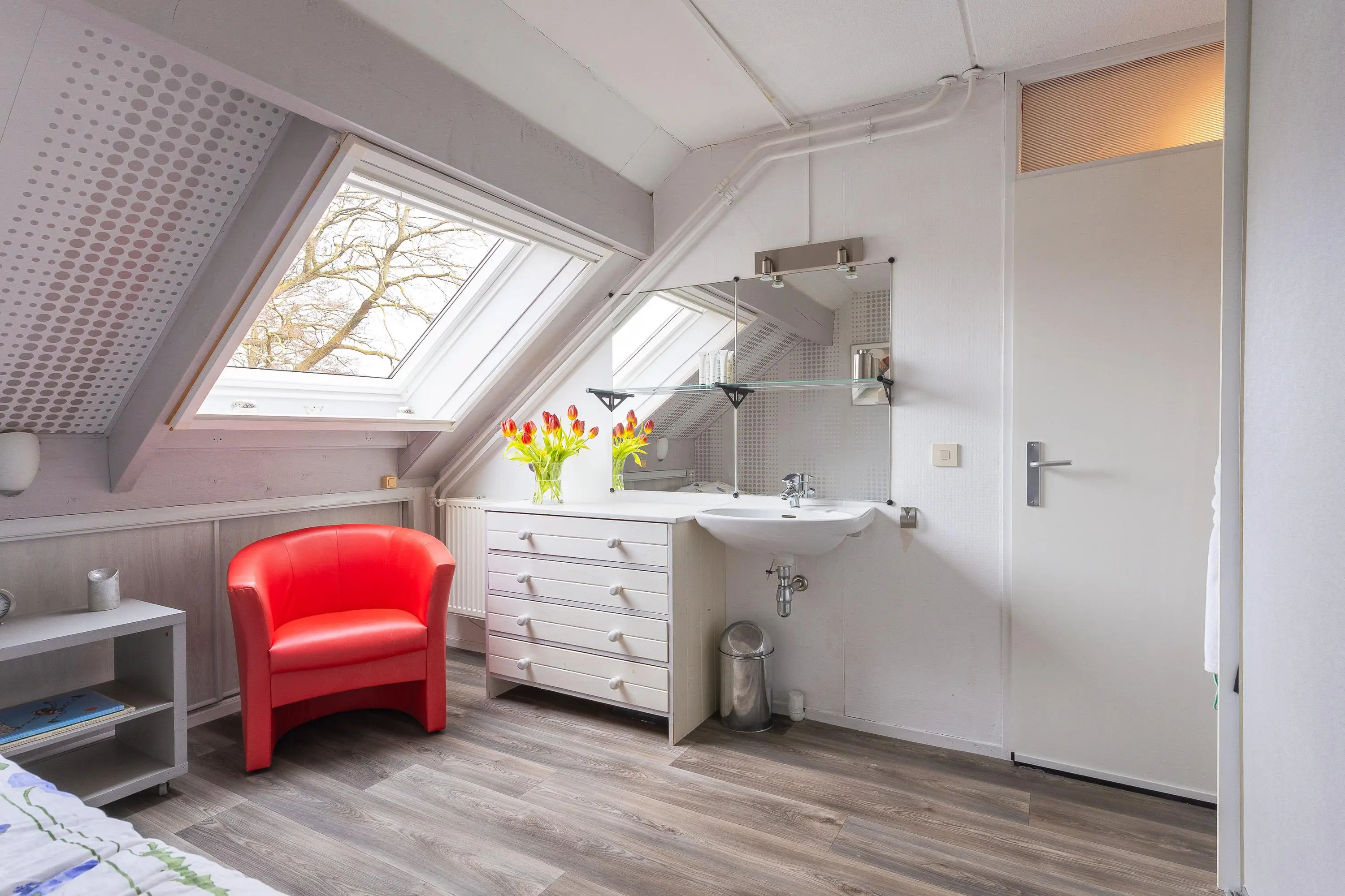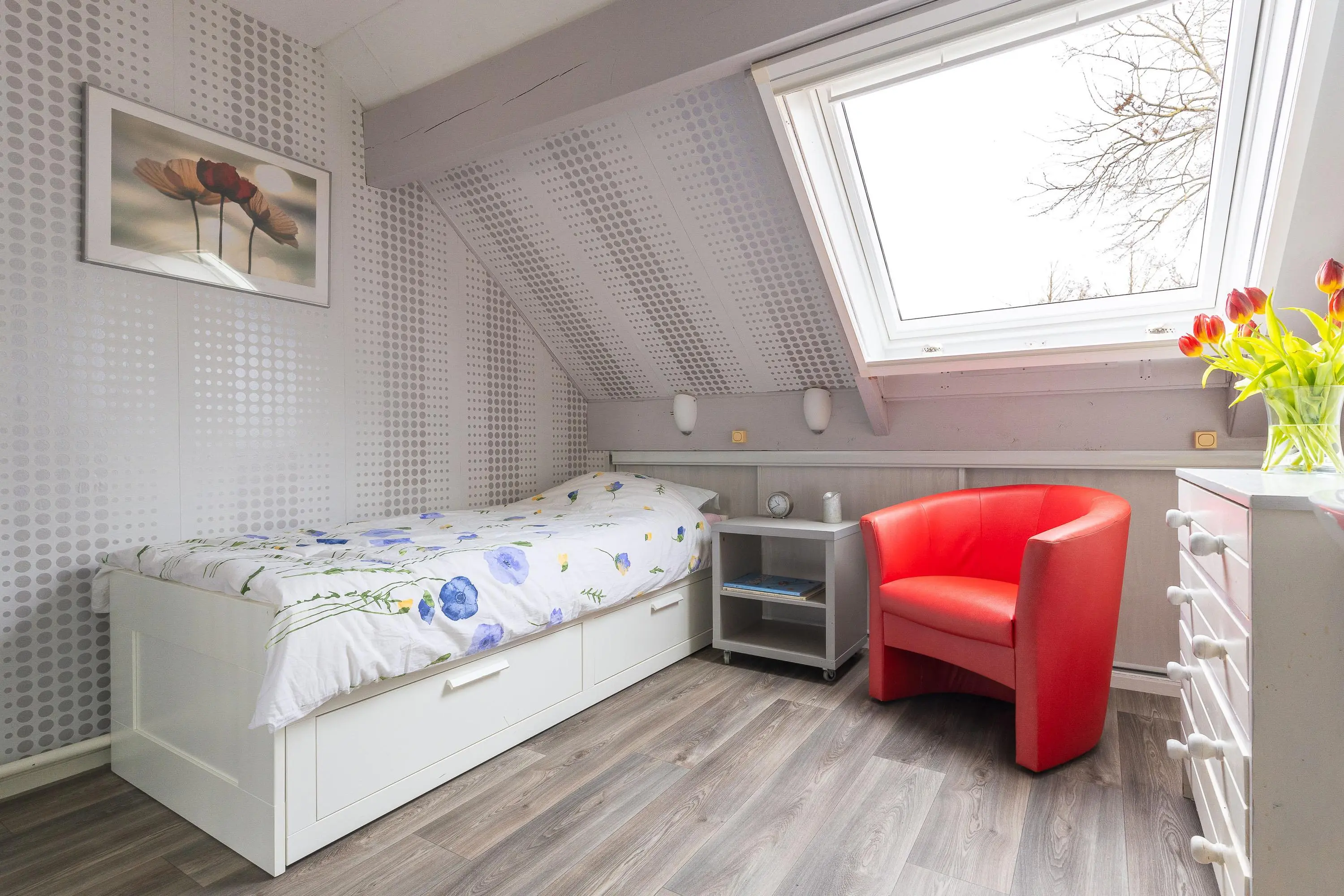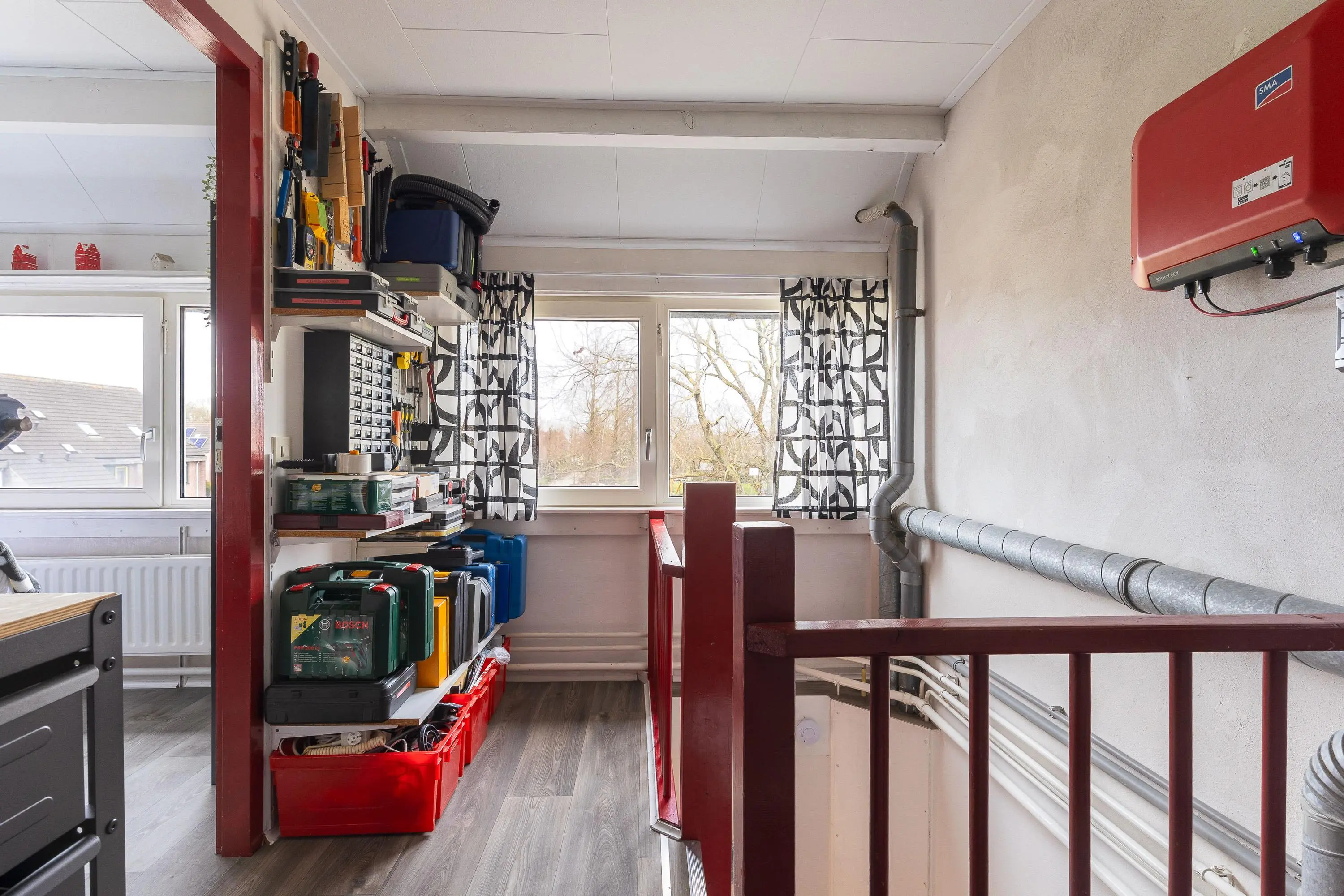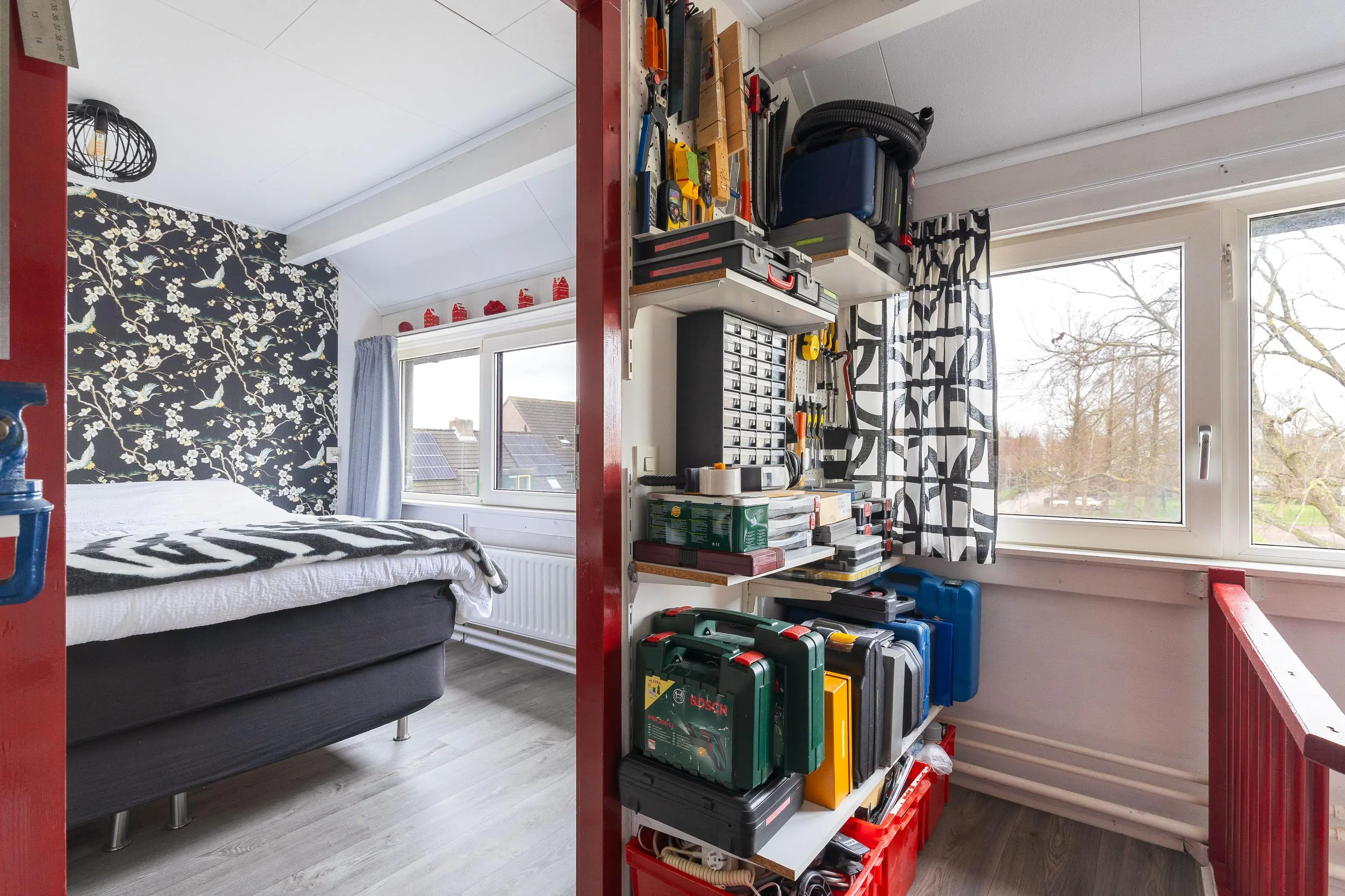 Via een vaste trap bereik je de zolderverdieping. Deze is praktisch ingedeeld in twee ruimtes: een hobbyruimte en een ruime vierde slaapkamer. Dankzij de dakkapel is deze verdieping extra groot en licht. Daarnaast is er volop bergruimte aanwezig.