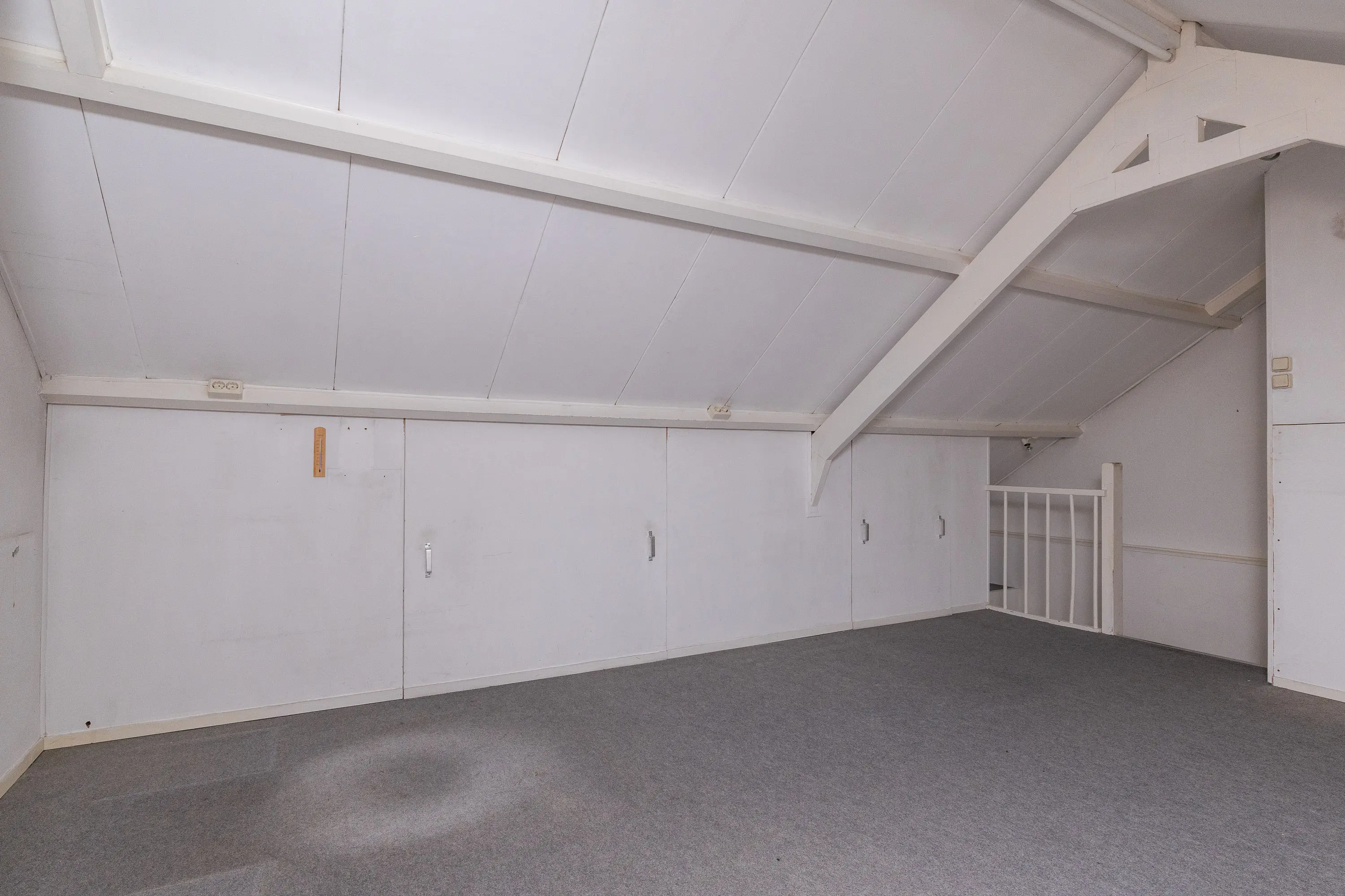 De vaste trap leidt naar de tweede verdieping met een groot dakraam, radiator en veel bergruimte. Hier is ook de cv-installatie (2024) keurig weggewerkt in een kast. Deze verdieping kan desgewenst ook worden ingericht als extra slaapkamer, hobbykamer of thuiswerkplek.