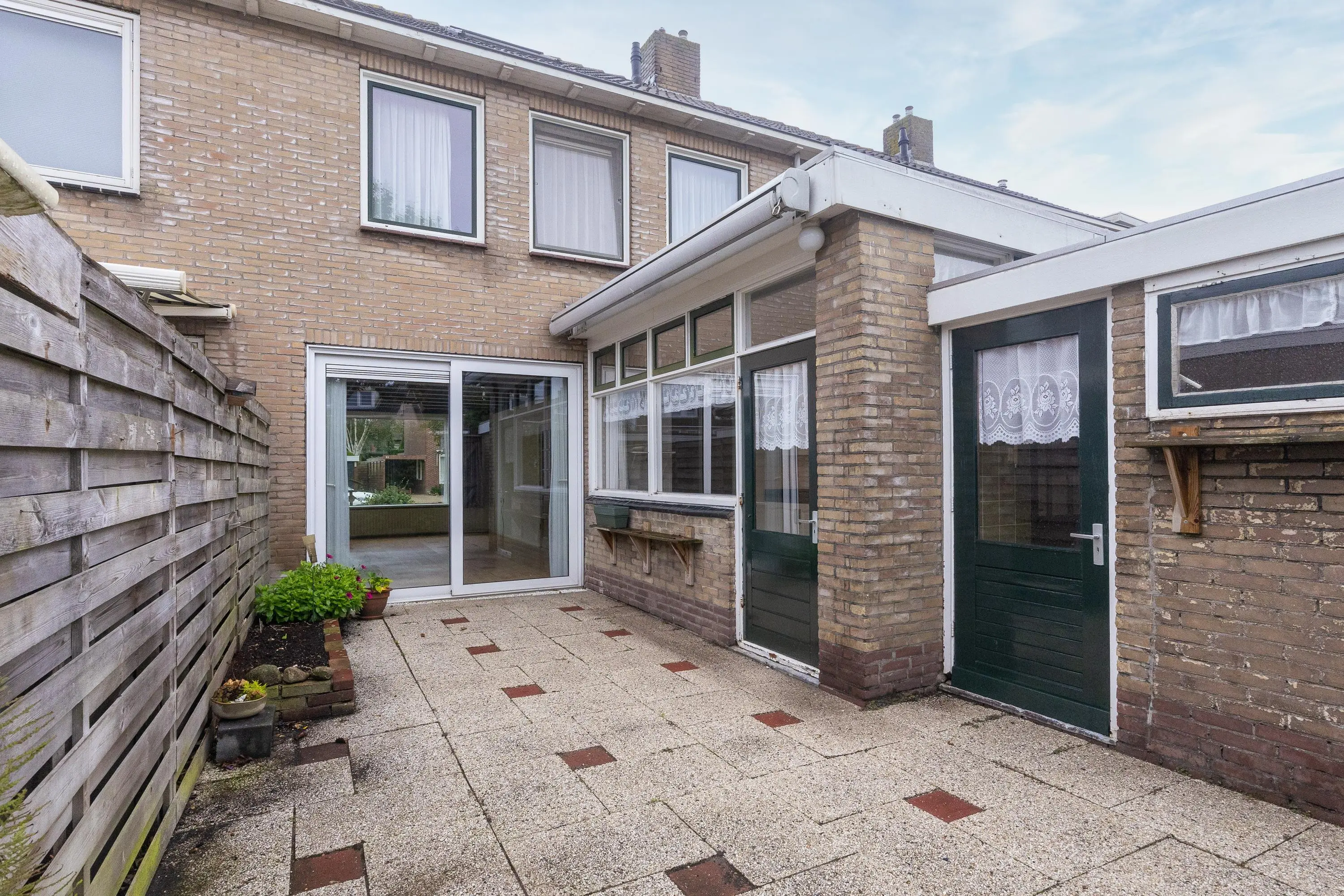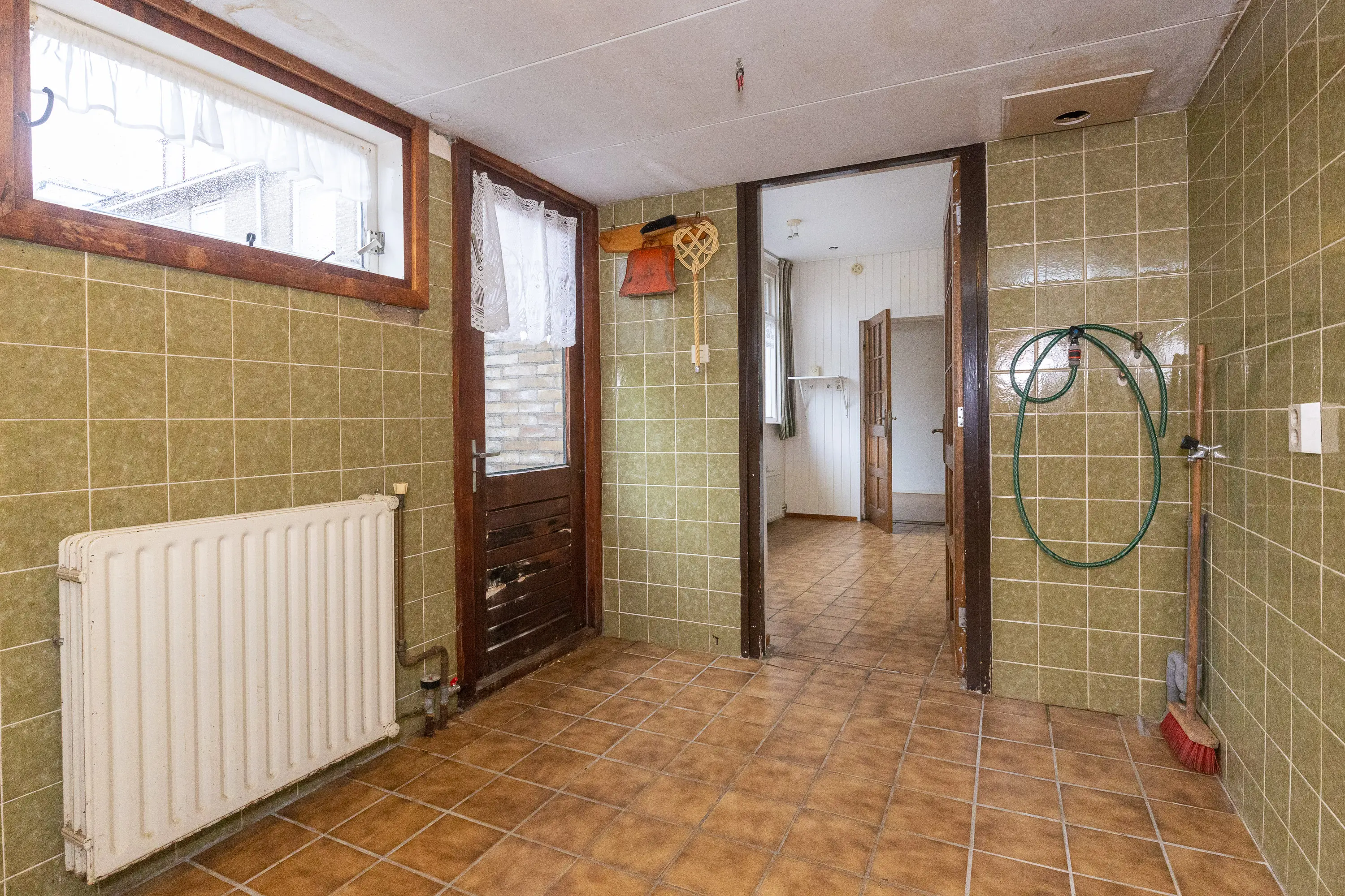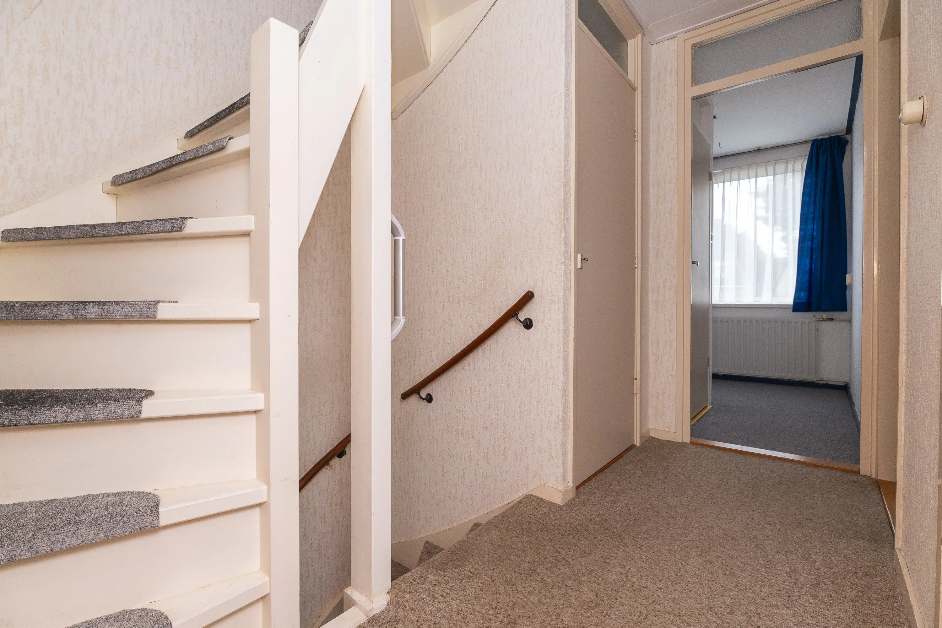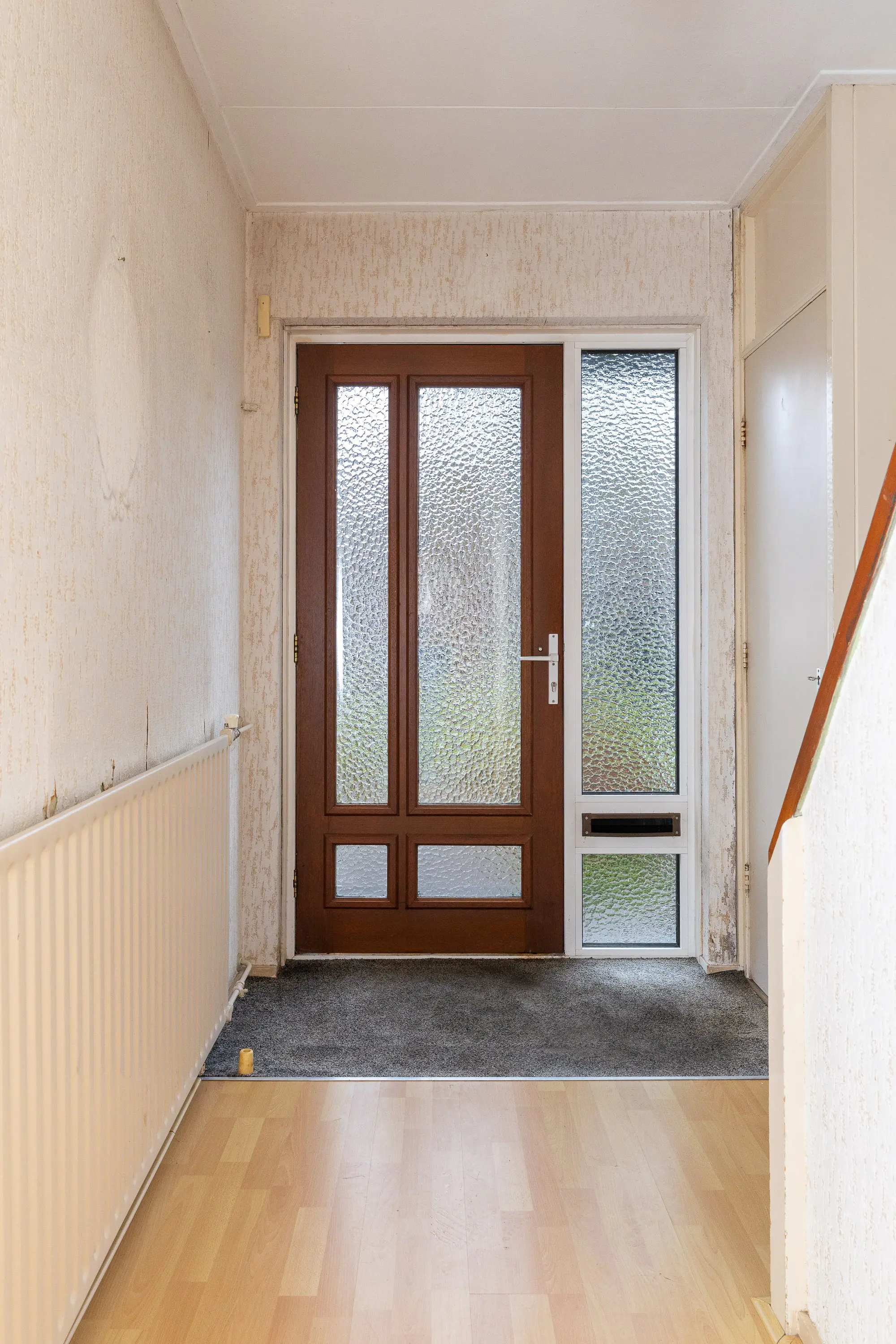 De voortuin met groen en bloemen verwelkomt u direct bij aankomst. Via de overdekte entree komt u in de hal met toilet, meterkast, trapopgang, trapkast en toegang tot de woonkamer. De royale woonkamer is heerlijk licht dankzij de grote ramen en de aluminium schuifpui naar de achtertuin. Aan de achterzijde bevindt zich de ruime keuken, voorzien van diverse inbouwapparatuur zoals een koelkast, oven, vaatwasser, 4-pits gaskookplaat, natuurstenen aanrechtblad en elektrische boiler. Achter de keuken bevindt zich de praktische bijkeuken met witgoedaansluitingen en extra bergruimte.
